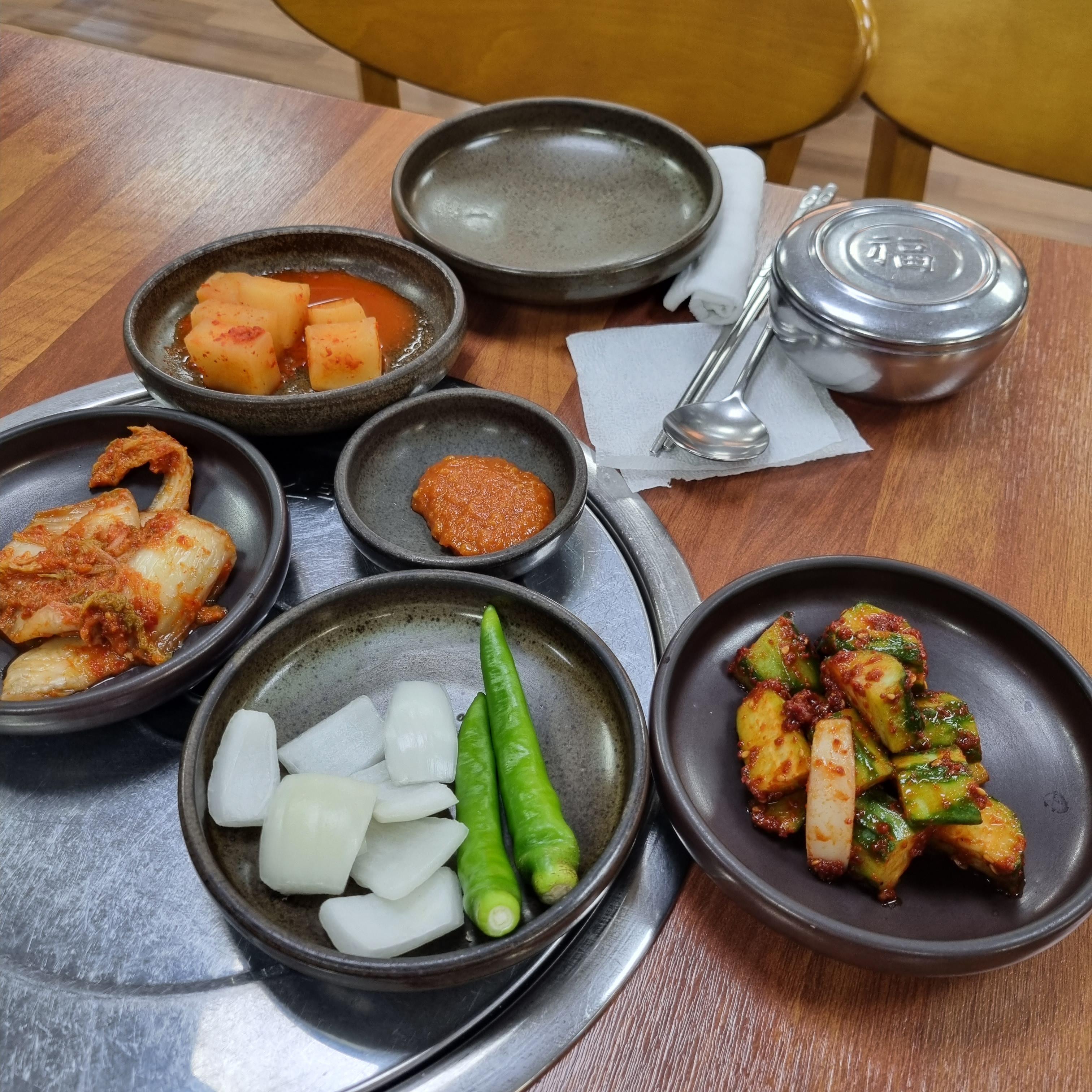 기본 찬을 보니 변함이 없는 것이 느껴집니다. 중마동 가마솥 뚝배기는 오이무침이 유명하지요. 예전 그 맛과 같습니다. 소금에 절여진 오이소박이와는 다른 맛이에요. 리필을 부르는 맛인데 이번엔 리필을 안 했어요. 수다 떨기 바빴기 때문이죠.