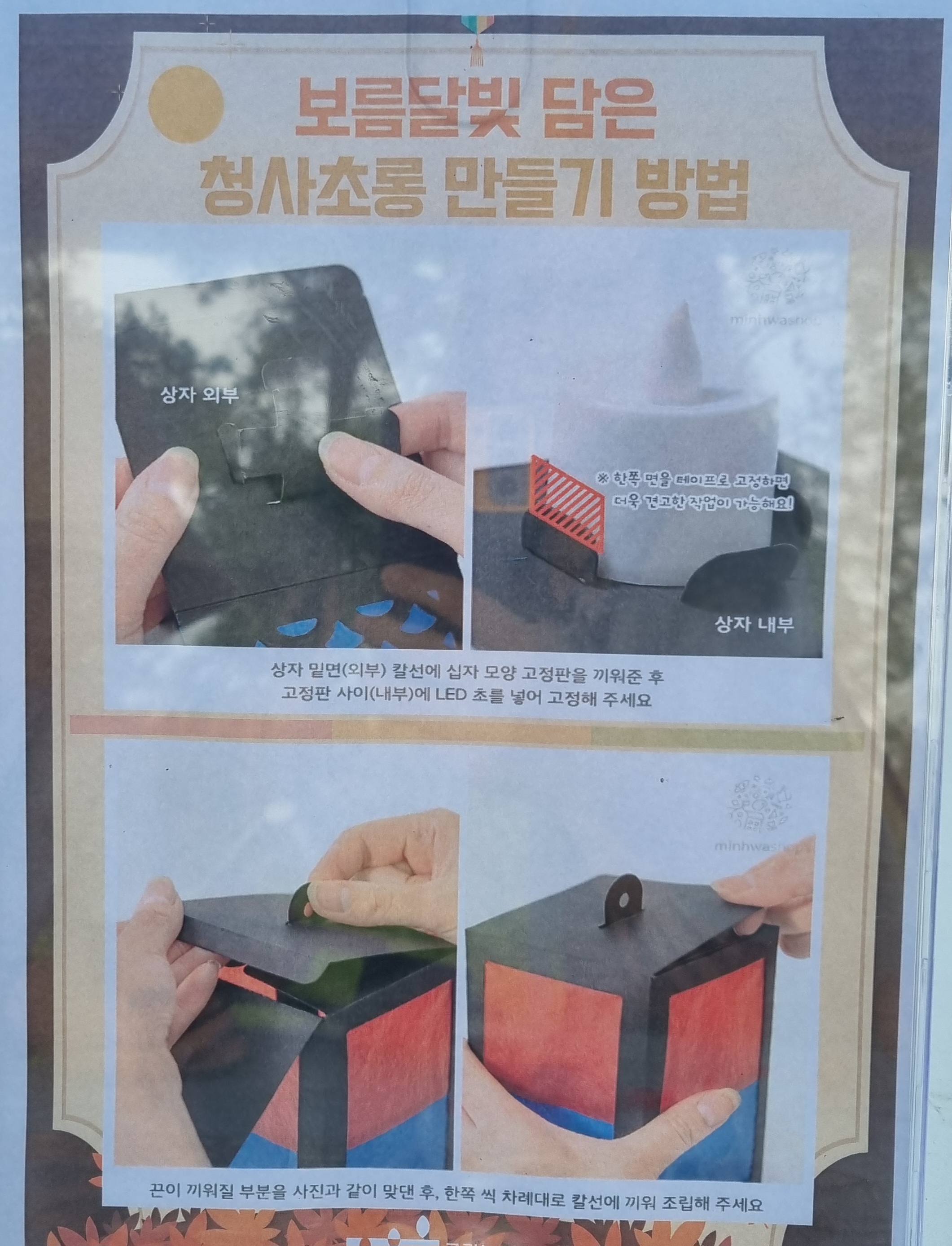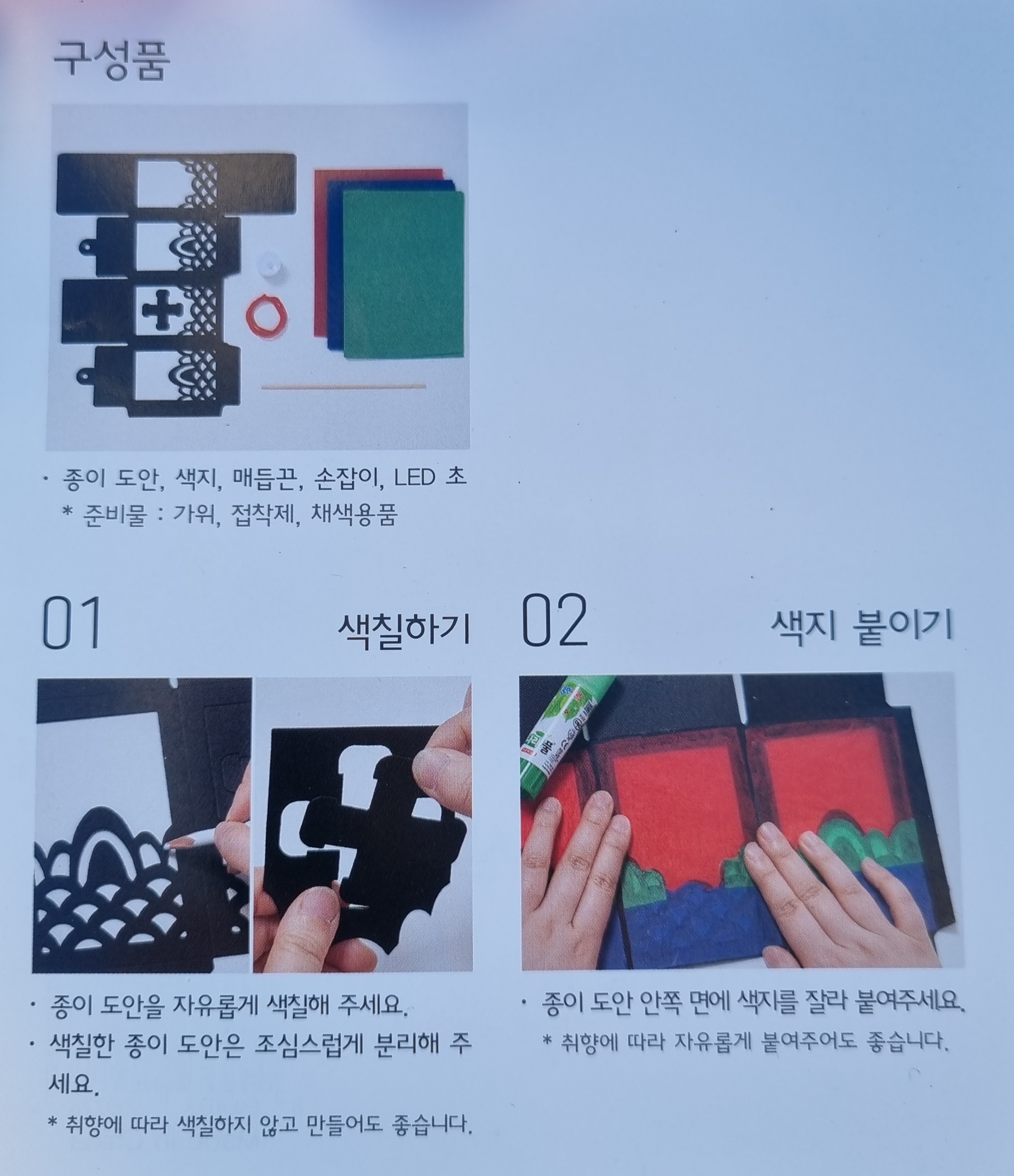 명단을 적고 시간이 되니 순서대로 청사초롱 만들 수 있는 키트를 나눠주셨어요.