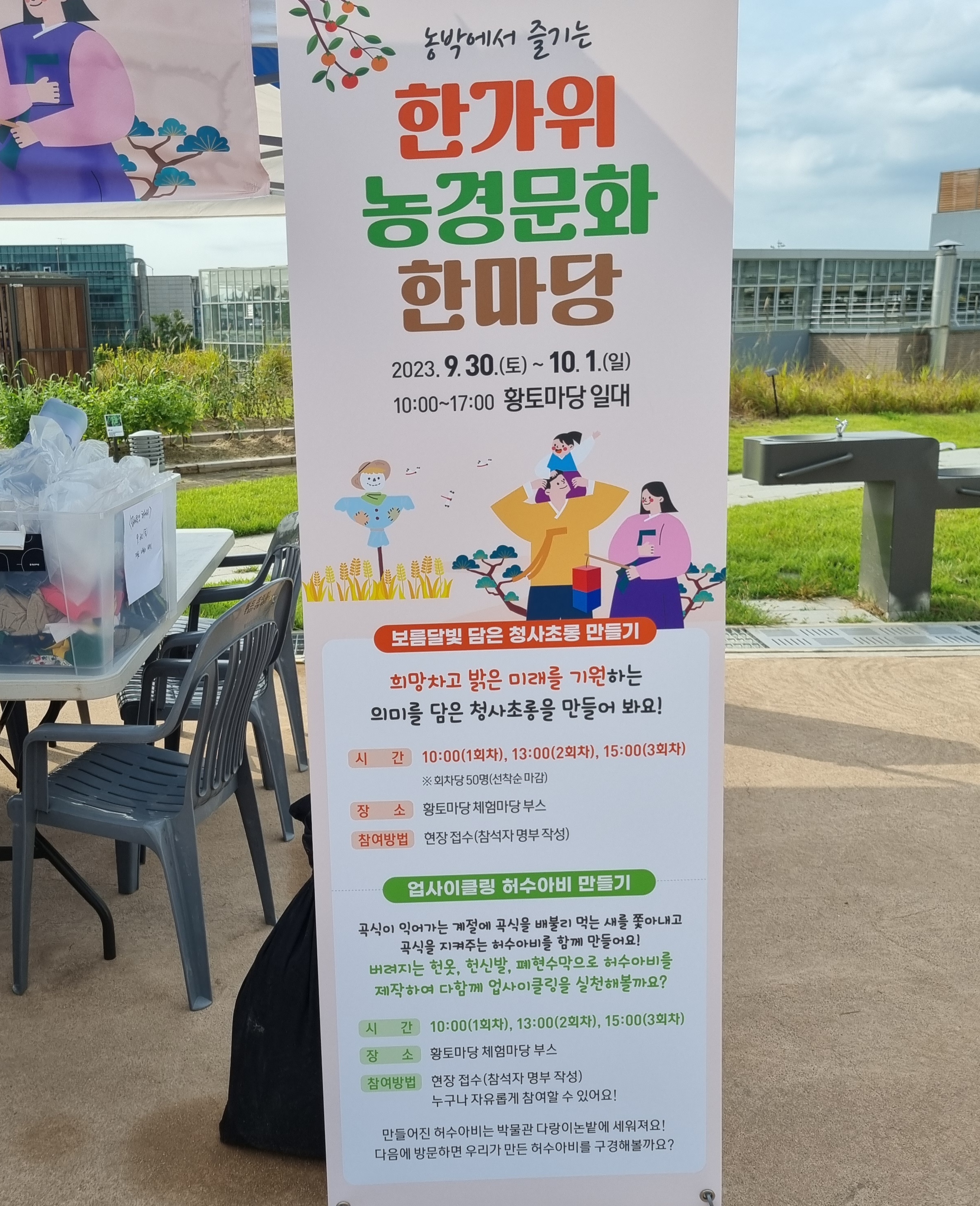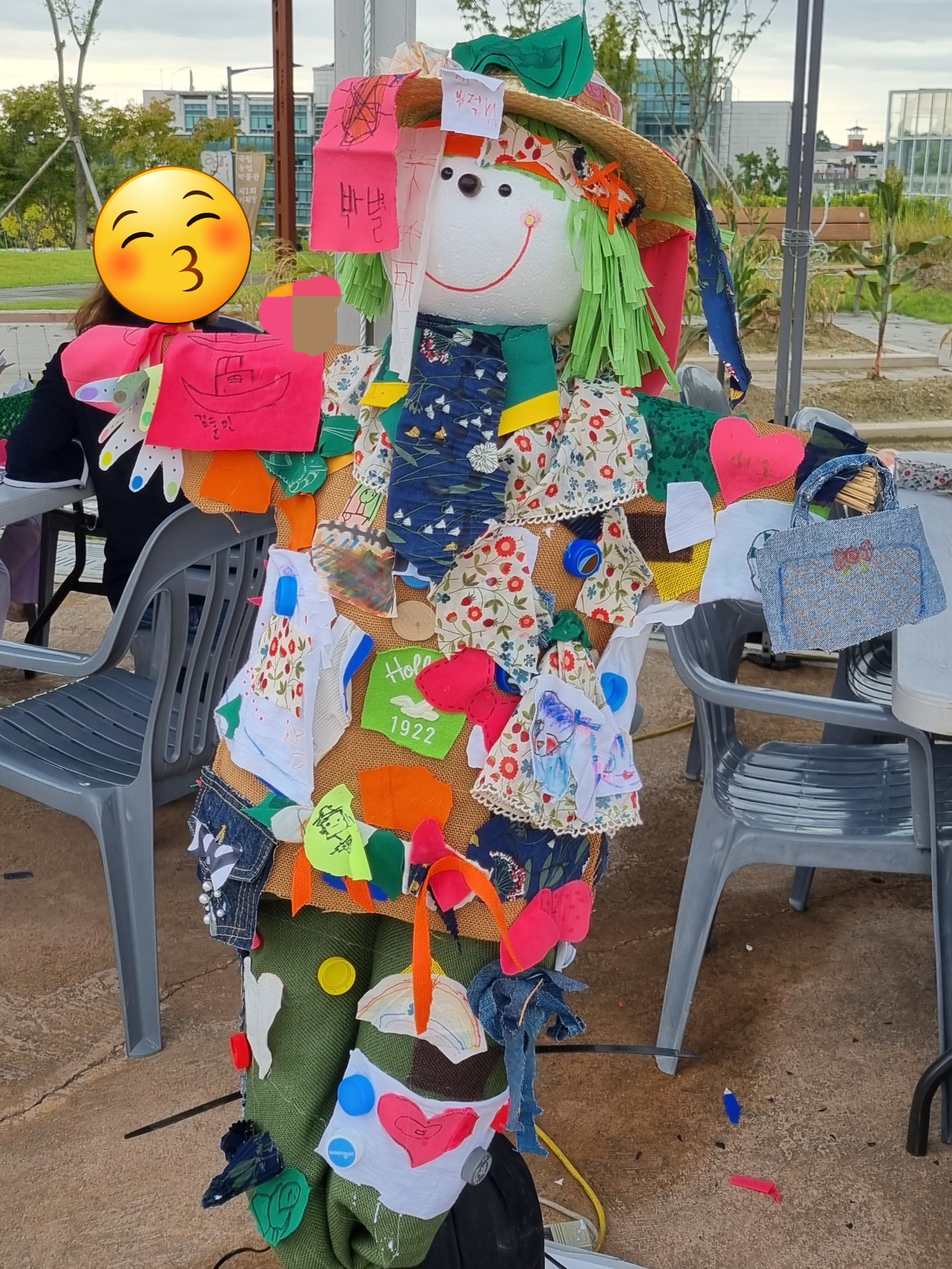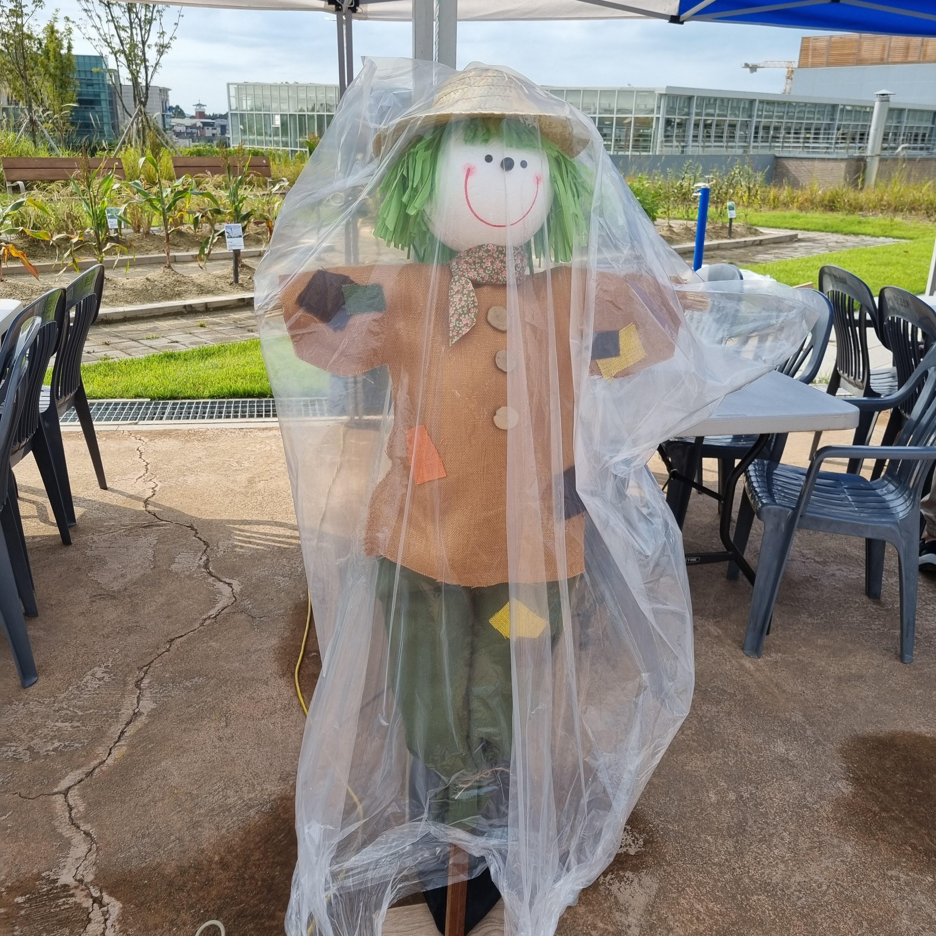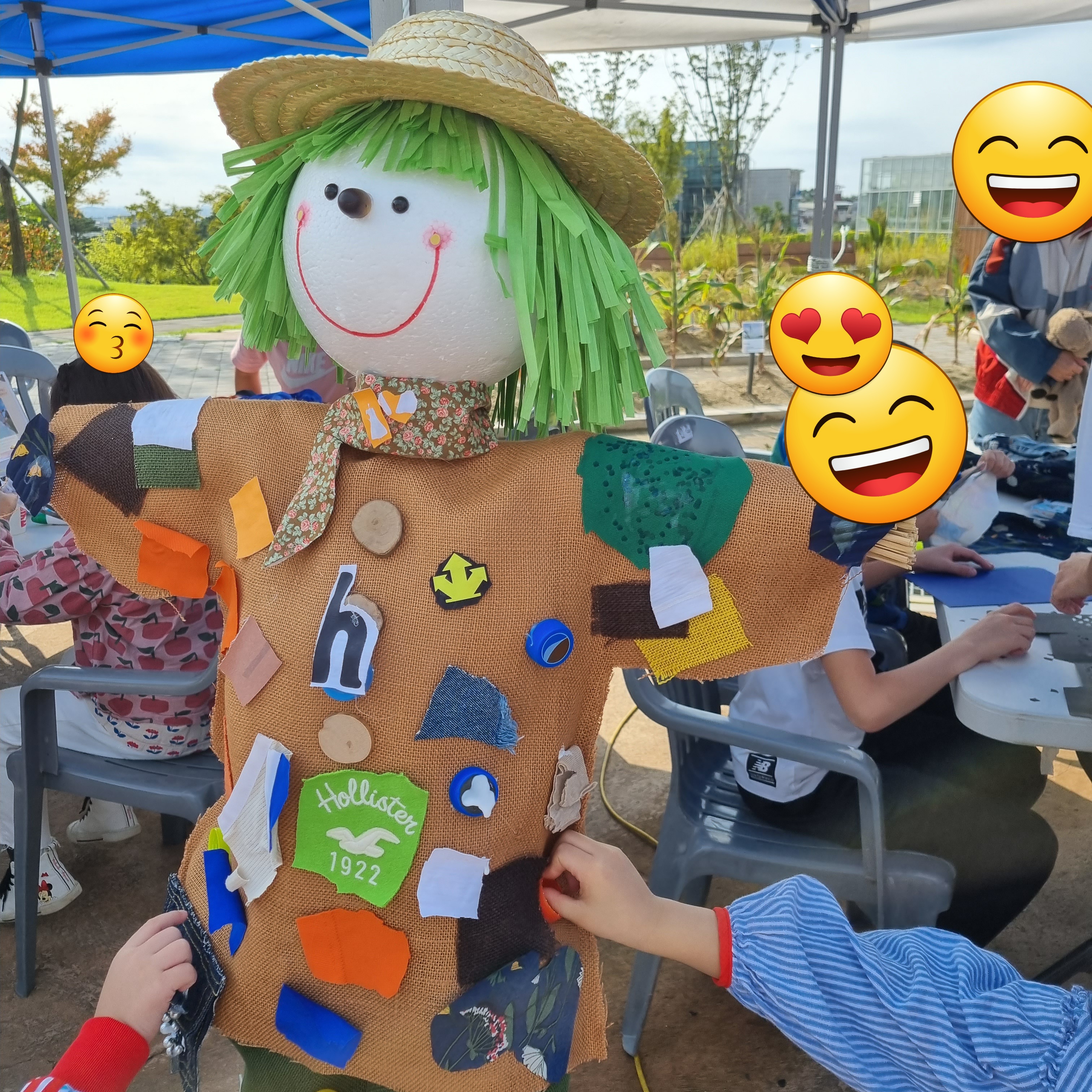 체험부스는 준비 중입니다. 여긴 허수아비 만드는 코너예요.