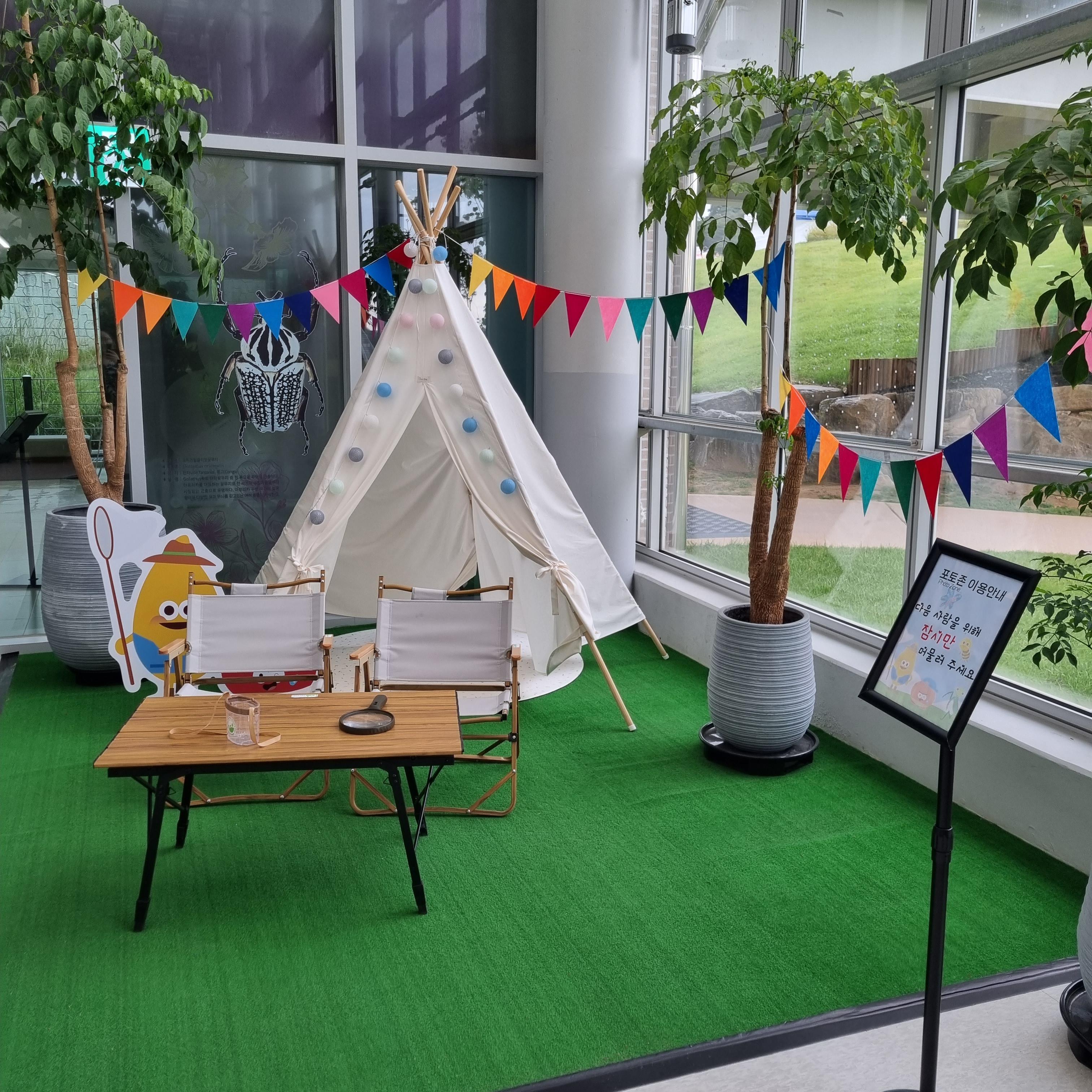 곤충관 입구에 포토존이 있어요. 캠핑으로 꾸며 뒀네요.