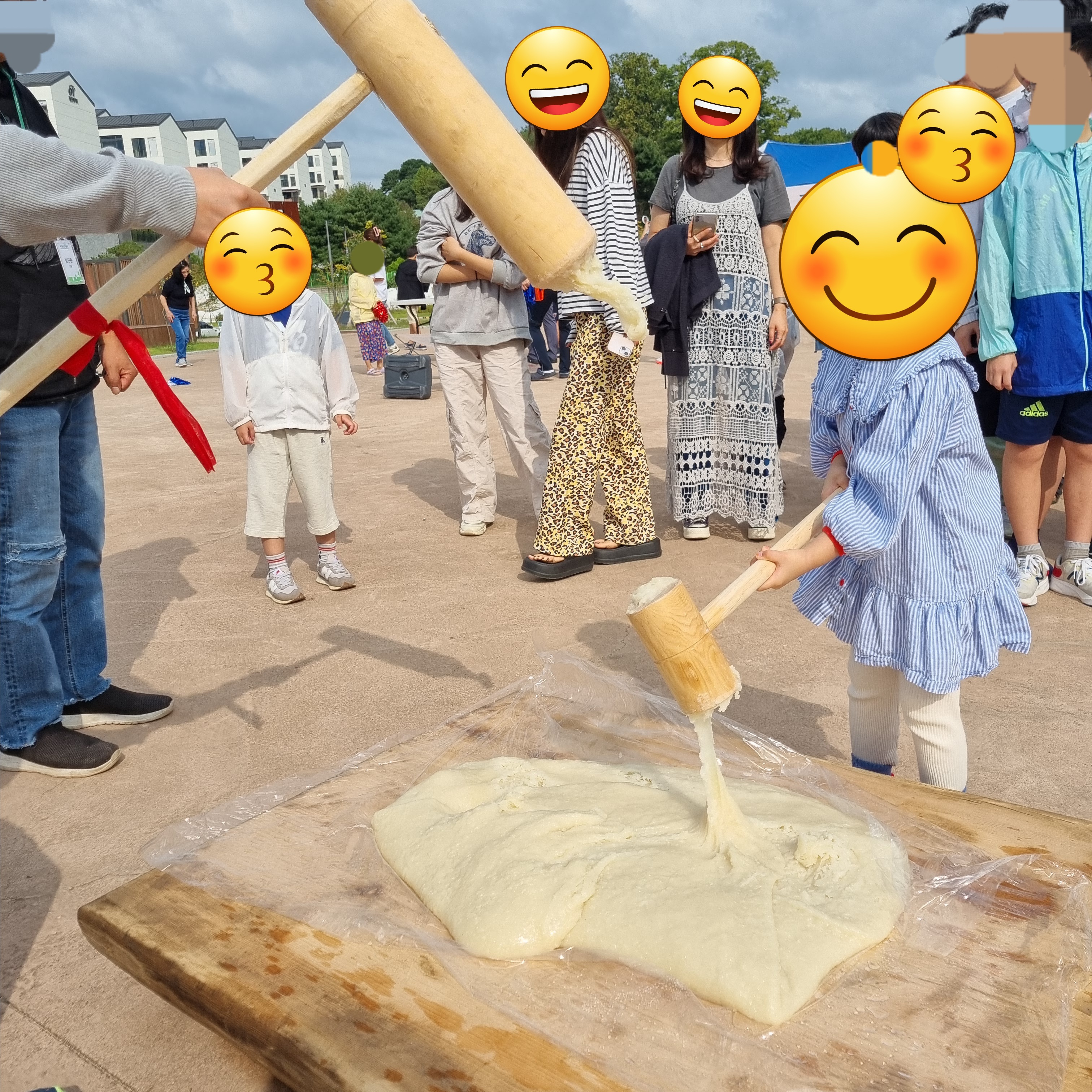 떡메치기는 줄 서서 체험했어요. 민속놀이 체험은 마당에서 자유롭게 가능했어요.