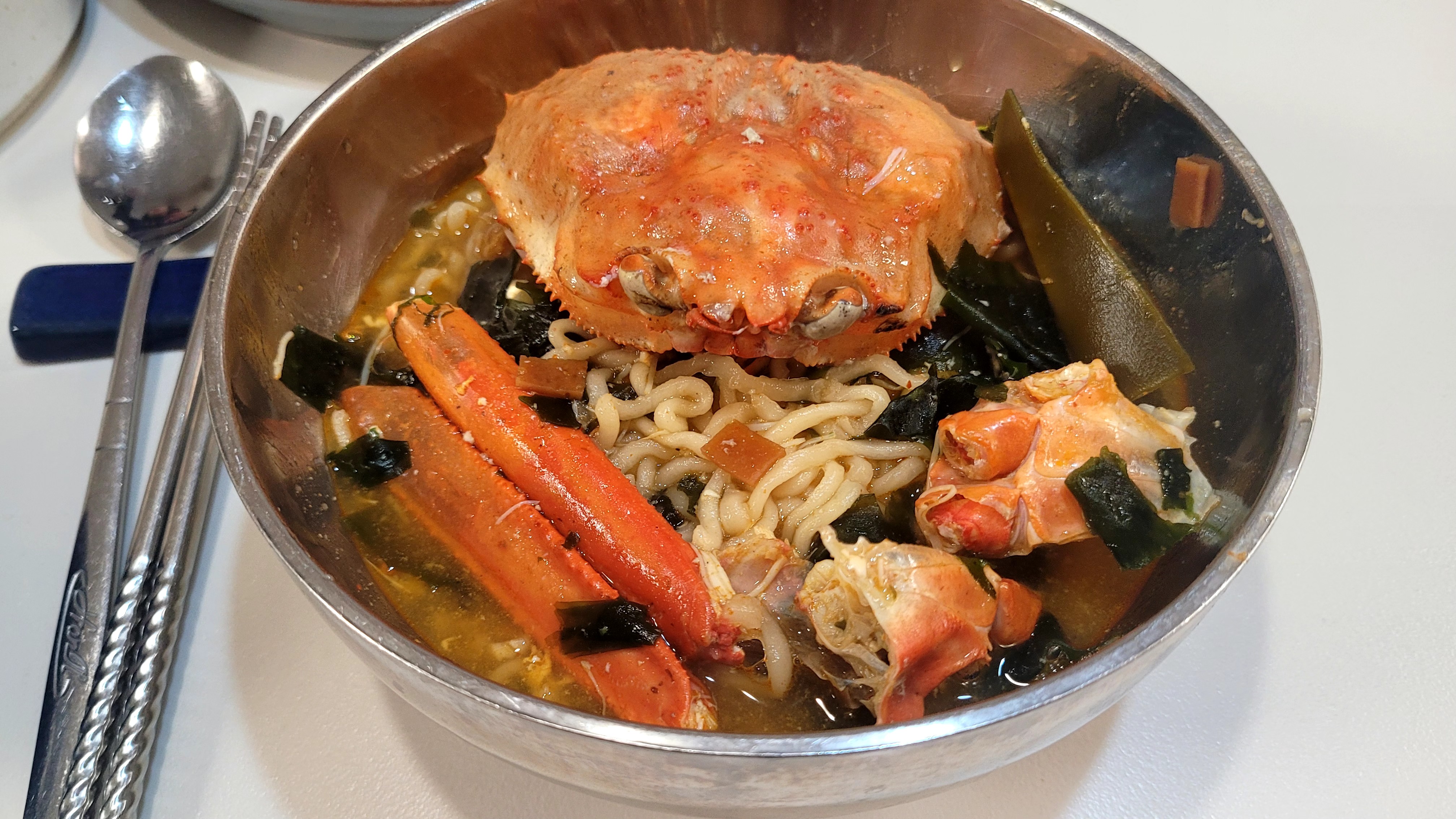 제철음식 홍게로 행복한 홍게파티했어요. 홍게라면 끓이기 어렵지 않아요. 홍게만 풍덩하고 자른 미역 잊지 마세요.