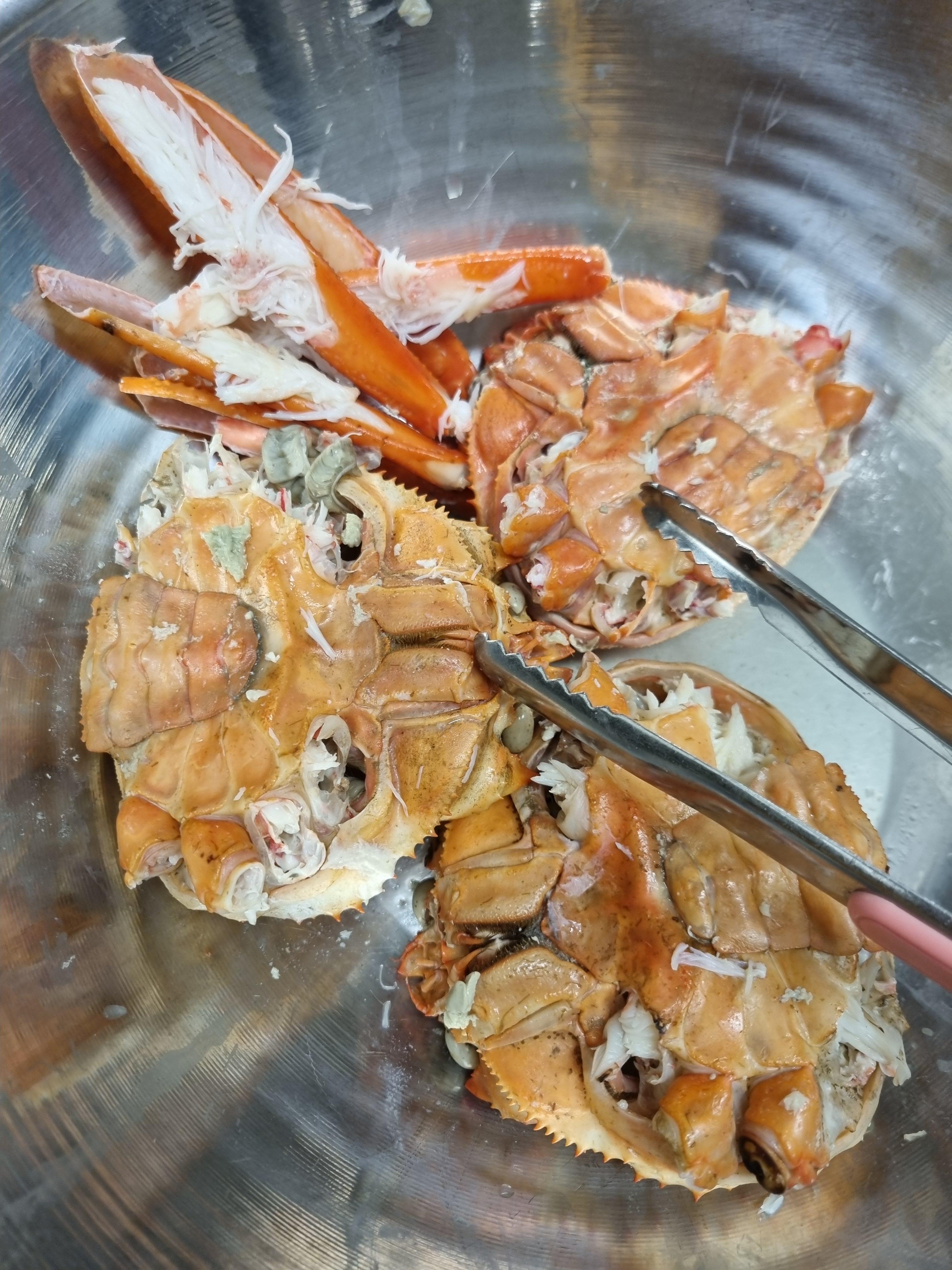 데우고자 하신다면 살짝 잠길만큼 물을 넣고 끓인 후, 불을 끄고 배를 위로 향하게 해서 뚜껑 닫고 몇분 두시면 된대요. 자숙홍게를 새로 찌게 되면 먹을 수 없게 된대요.