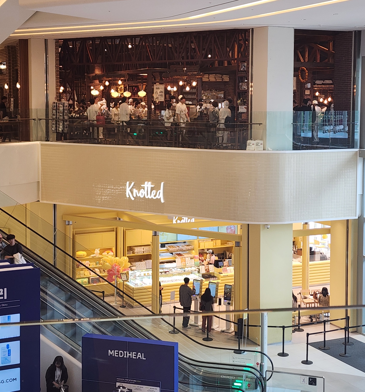 노티드 도넛 수원은 수원 스타필드 1층에 있습니다. 런던베이글의 바로 아래층입니다. 2층은 런던 베이글, 1층은 노티드 도넛. 노티드 도넛 앞에는 항상 줄이 있고, 키오스크에서 주문이 가능해요.