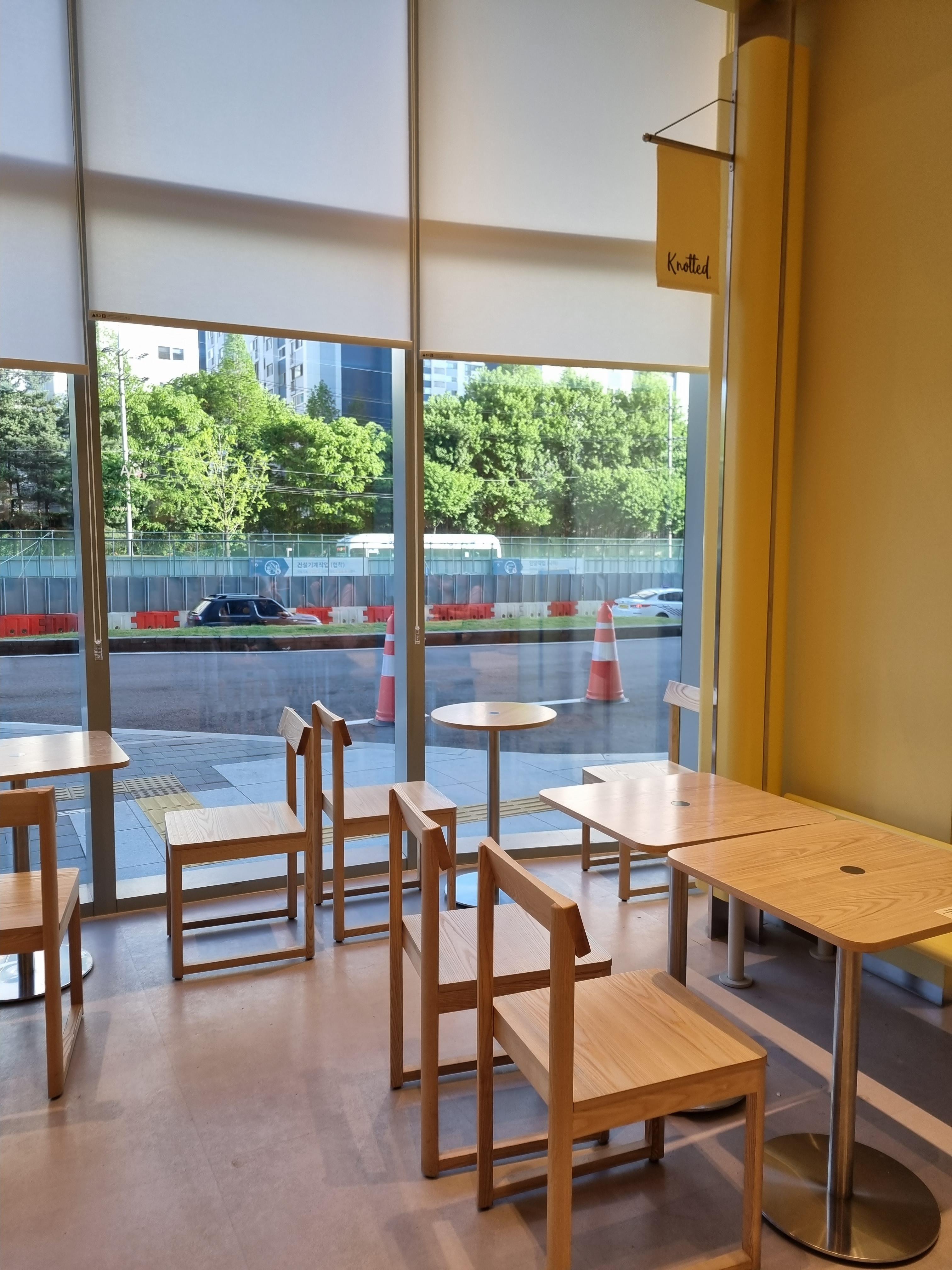 손님 없는 테이블 방향으로 사진 남겨봅니다. 매장에서 음료와 도넛도 먹을 수 있어요.