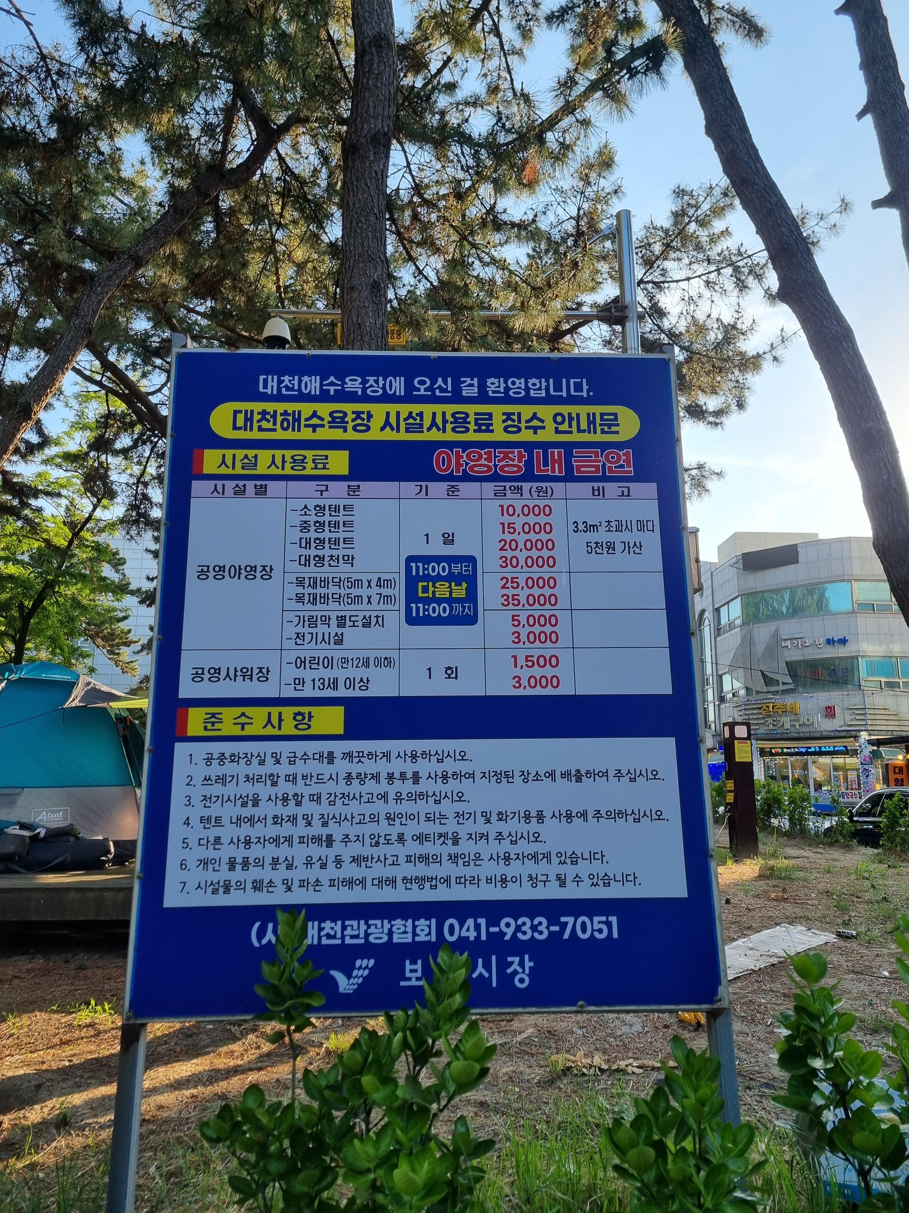 대천해수욕장 국민여가캠핑장 1지구는 한화리조트 대천파로스에서 보령머드박물관 방향으로 걷다보면 왼편에 보입니다.