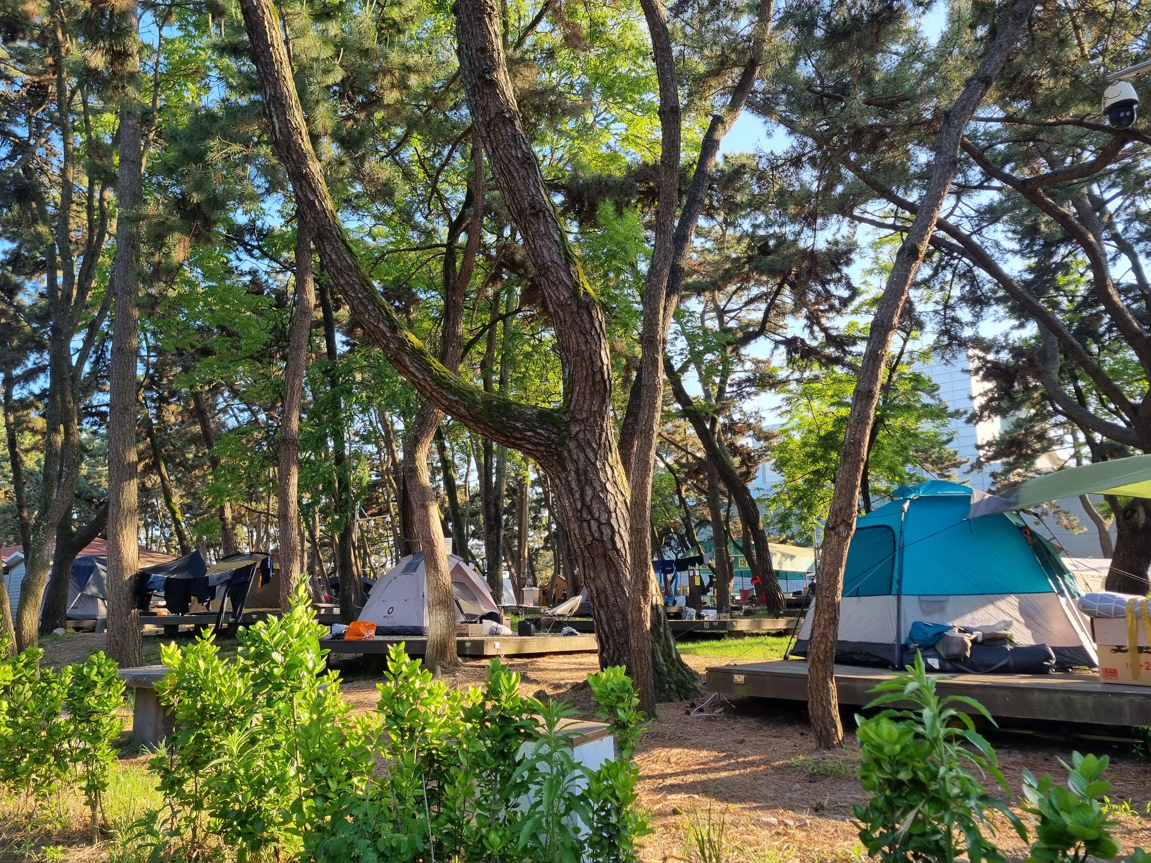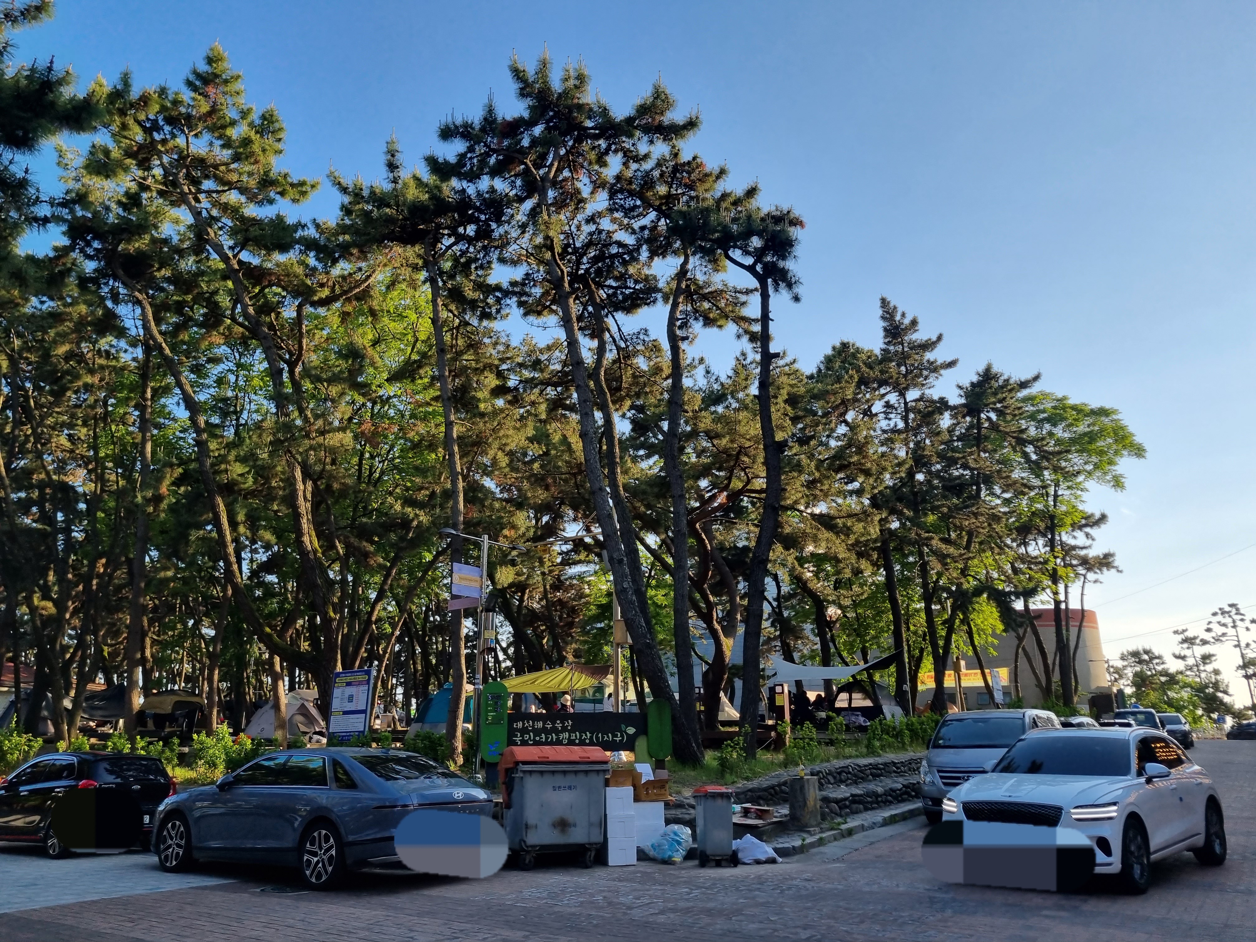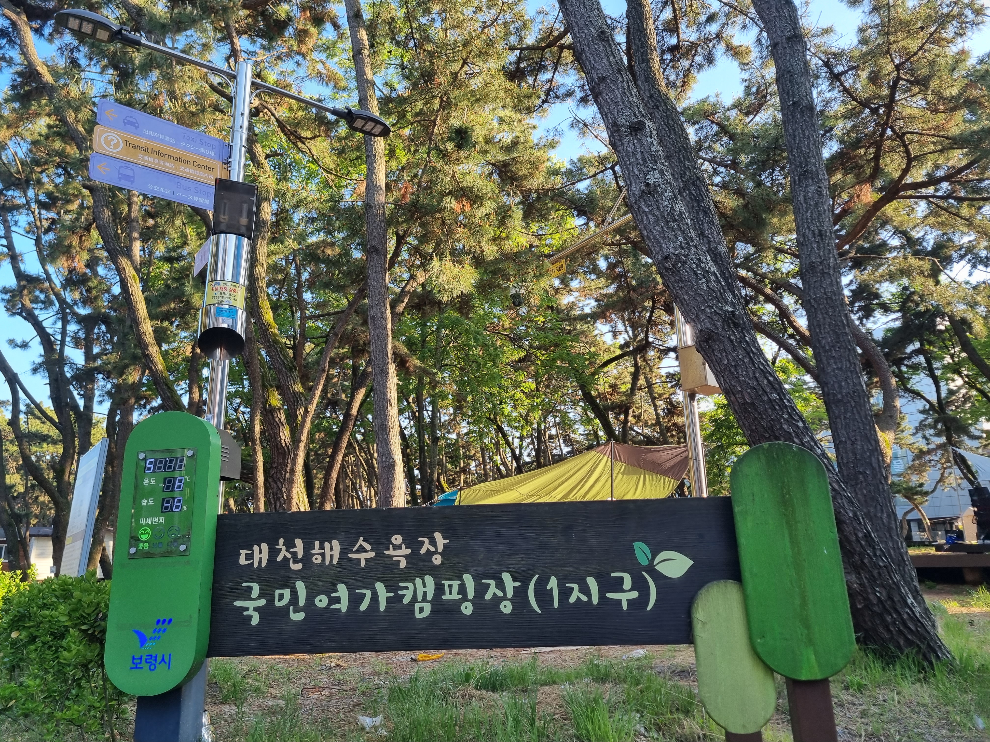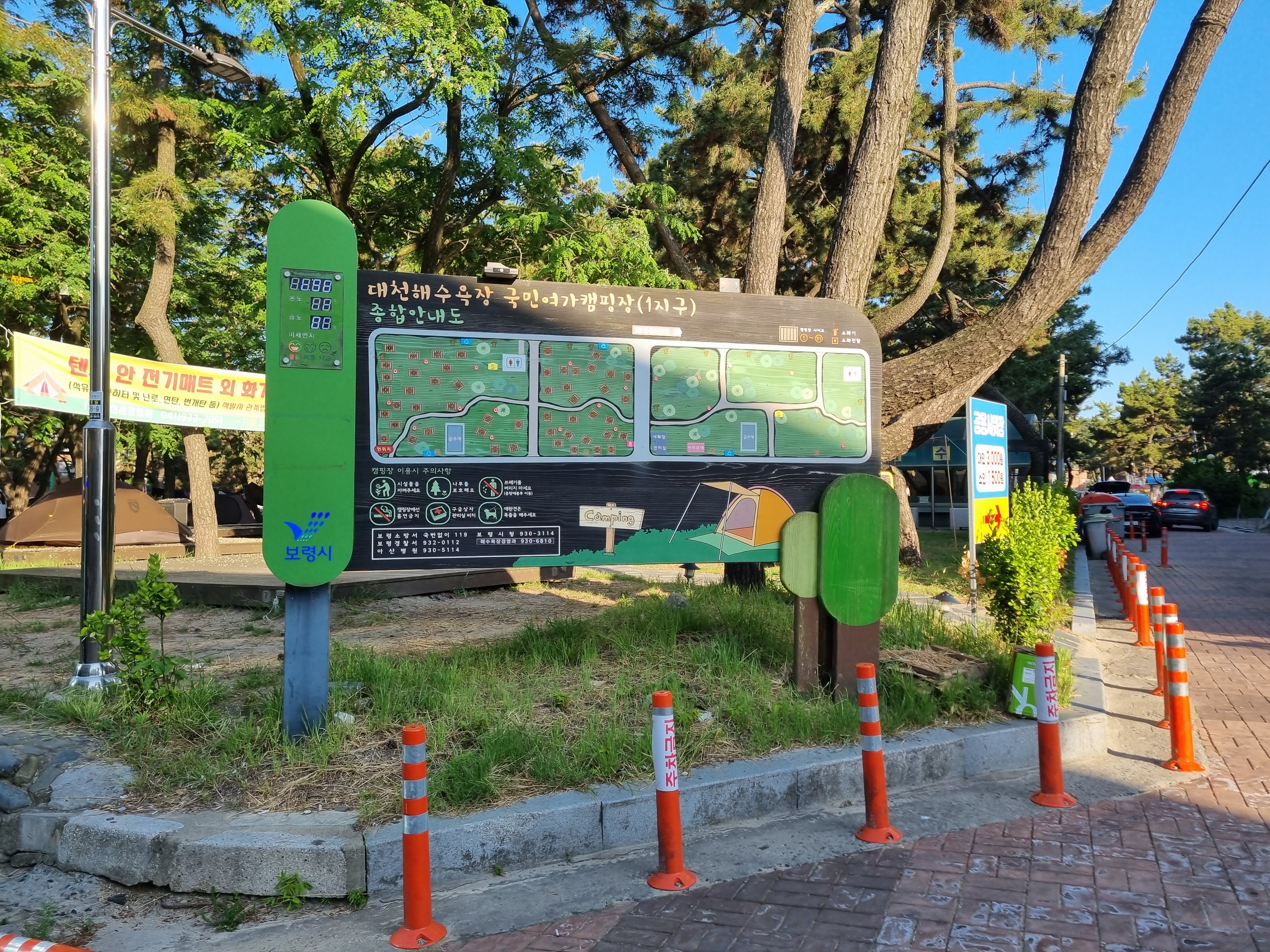 대천해수욕장 국민여가캠핑장 1지구는 한화리조트 대천파로스에서 보령머드박물관 방향으로 걷다보면 왼편에 보입니다.