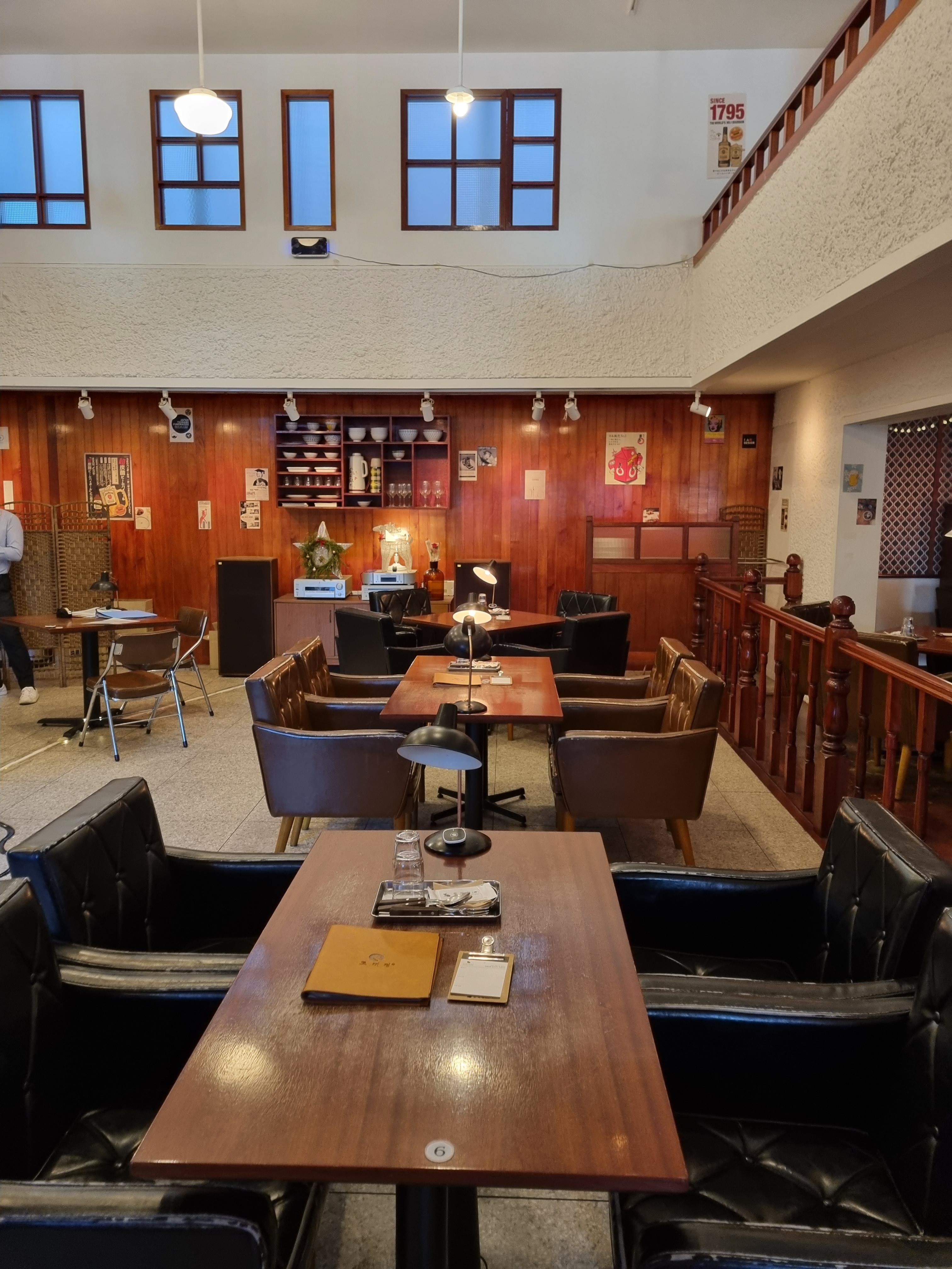 저희가 밥 먹은 공간이에요. 난로를 켜주셔서 덜 추웠습니다. 가구는 많이 낡아 보였습니다. 벽에 걸린 찬장에 눈길이 갑니다. 창 밖도 내다봅니다. 창 밖의 주차칸은 유료주차 구역인 것 같아요. 처음부터 주차는 포기하고 대중교통으로 대학로를 찾아왔기 때문에 주의 깊게 살펴보진 않았네요.