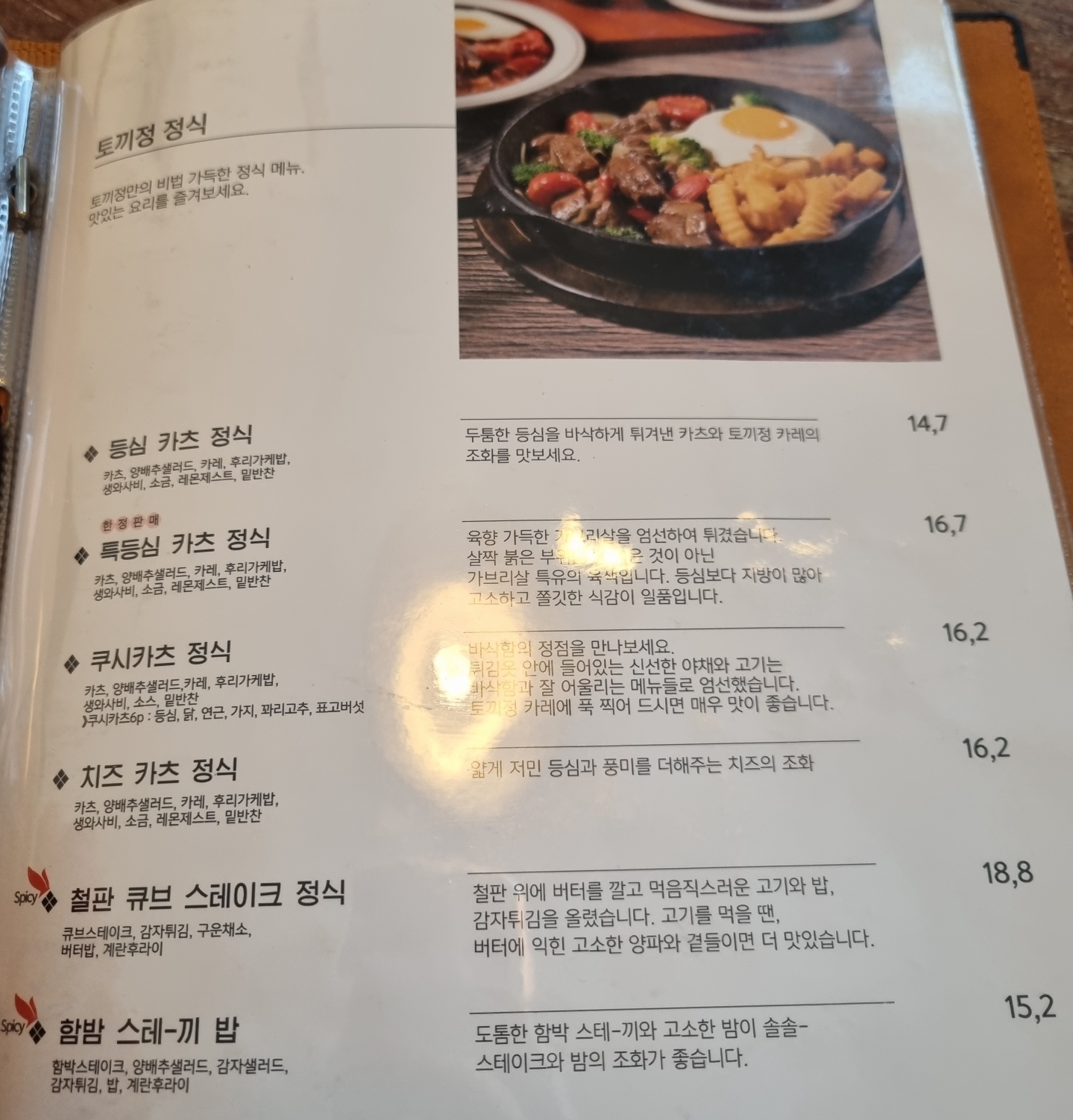 메뉴판을 찍어봅니다. 이미지로 메뉴 확인해 주세요. 저희가 먹은 세트메뉴보다 조금 저렴한 토끼정 밥상 35,800원은 우동 대신 카레를 선택할 수 있는 세트메뉴네요. 세트메뉴 외에도 등심카츠정식과 같은 정식류와 면 종류가 있으니 취향껏 골라보세요.
