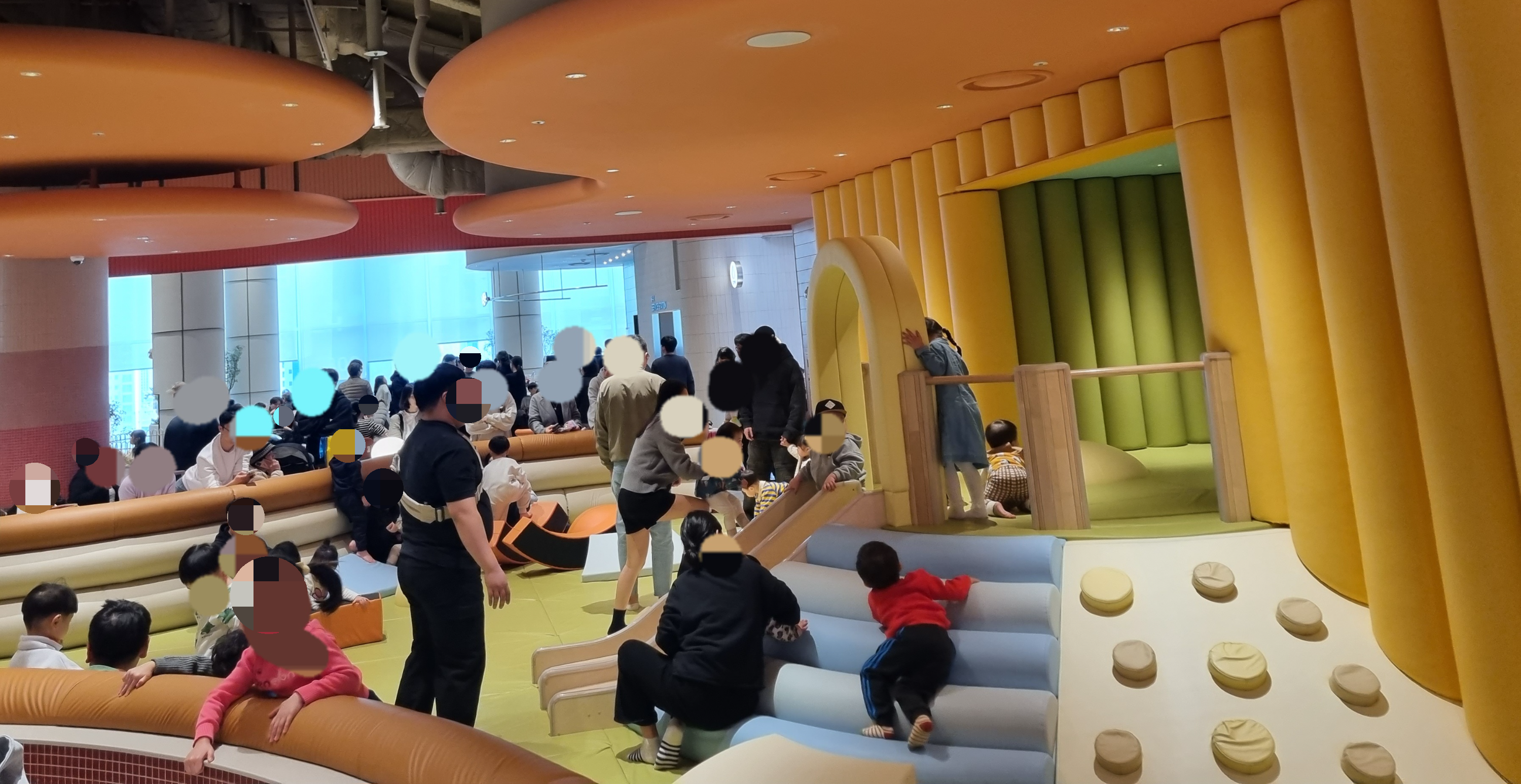 7층에 있는 키즈카페. 제법 큰 아이들이 신나게 놀 수 있는 곳입니다. 영유아는 계속 눈길이 가고 쫓아다녀야 하지만요. 입장료가 꽤 비싼데 딜 뜨면 쿠팡 같은데서 저렴하게 구매하길 추천합니다. 쿠팡에서 구매한 이용권을 기한 내 쓰지 못하면 쿠팡캐시로 다시 돌려주더라고요.