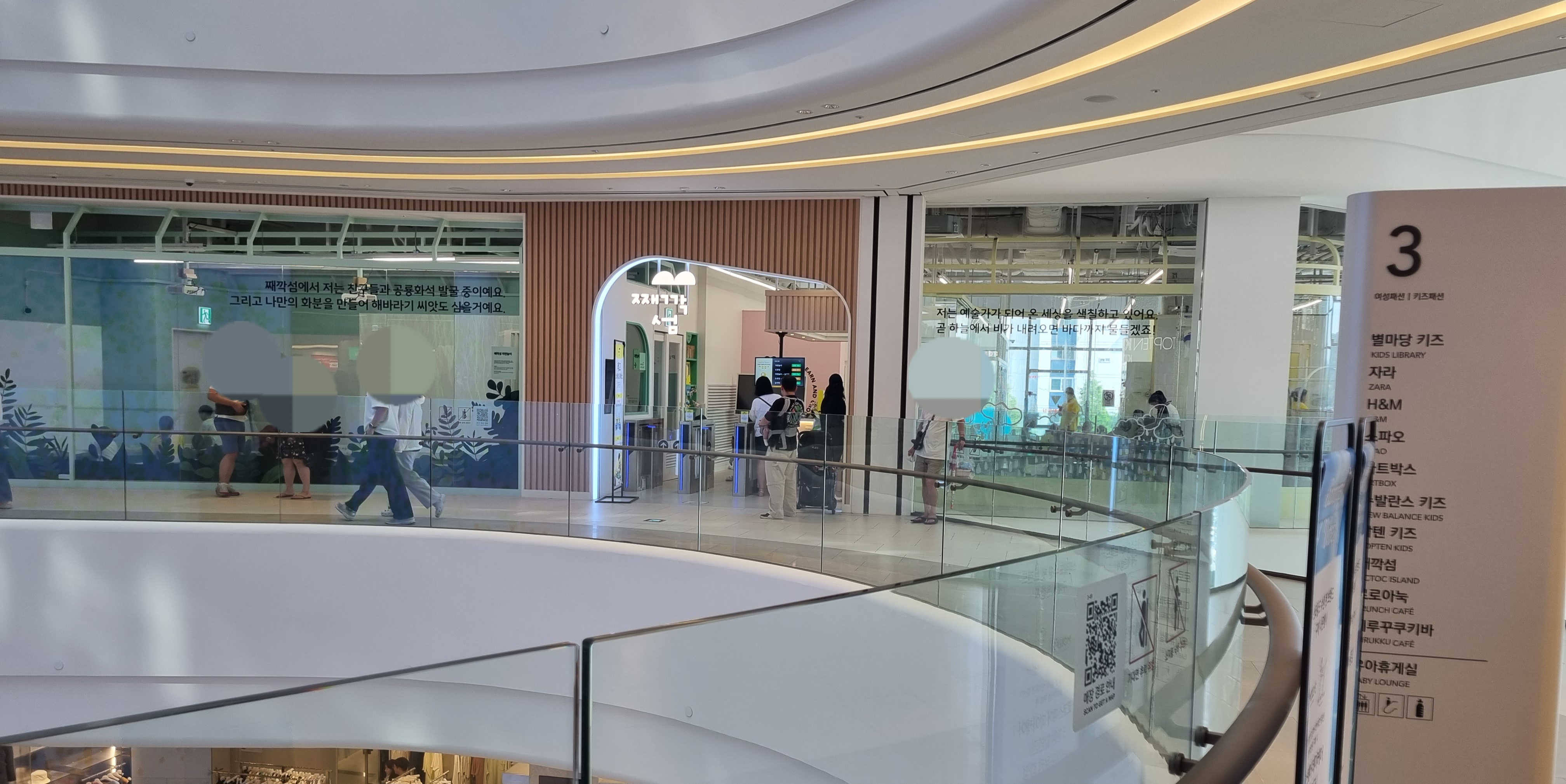 7층에 있는 키즈카페. 제법 큰 아이들이 신나게 놀 수 있는 곳입니다. 영유아는 계속 눈길이 가고 쫓아다녀야 하지만요. 입장료가 꽤 비싼데 딜 뜨면 쿠팡 같은데서 저렴하게 구매하길 추천합니다. 쿠팡에서 구매한 이용권을 기한 내 쓰지 못하면 쿠팡캐시로 다시 돌려주더라고요.