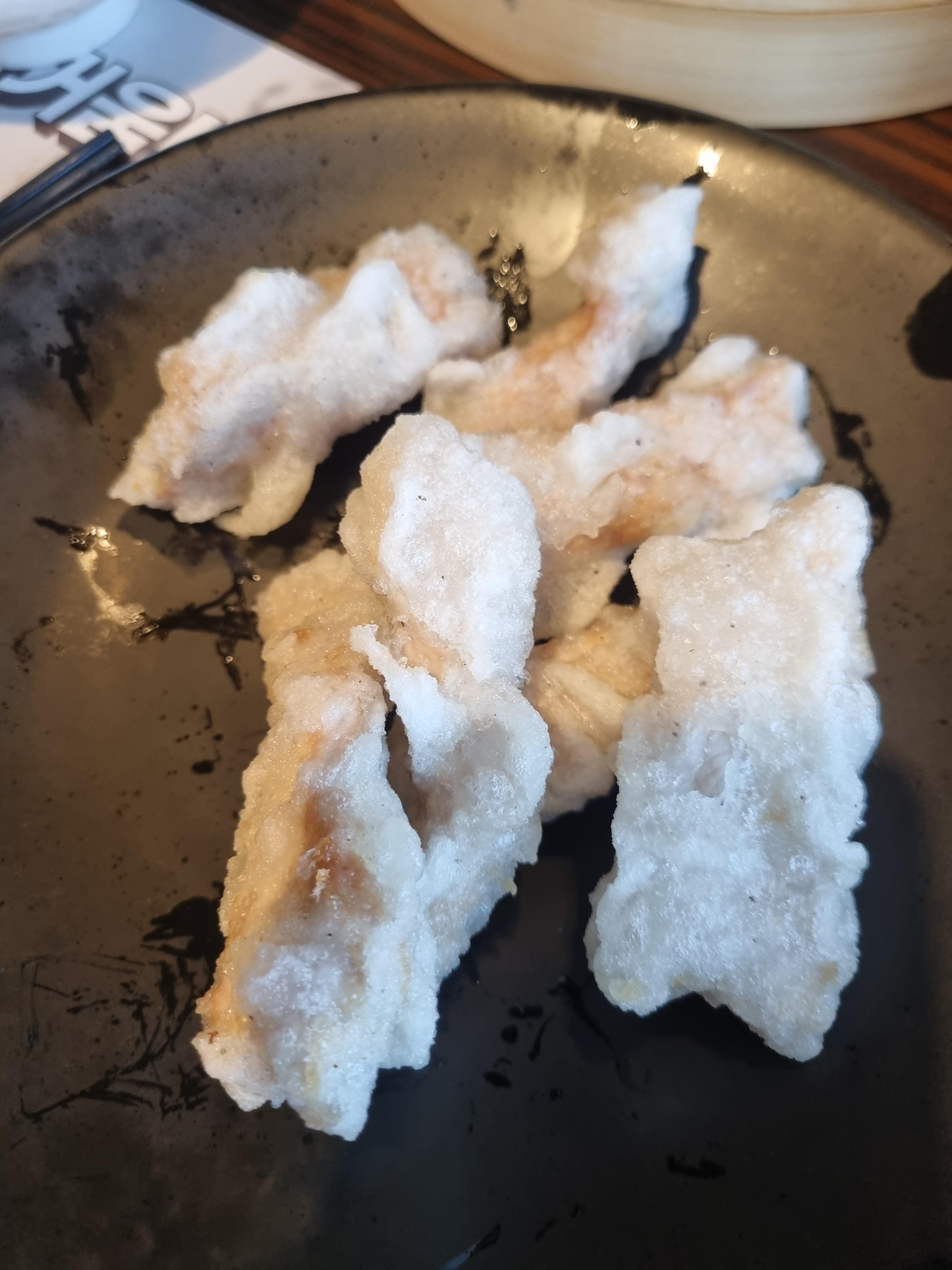 요리 중에는 꿔바로우를 골랐어요. 소자로 주문했던 것 같아요. 소스를 찍어먹었고 이미 세 점 접시로 옮긴 상태로 찍은 사진이에요. 튀긴 요리지만 담백하고 맛있었어요.