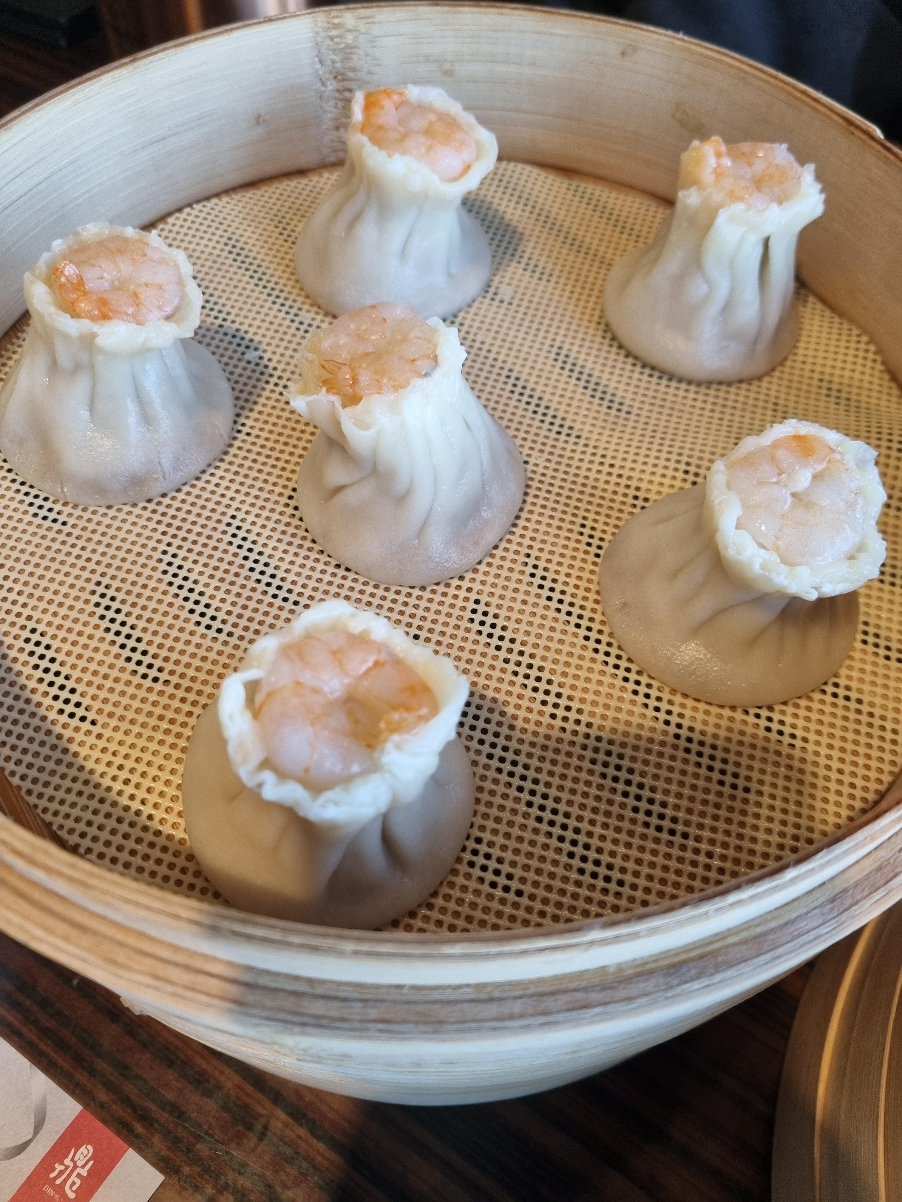 새우샤오마이, 1인 2개씩 먹을 수 있게 6개짜리로 주문했어요. 촉촉하고 맛있었어요. 저는 새우가 더 맛있더라고요.