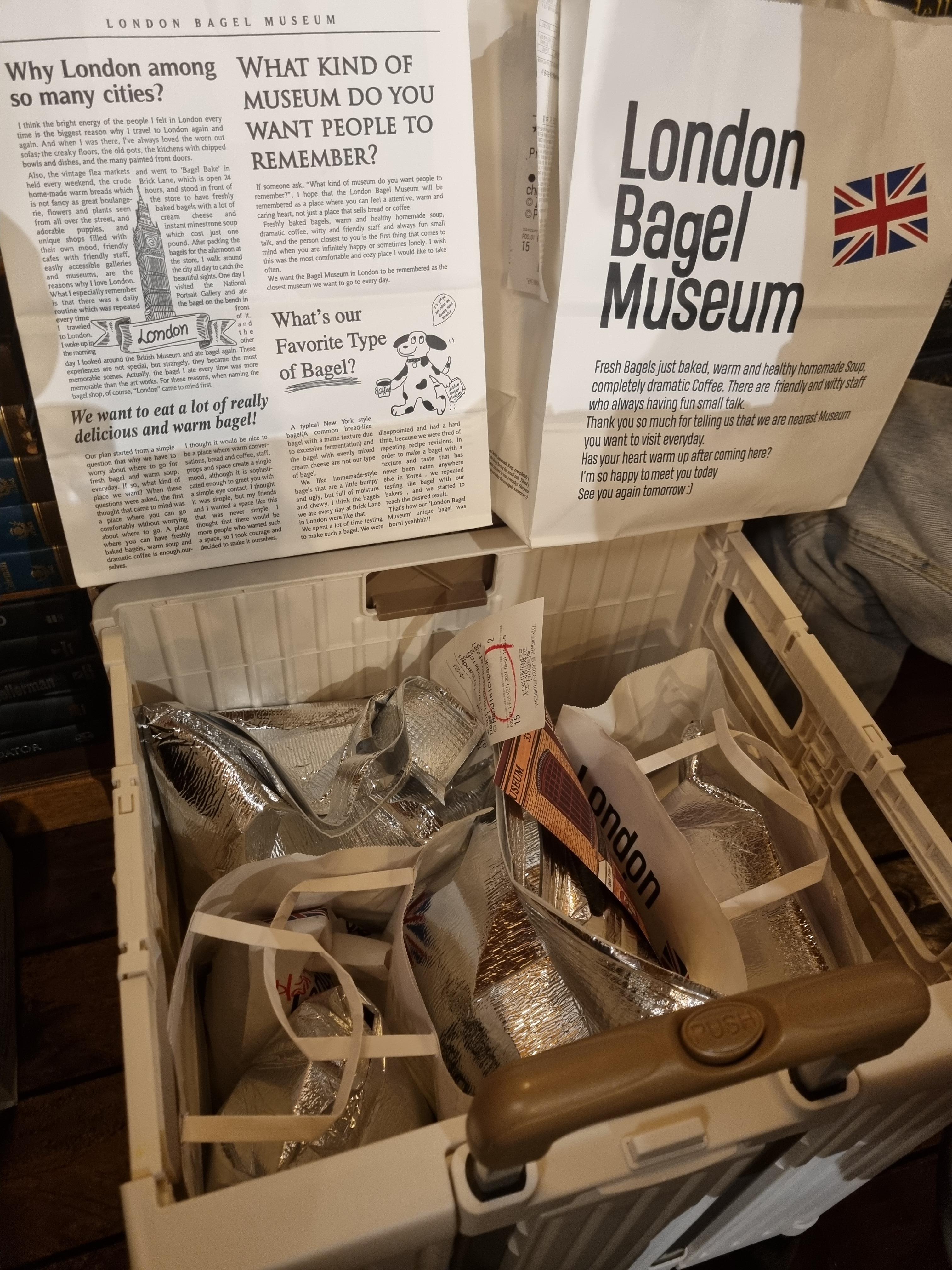 오픈 첫날 아침 모습입니다. 내부 사진은 오후에 입장해서 찍었어요. 느낌 있는 런던베이글입니다. 보기만 해도 맛있었는데, 다들 10만 원 정도 구매하는 건 기본인가 봐요. 기다린 것이 아까워서 대량 구매하시더라고요. 저도 8만 원어치 구입해서 냉동실에 넣어두고 먹었답니다.