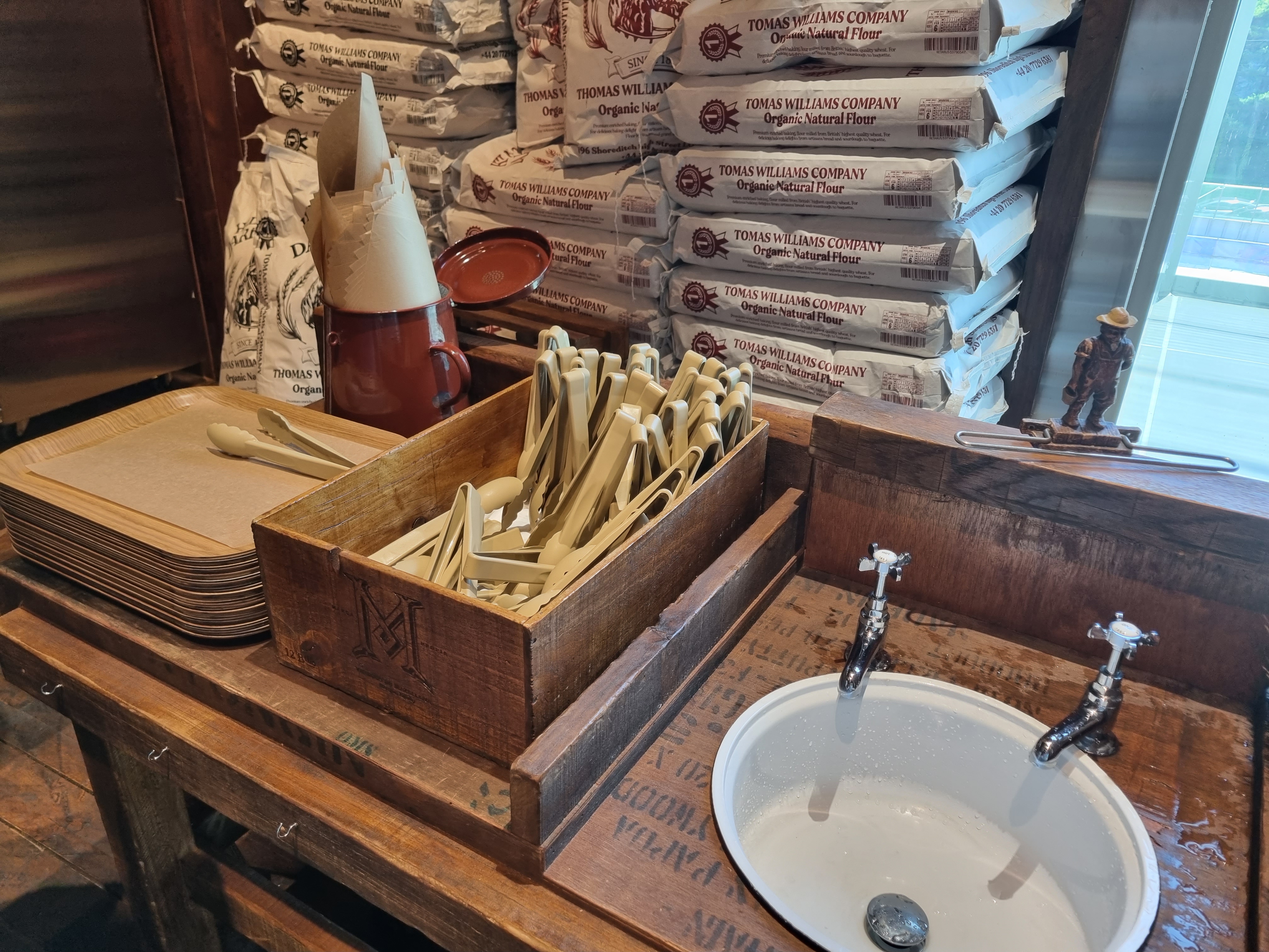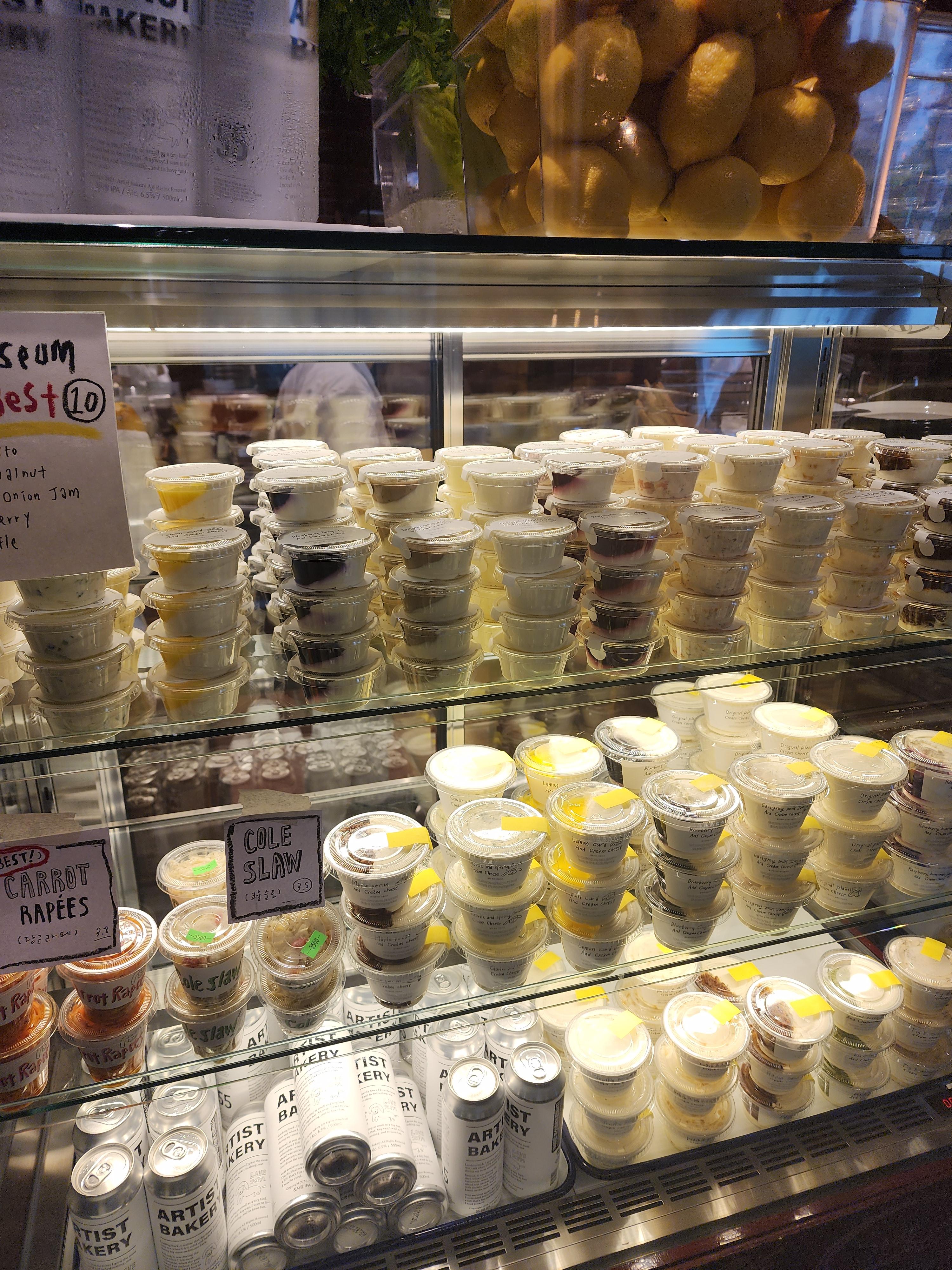 입장하면 왼편에 앉을 수 있는 테이블이 있어요. 이쪽에 자리를 잡고 일단 줄을 서러 갑니다. 손에 짐을 들고 있으면 베이글을 담을 수 없어요.