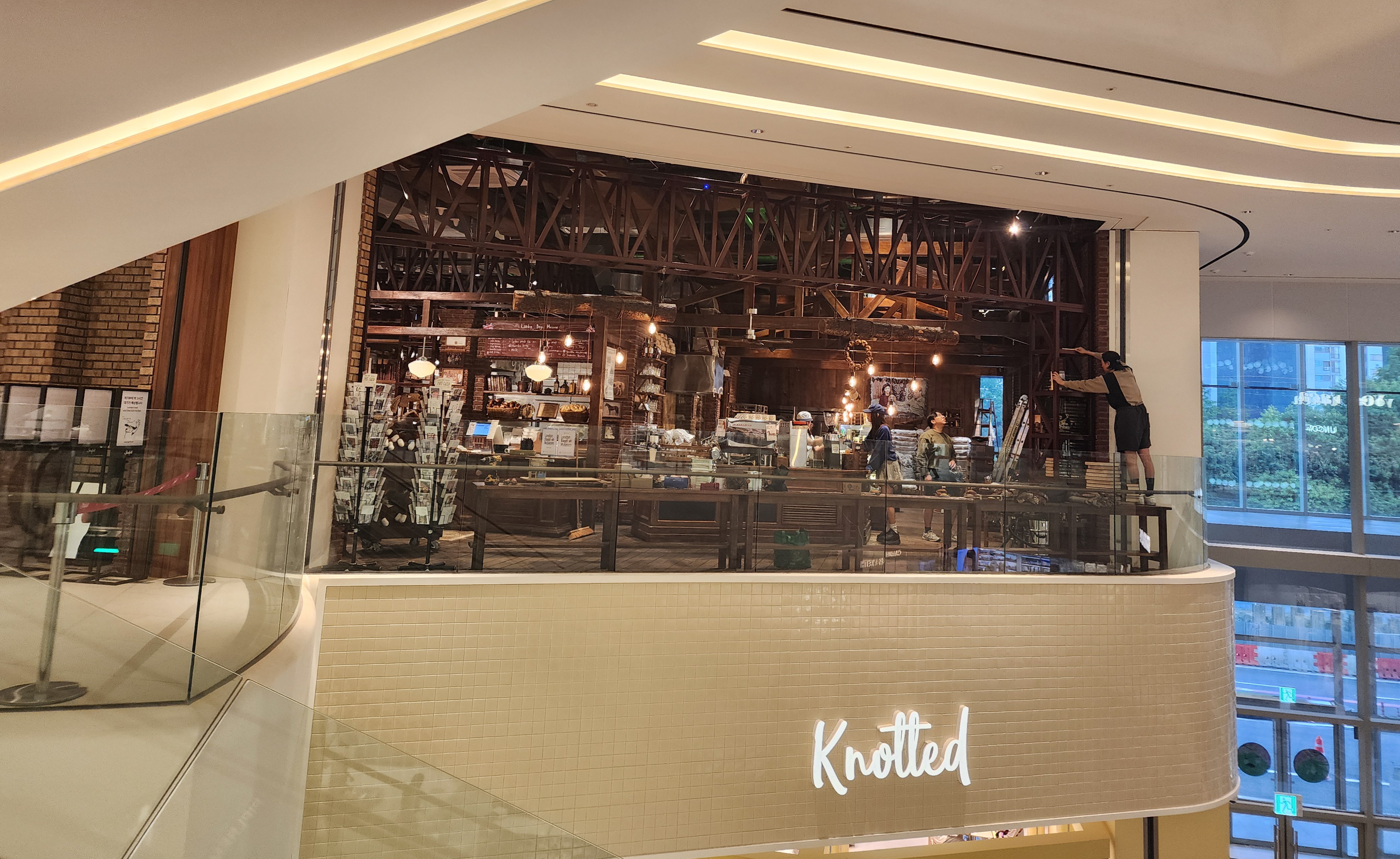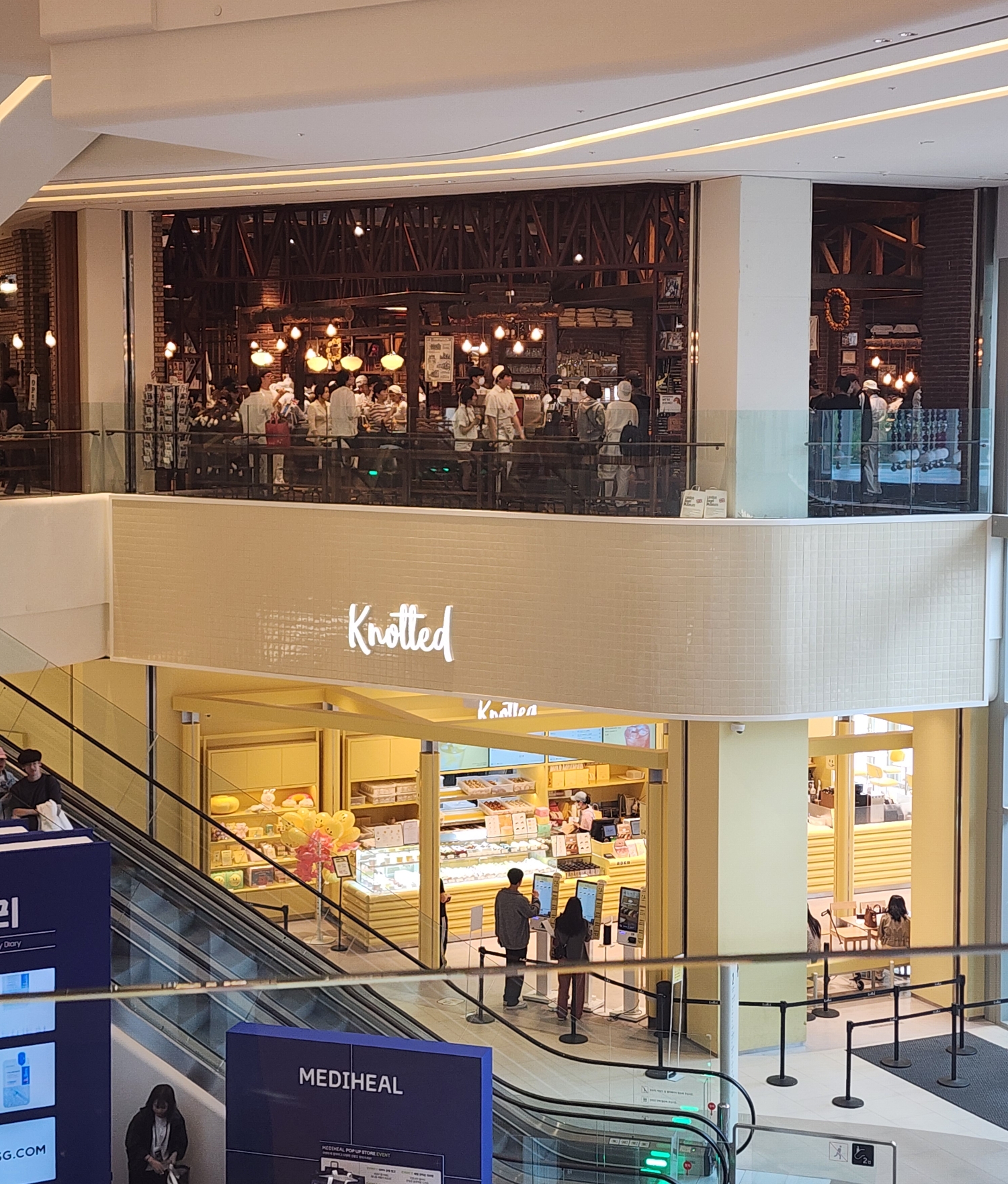 위치는 수원 스타필드 2층이고, 대로에 가까운 건물 중앙 출입구에서 에스컬레이터를 타고 한 층 올라가시면 됩니다. 런던베이글 바로 아래층이 노티드라서 찾기 쉬우실 거예요. 도넛 가게 위층에 베이글 가게가 생기는 거거든요. 런던베이글 덕분인지 노티드가 한산해 보입니다.