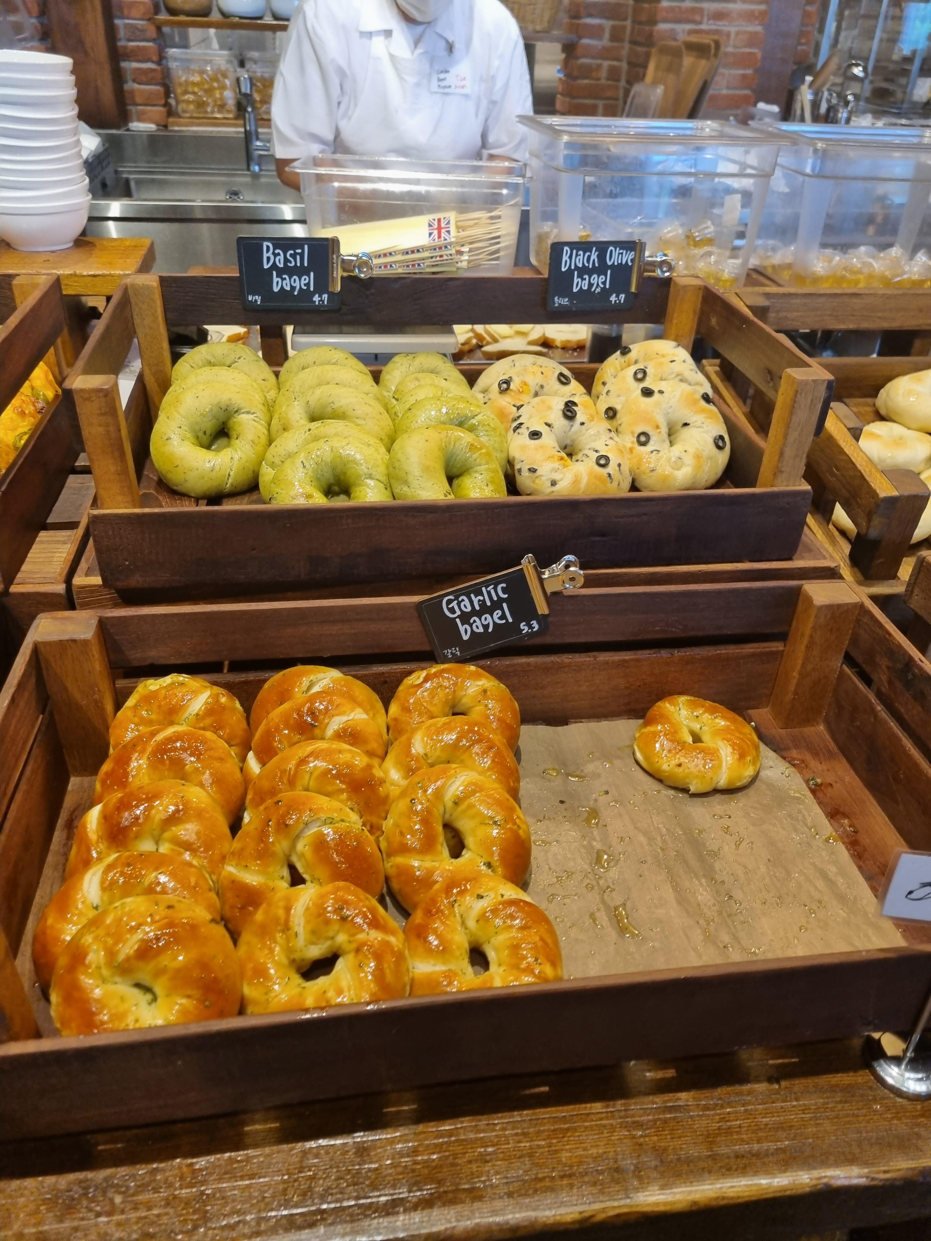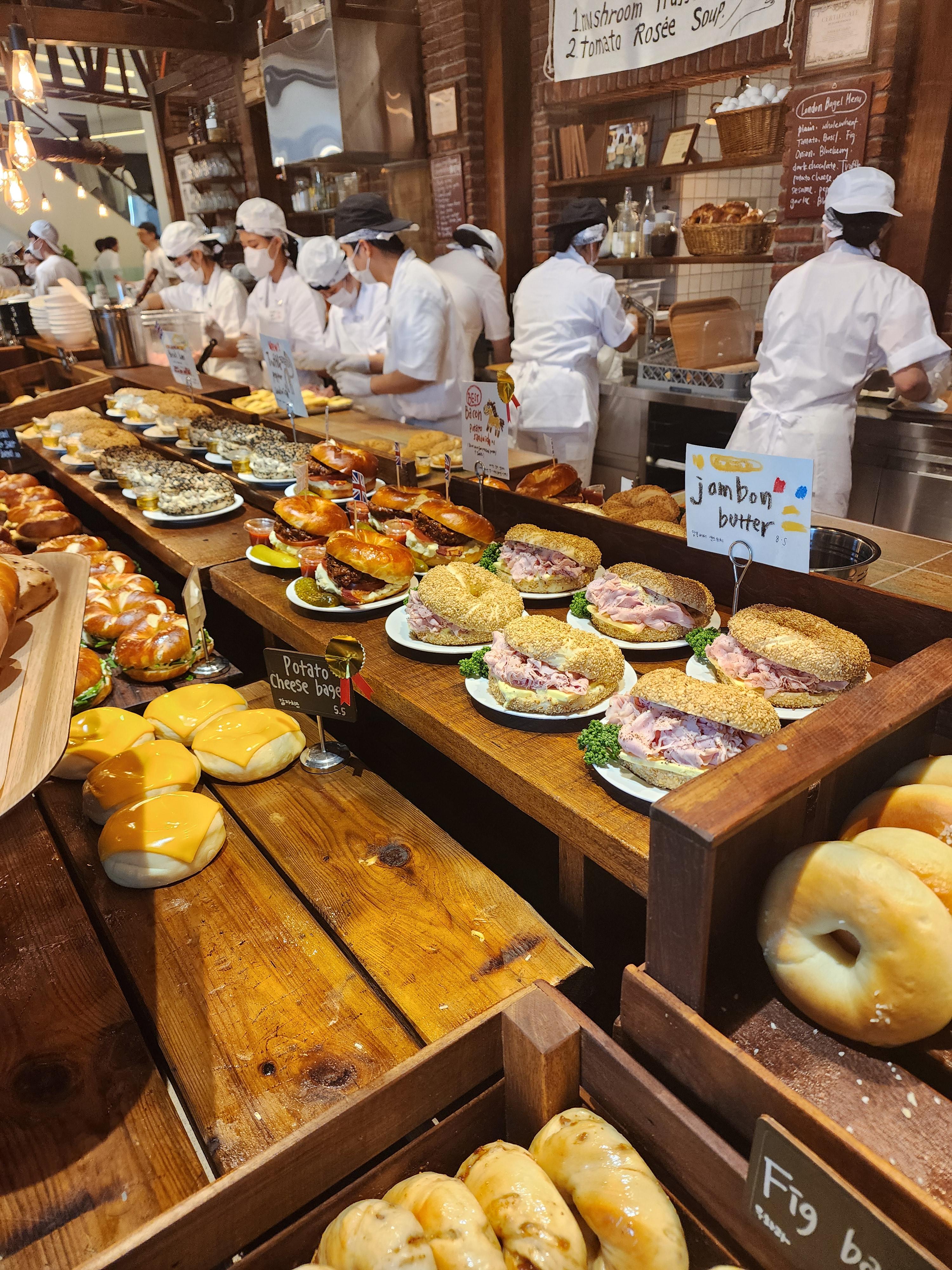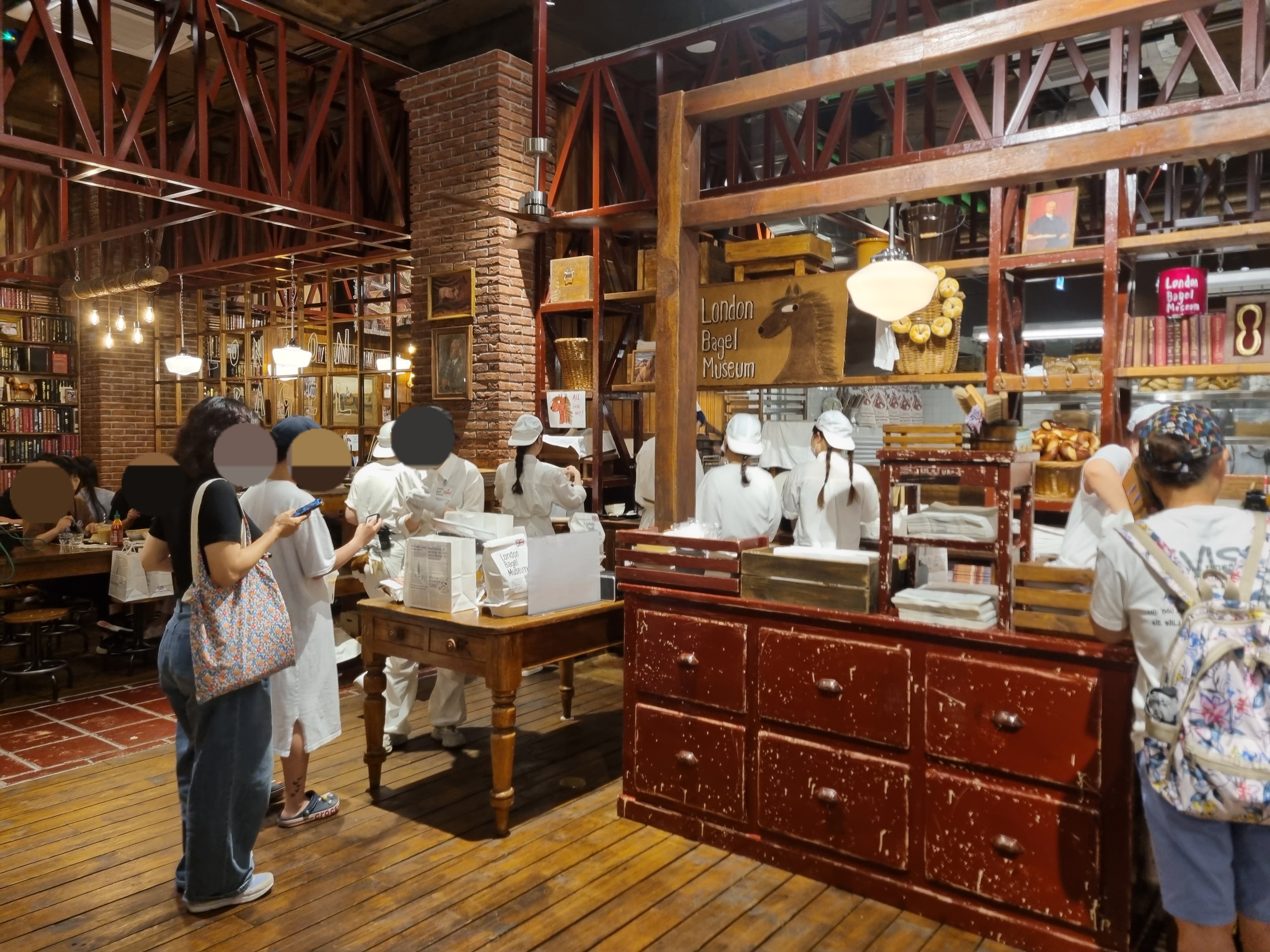 줄을 서봅니다. 제 앞으로 줄이 있어요. 그 앞으론 베이글이 가득해요. 빠지는 속도만큼 빠르게 채워집니다. 직원만 40명이라는 소문을 들었는데 제 눈에 보이는 직원만 해도 15명이 넘서요. 진짜 많네요.