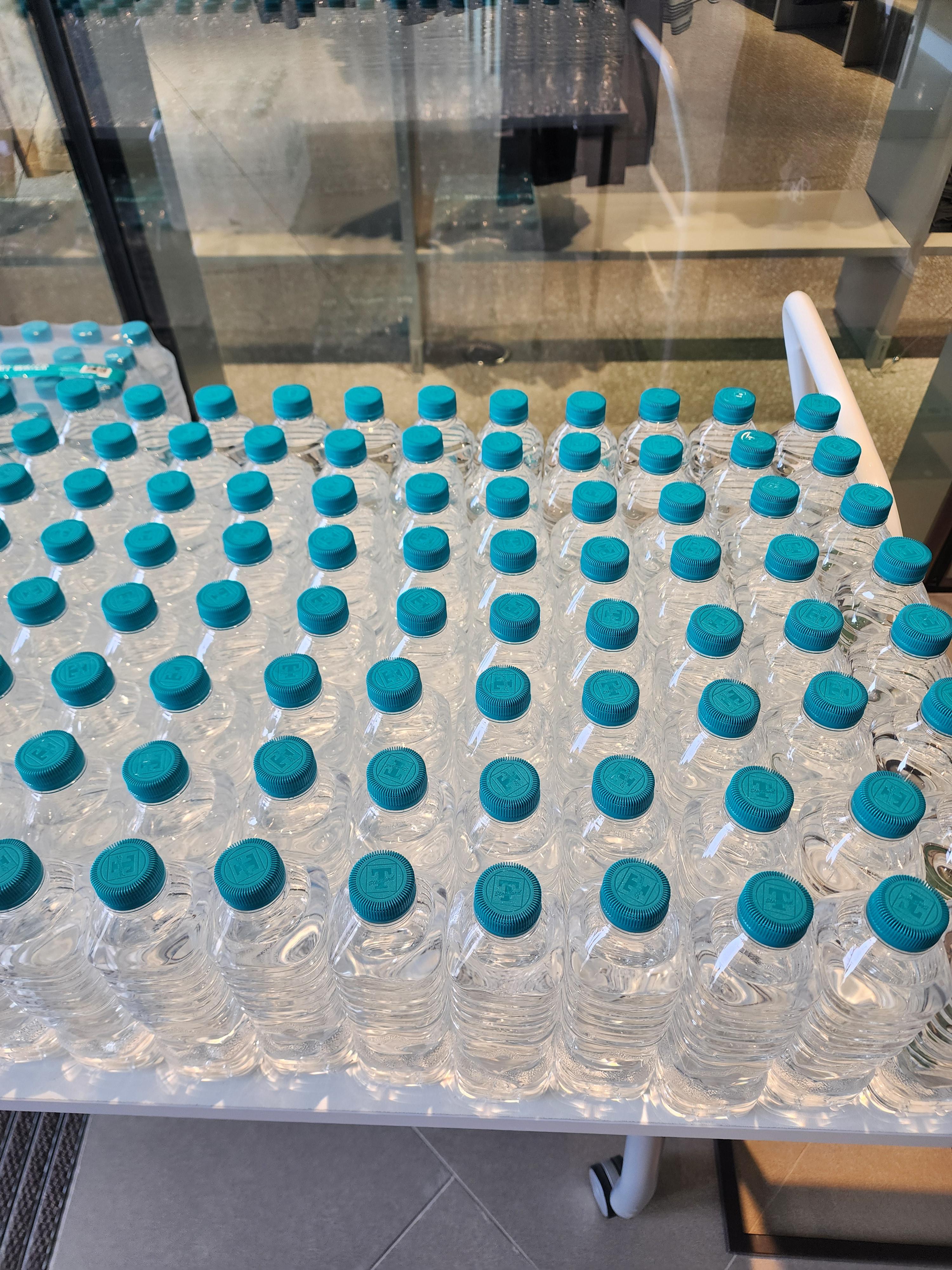 10시 스타필드 오픈 전에는 화서역 앞쪽 게이트로 입장 가능합니다. 웨이팅 고객을 위한 생수 준비되어 있어요. 줄이 길지요. 문 열기 30분 전에 도착해서 일찍 왔다고 생각했는데 베이글은 1시 30분에 살 수 있었습니다. 4시간을 기다렸어요. 매진 상품도 있다네요. 저희 뒤로도 계속 줄이 생겨나요. 런던베이글 인기는 알고 있었지만 직접 보니 대단합니다.