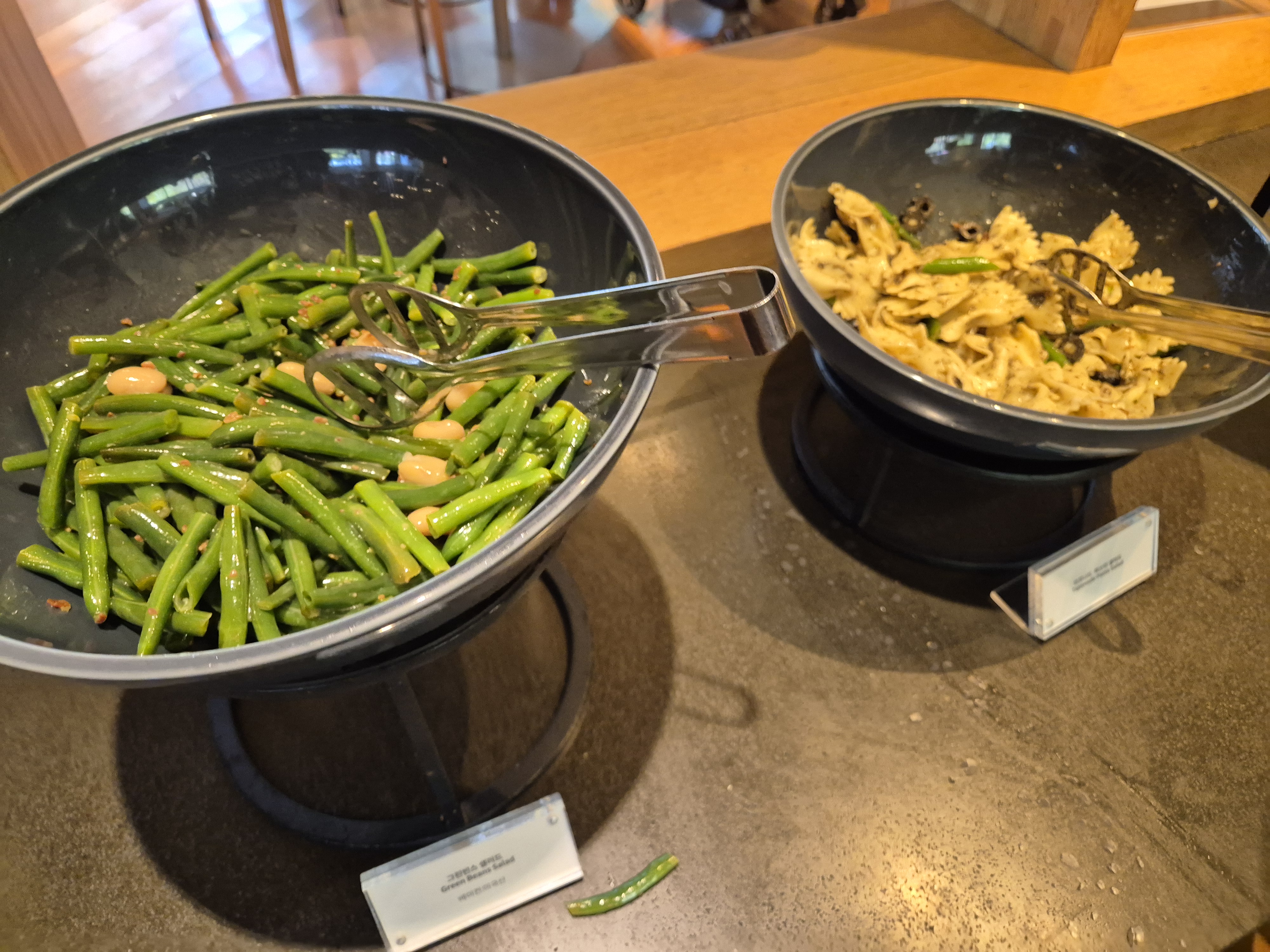 한식코너에는 명태회무침, 꼴뚜기, 겉절이, 궁채절임, 청어알젓, 나물류, 김이 있었어요.