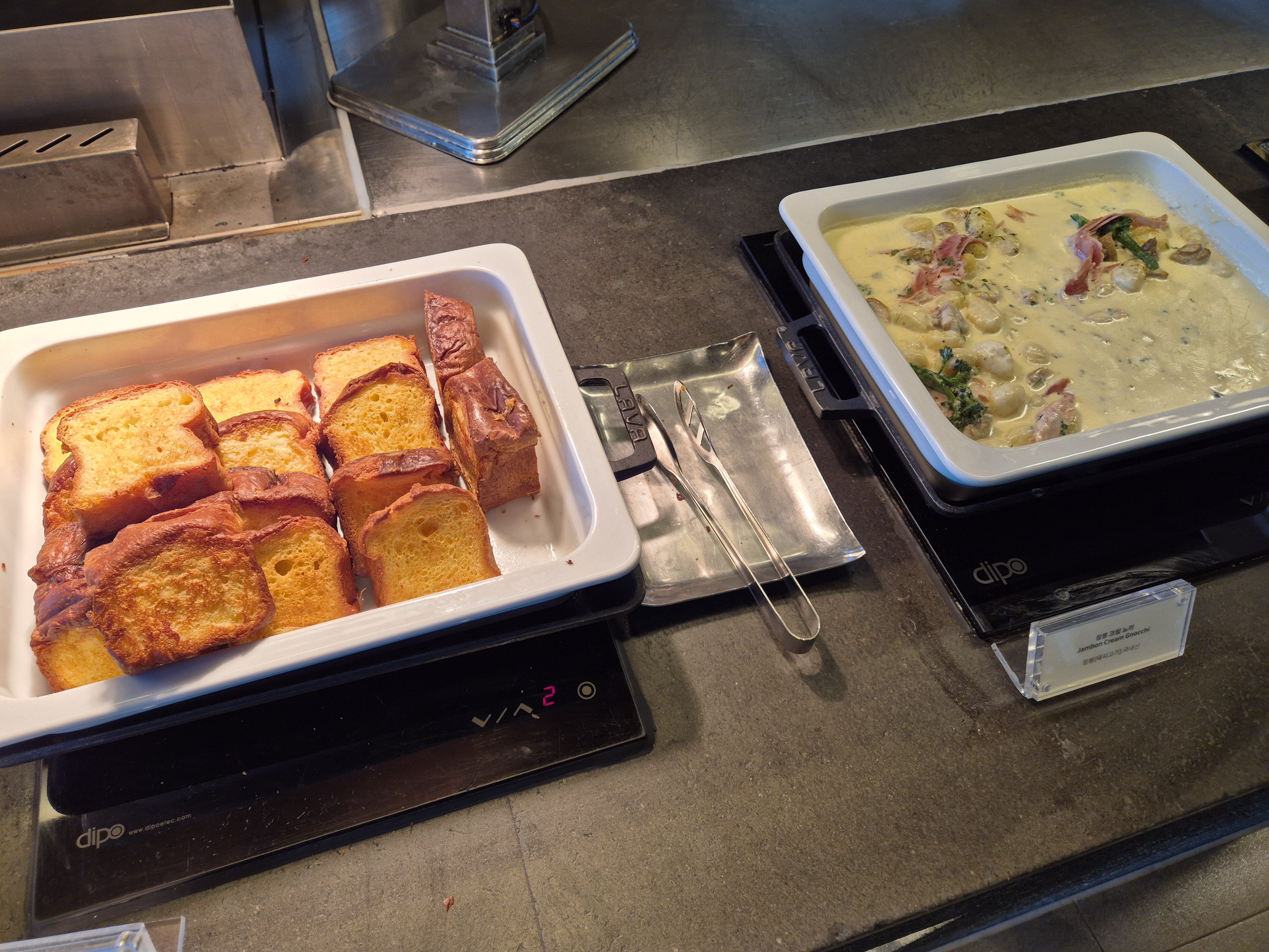 프렌치토스트가 맛있다는데 저는 배불러서 패스했습니다. 옆엔 뇨끼. 그리고 팬케이크도 다양한 소스, 토핑이 비치되어 있어요.
