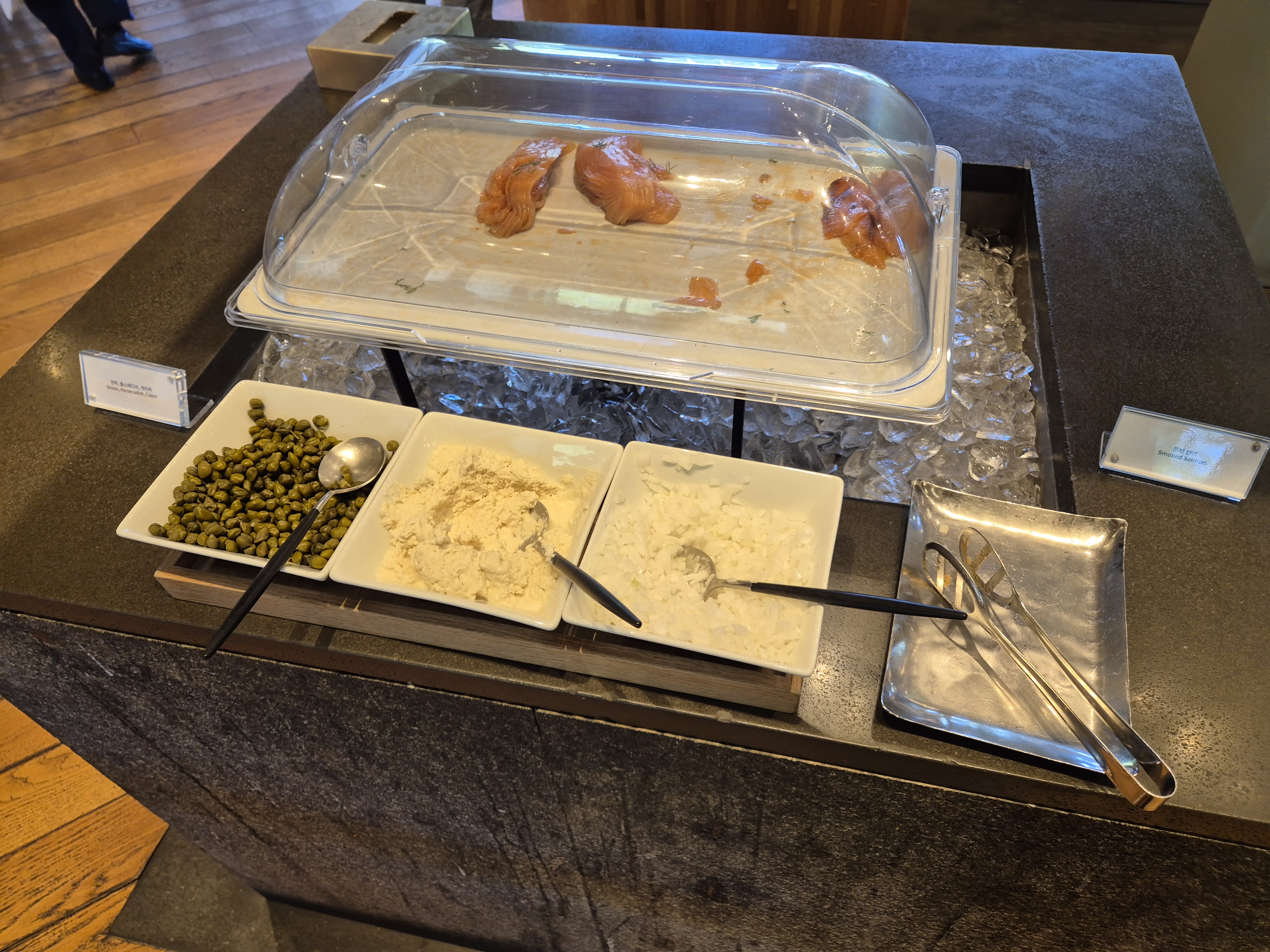 왼쪽에는 훈제연어가 있었는데 떨어지면 바로 다시 채워주셨어요.