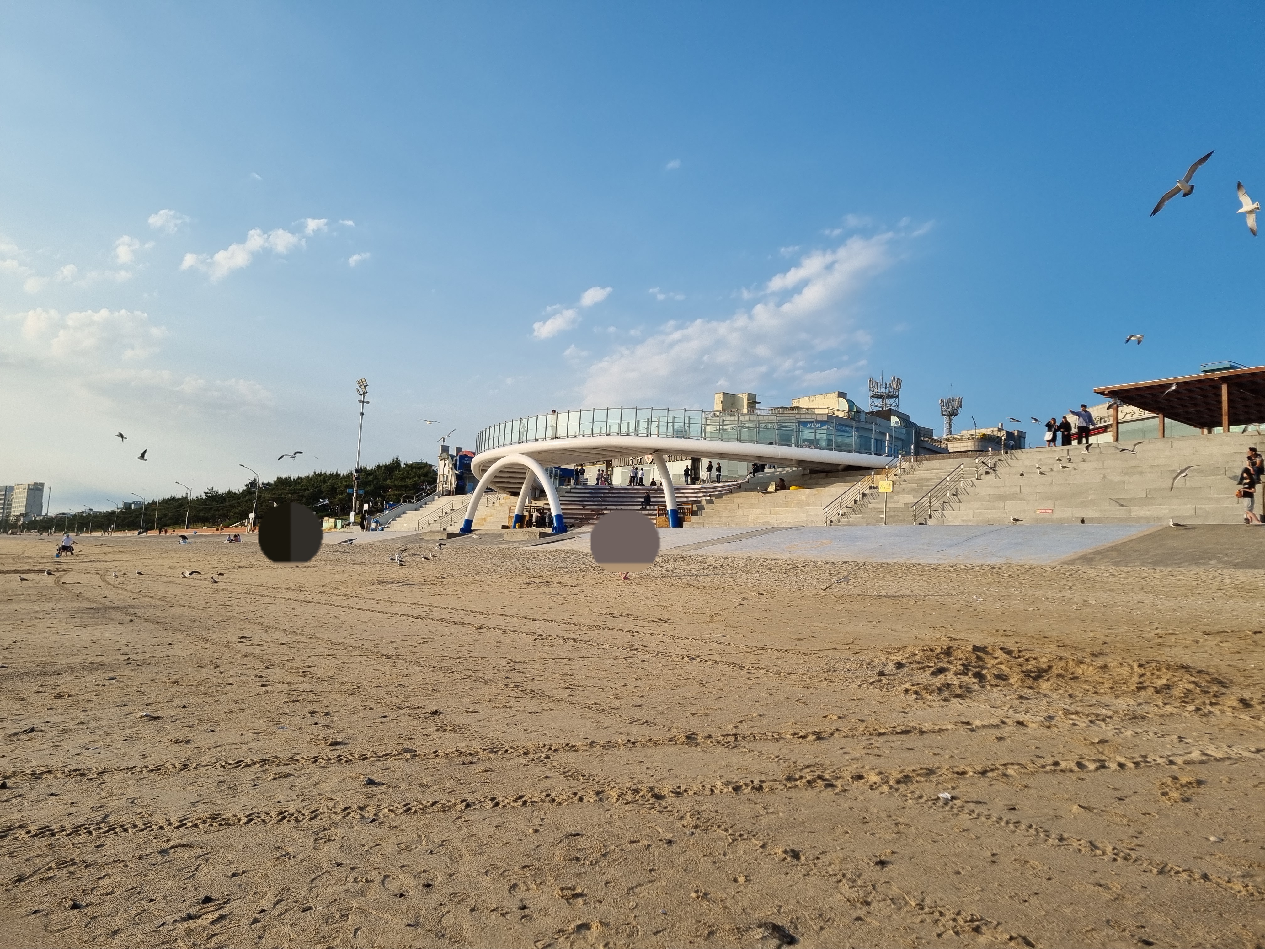 대천해수욕장 노을광장 주변으로 갈매기가 날아다닙니다. 공연도 하고 있습니다. 대천해수욕장 일몰을 보려고 장소 물색에 나섰습니다.