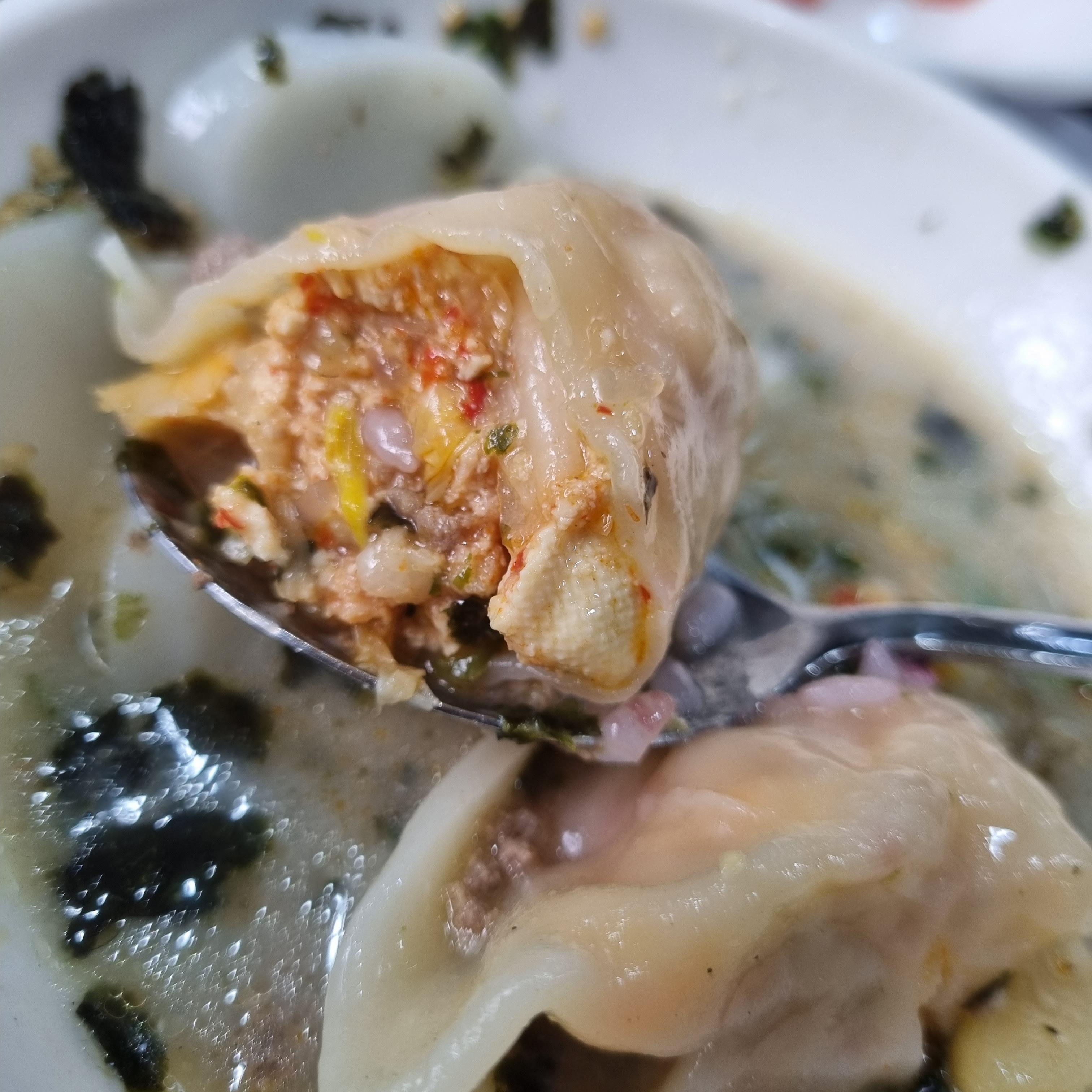 약수터 만두국 (만두 두개 건져내다다 찍은 사진)