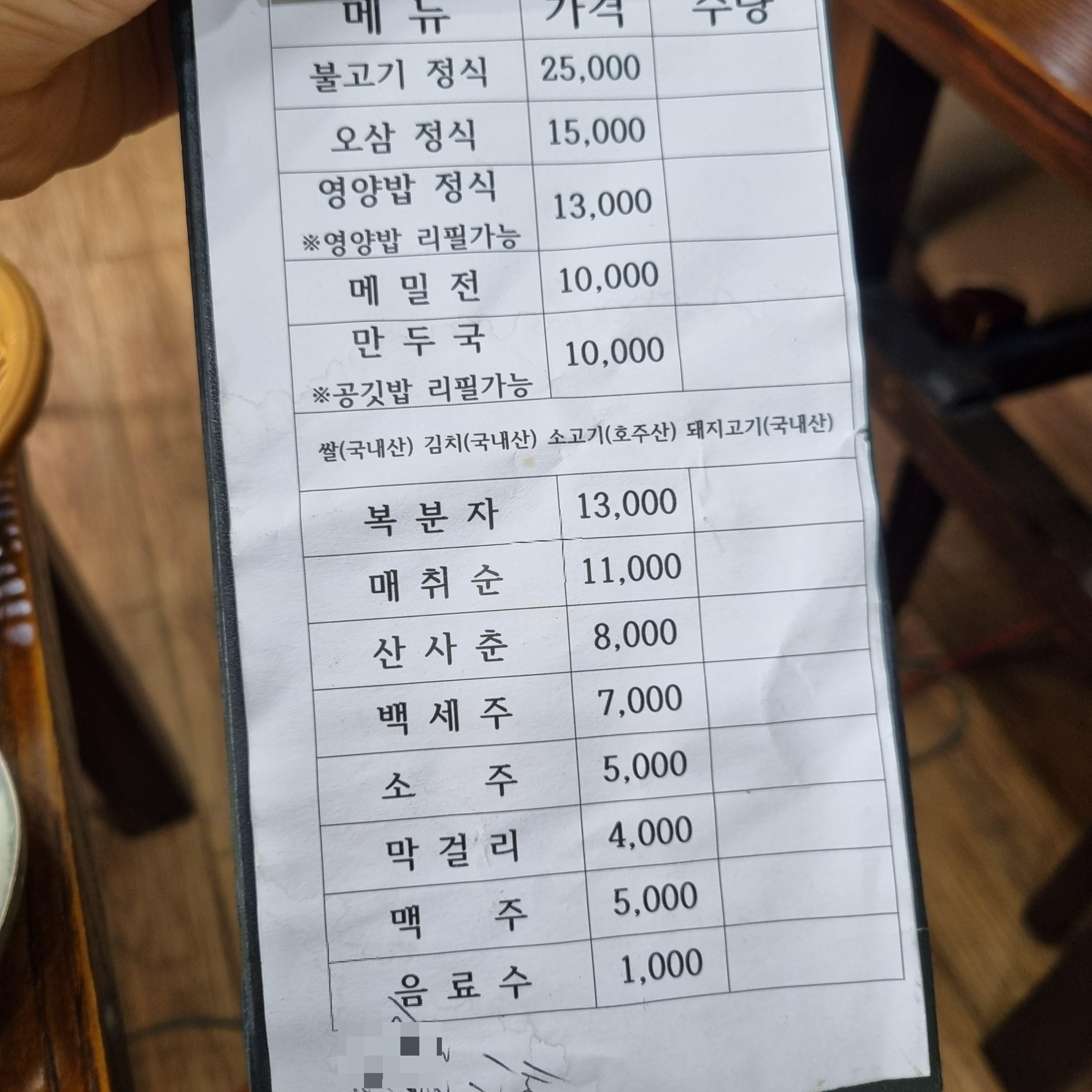 세 명이 방문해서 만둣국 1인분과 메밀전, 그리고 불고기정식 2인분을 주문했습니다. 4인분을 주문한 셈이지요. 정말 배부르게 먹고 남겼답니다.