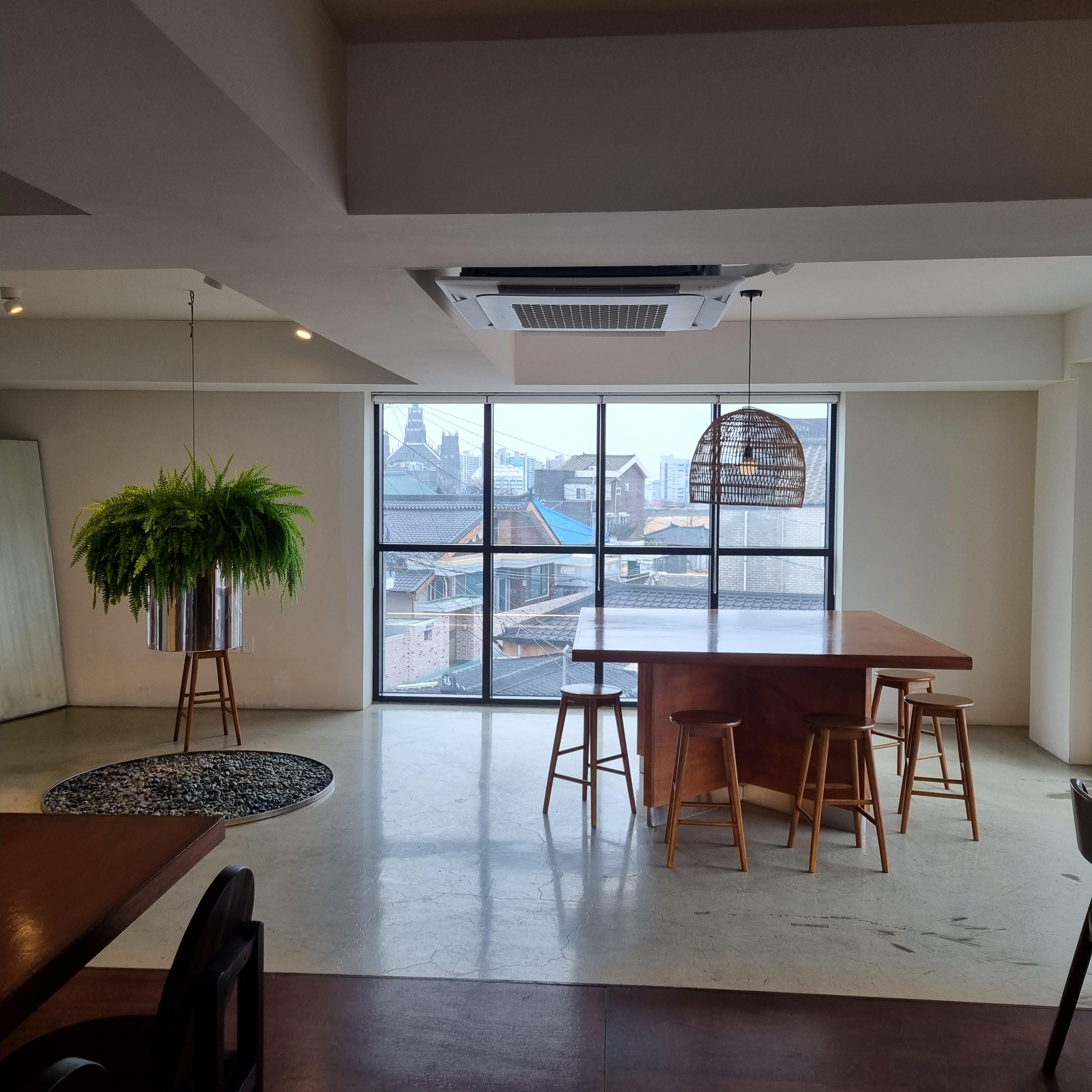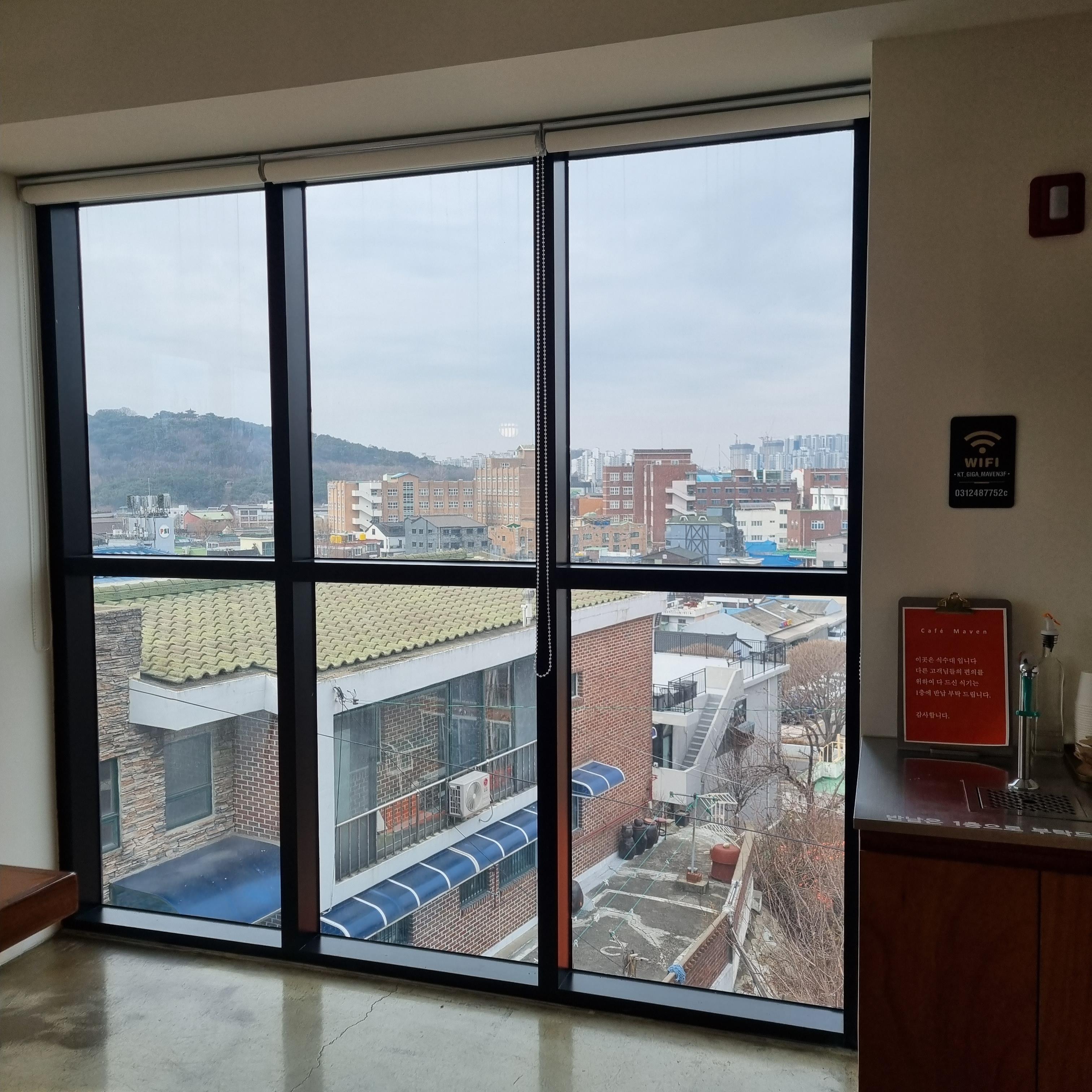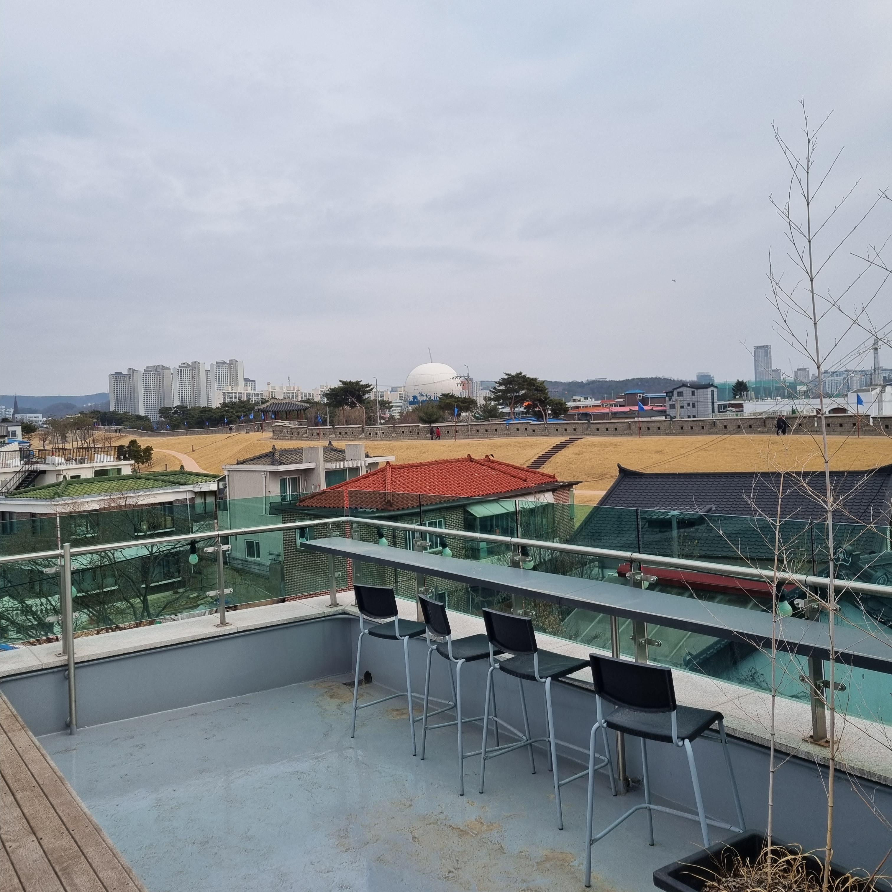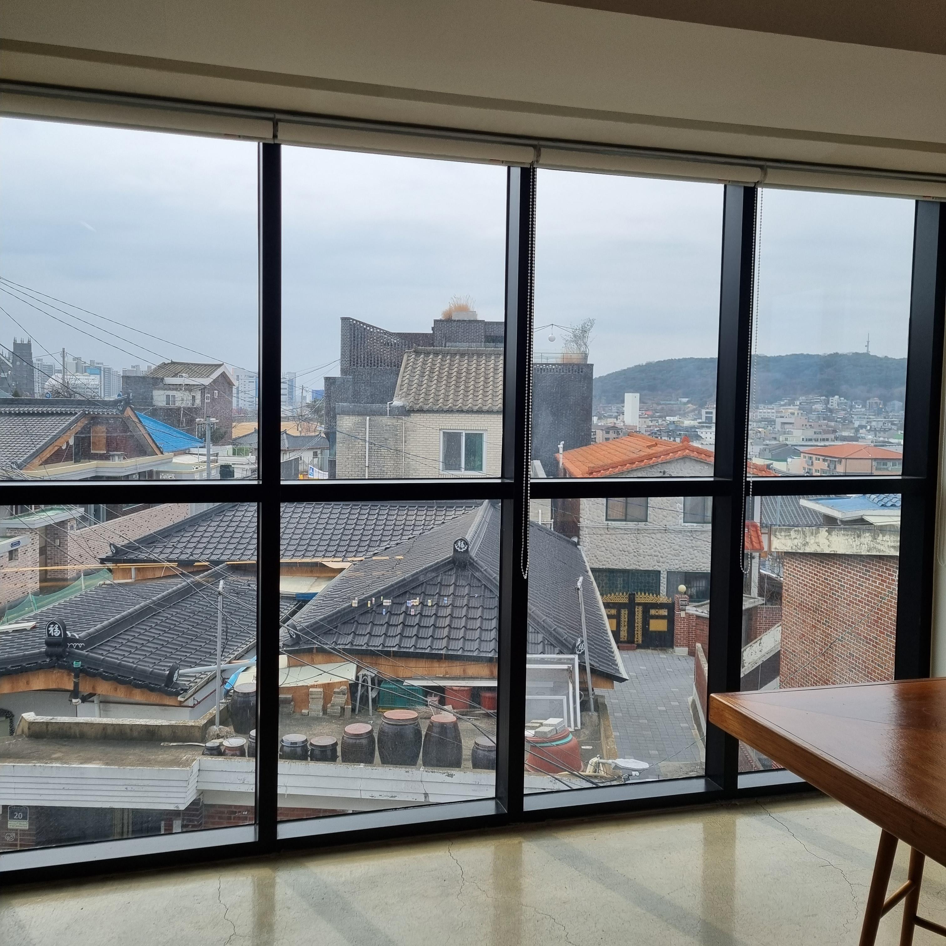 통창뷰 좋지요? 화성행궁 근처라서 그럴까요? 지붕이 기와집형태네요.