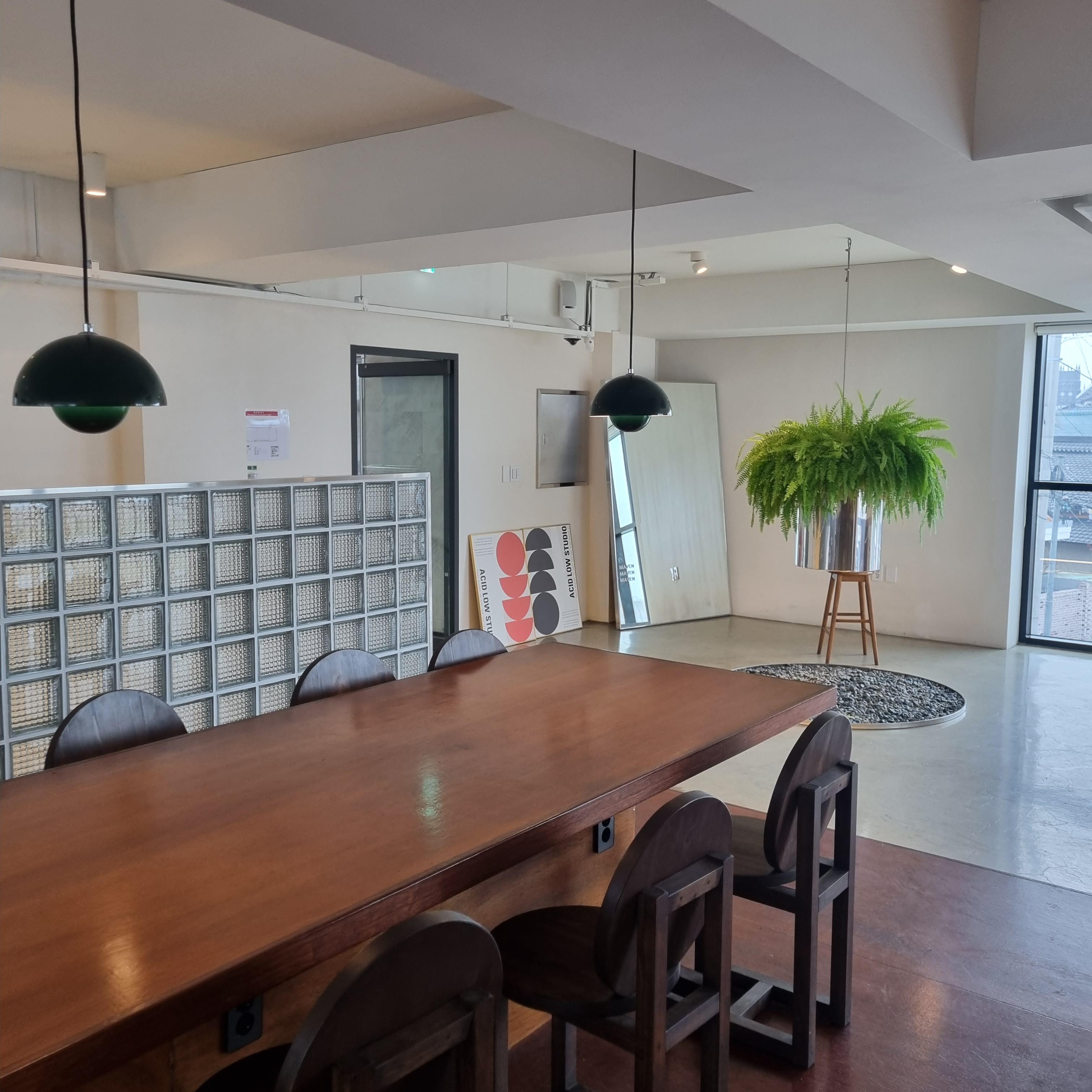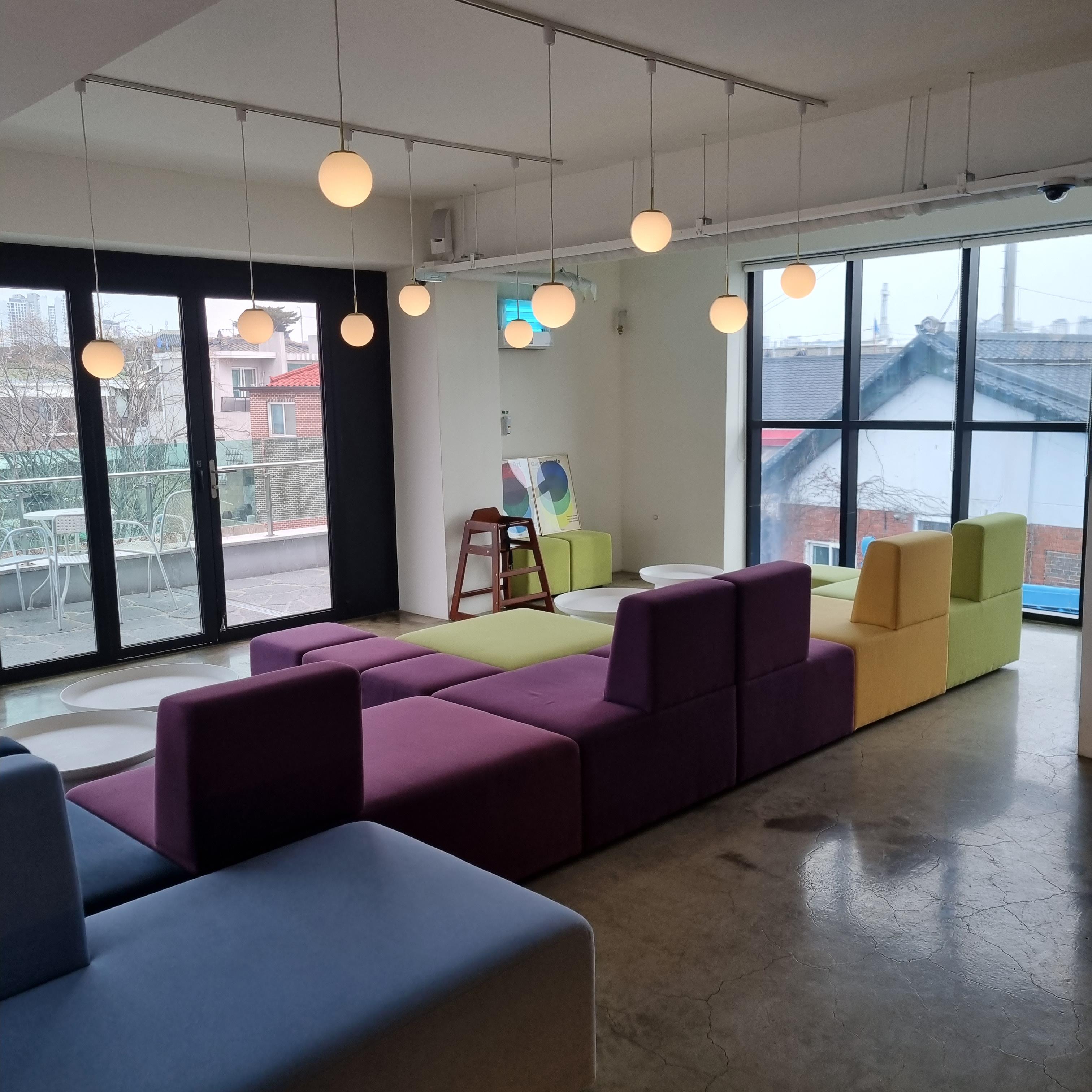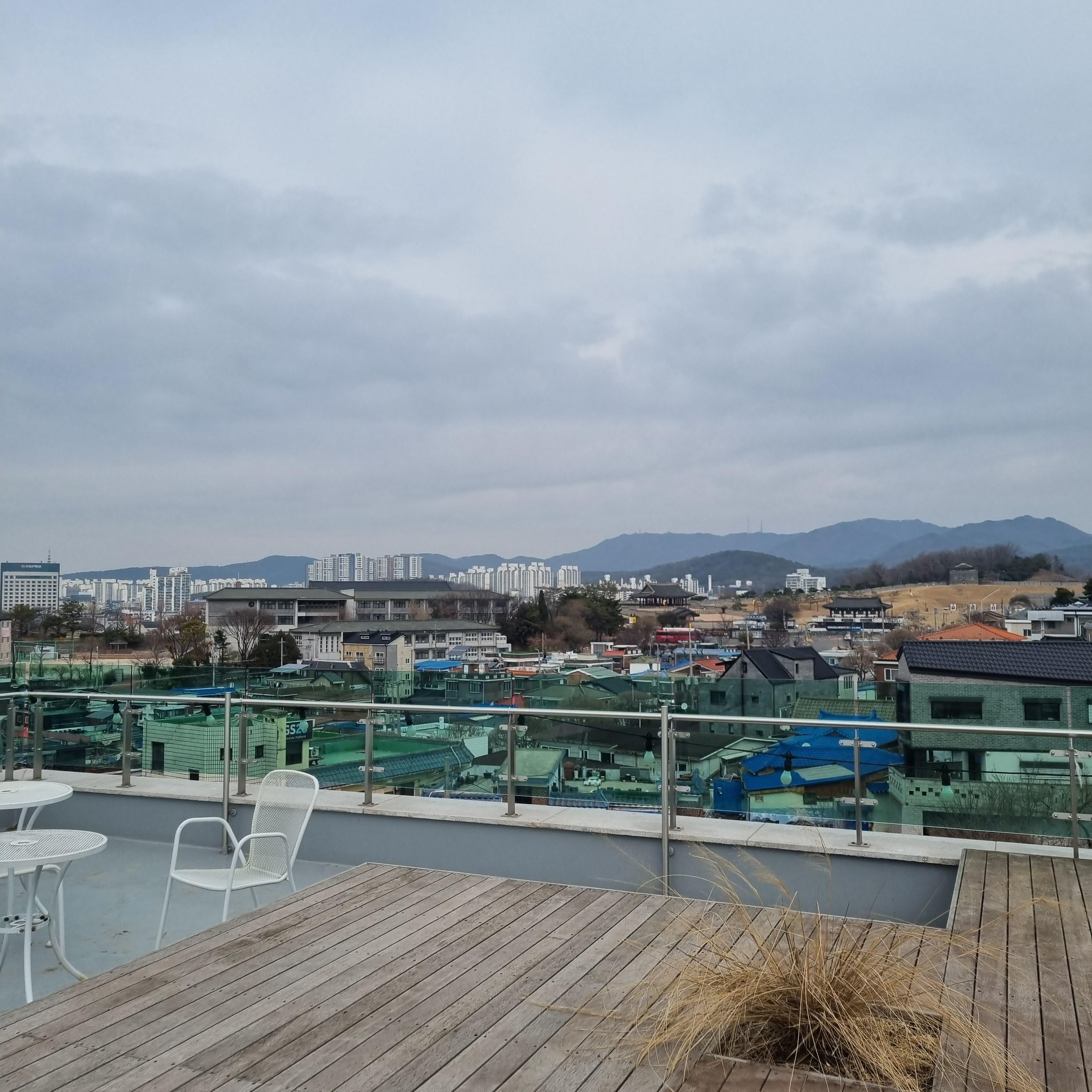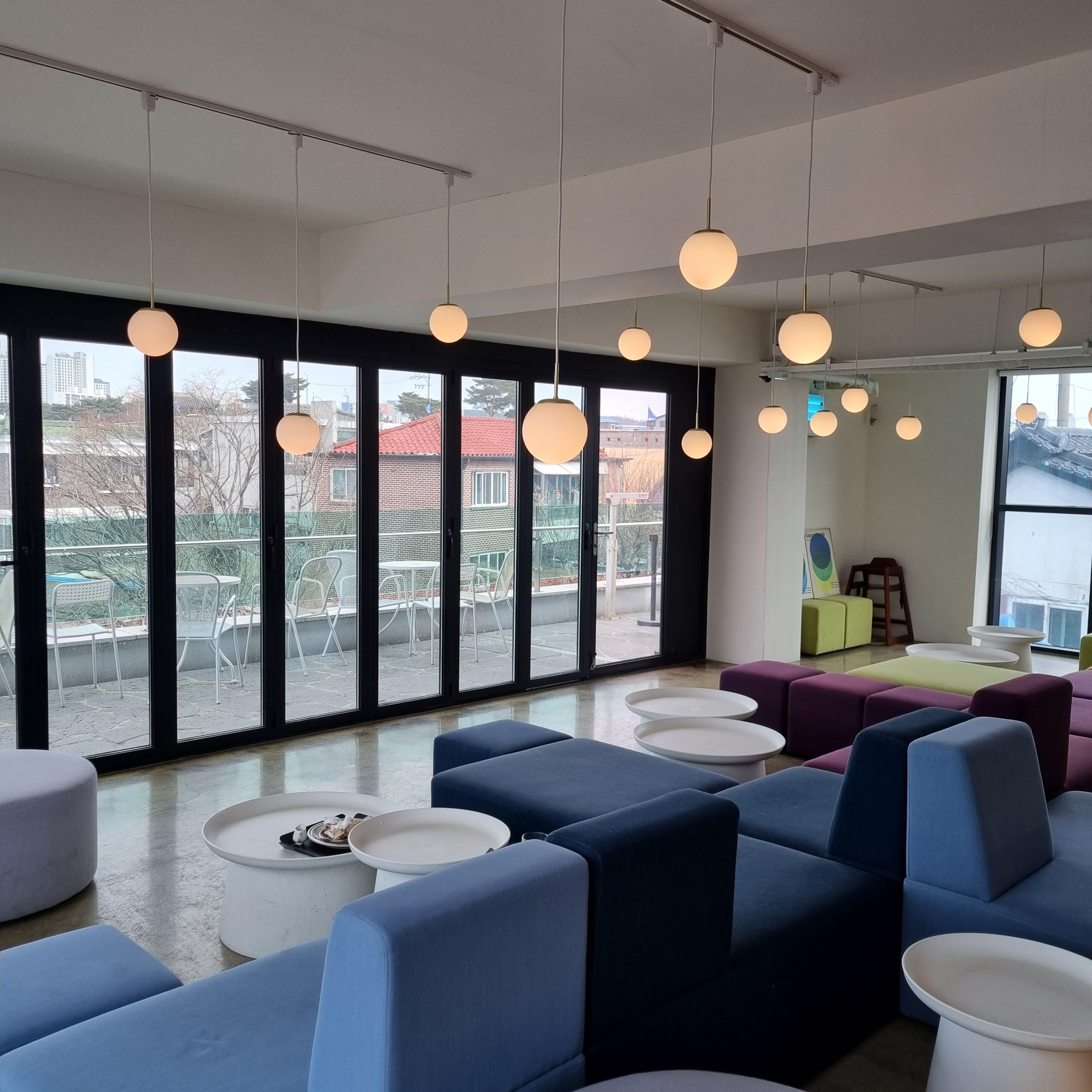 통창뷰 좋지요? 화성행궁 근처라서 그럴까요? 지붕이 기와집형태네요.