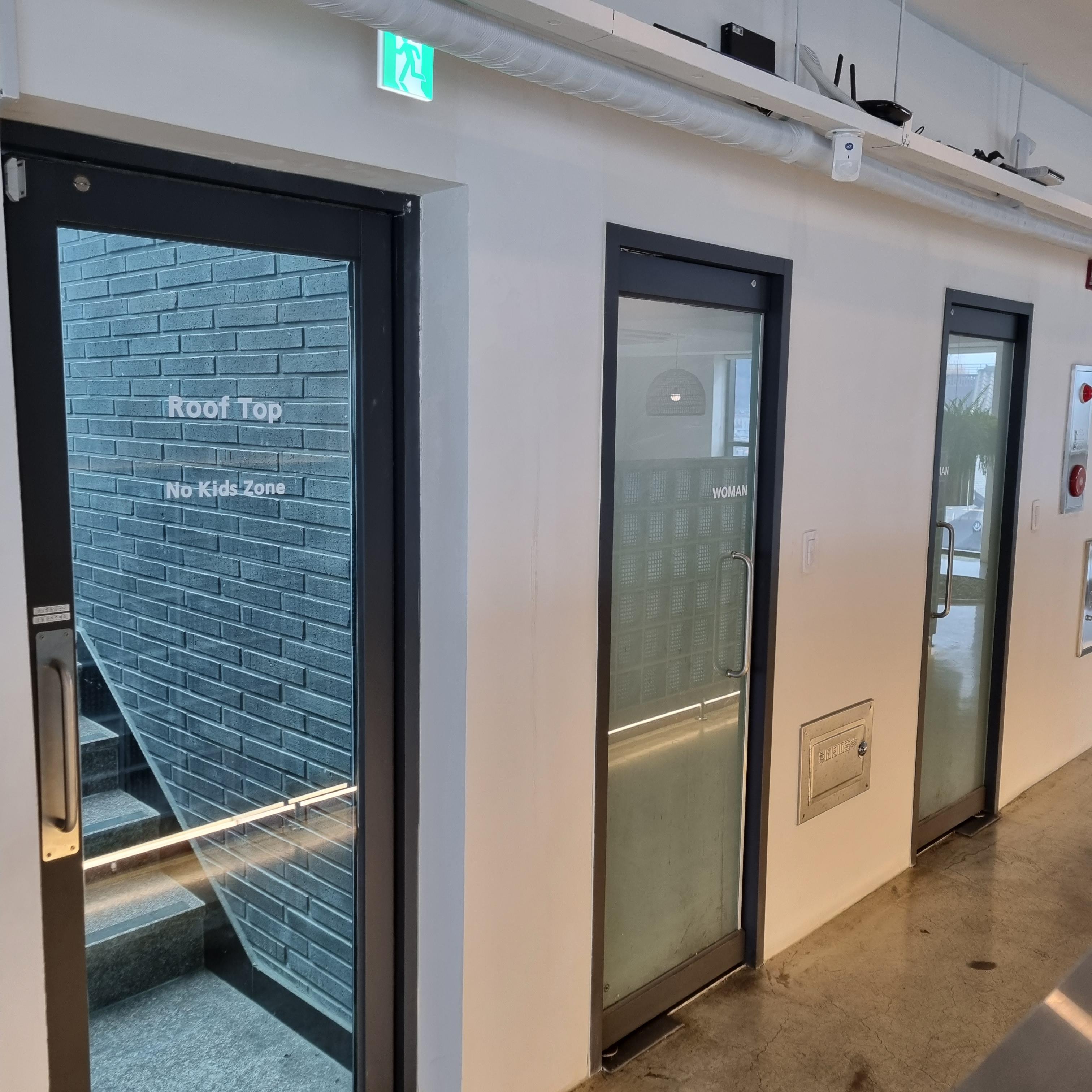 화장실과 4층 루프탑으로 가는 곳은 가림막을 해두었네요. 루프탑으로 가는 계단은 3층 실내에서 연결됩니다. Roof Top은 노키즈 존으로 운영되고 있었습니다.