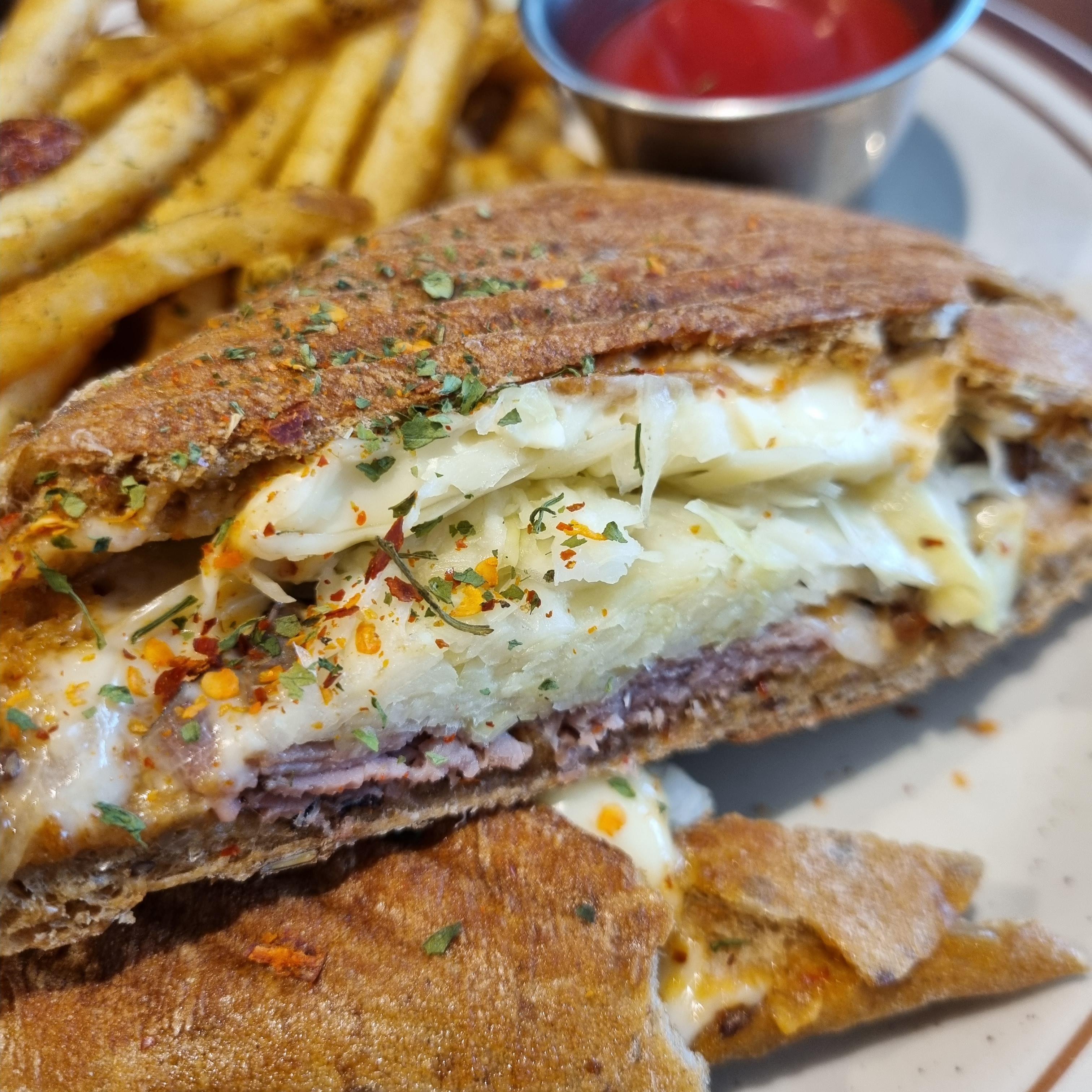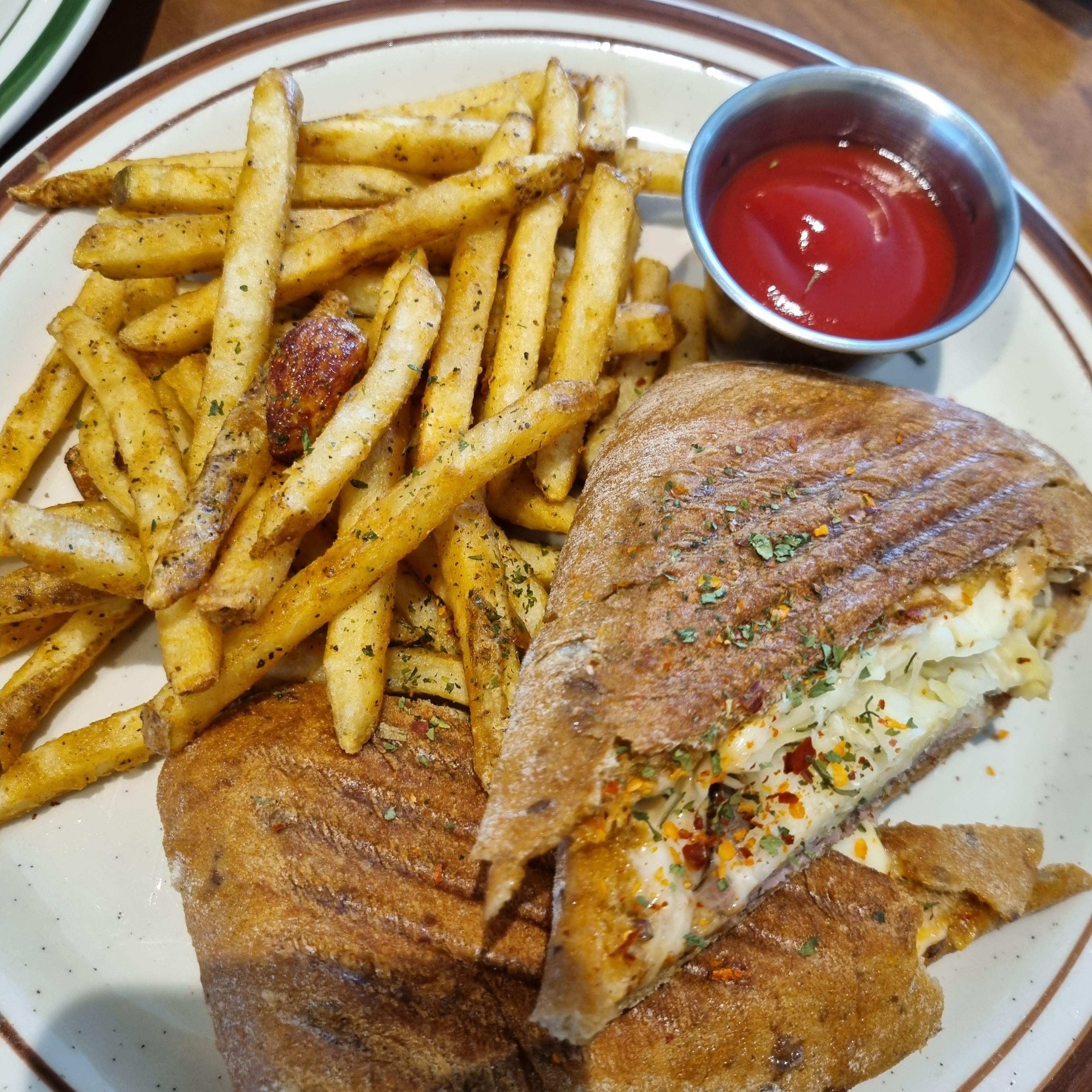 루벤 샌드위치&후렌치 프라이입니다. 감자튀김은 케첩에 찍어먹으면 맛있지요.