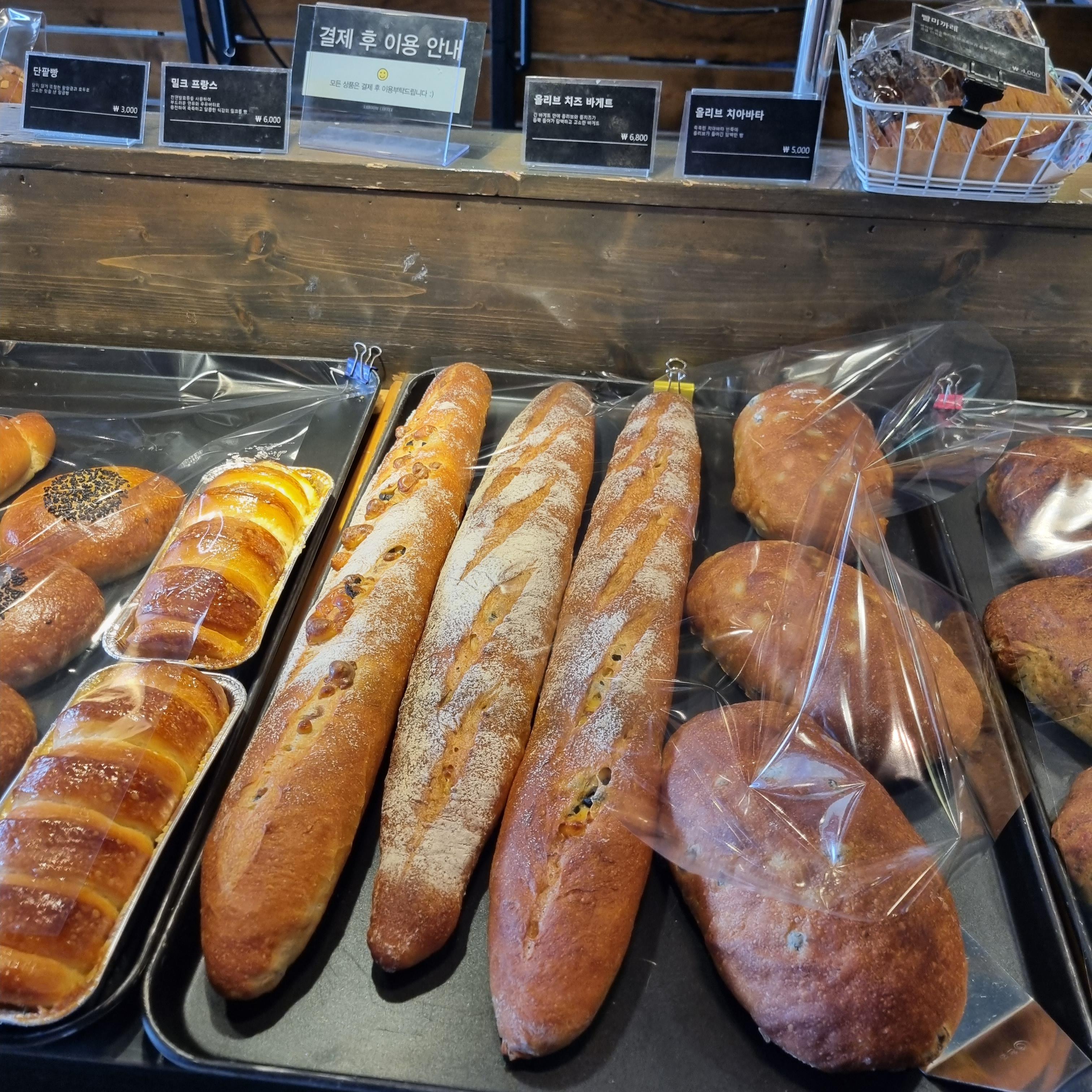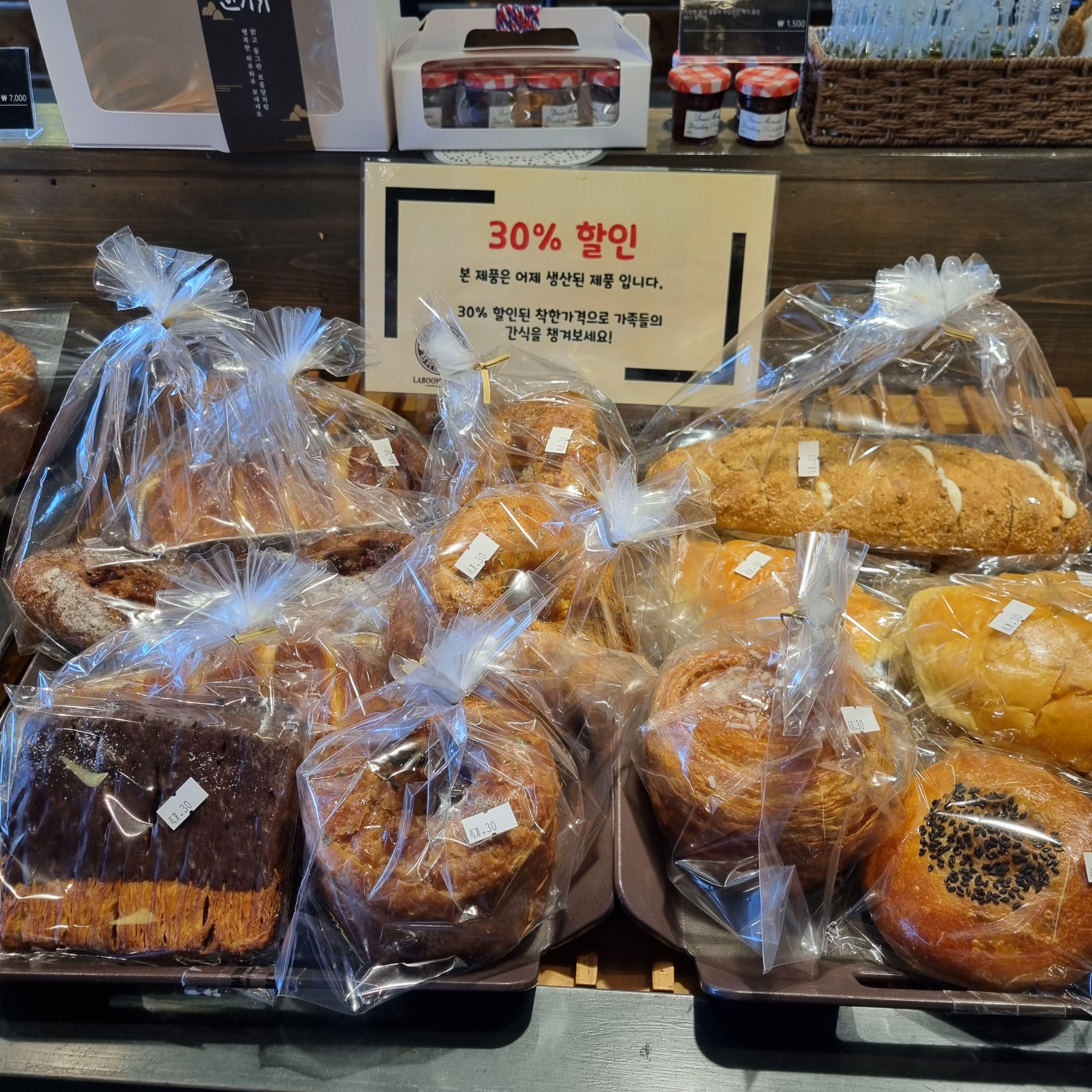 어제 생산된 빵은 30% 할인해주더라고요.