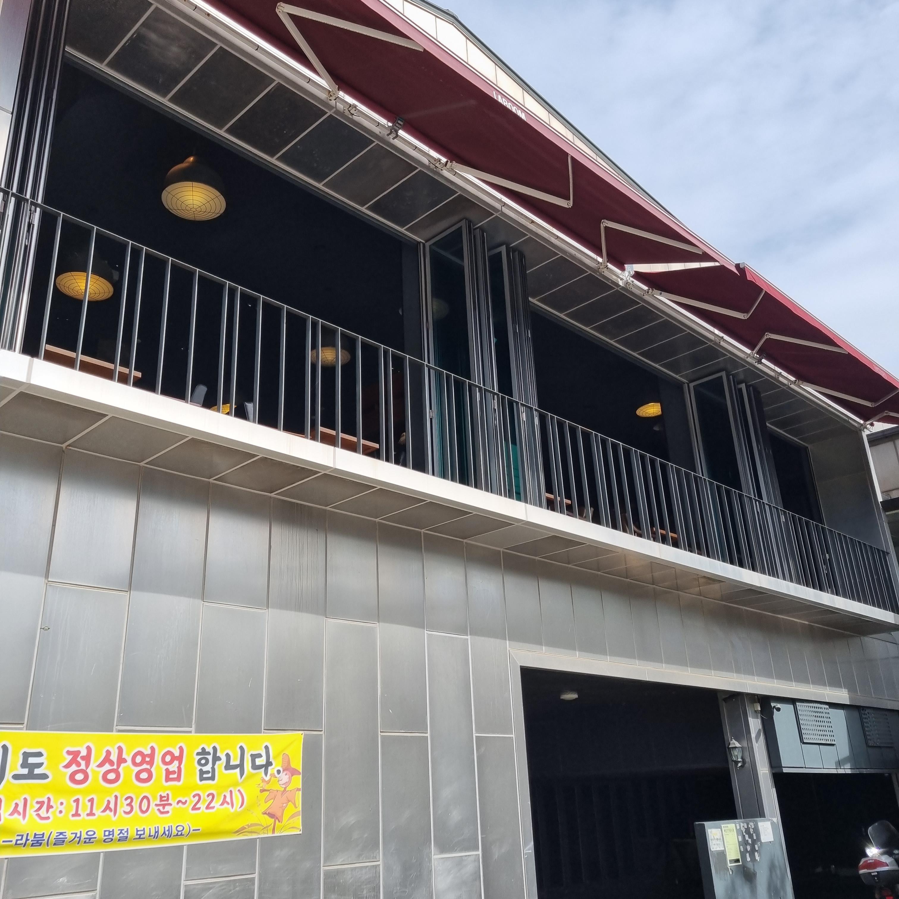 사진에 보이는 계단과 계단 위에 닫힌 문이 카페입구랍니다.