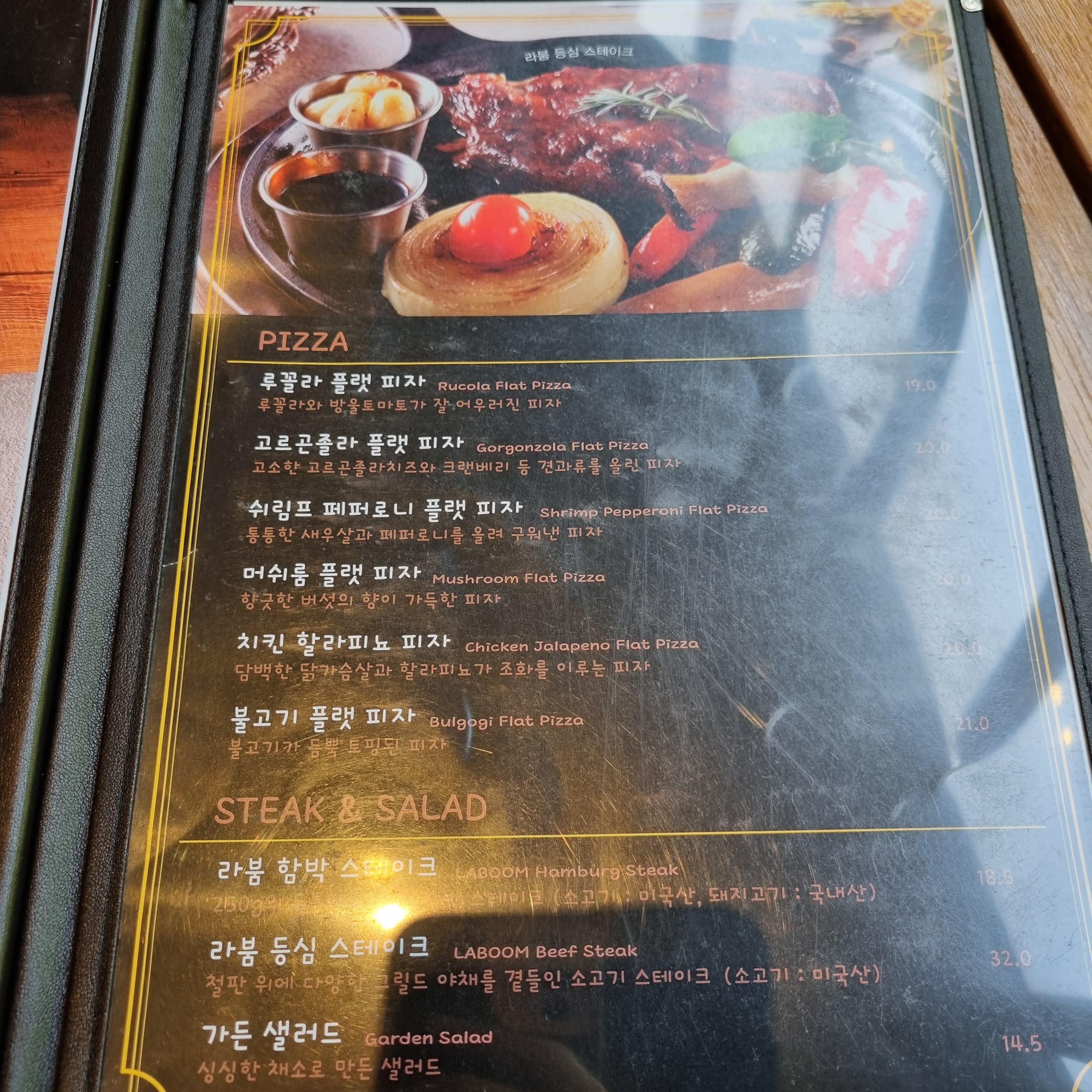 라붐 함박 스테이크, 등심 스테이크, 가든 샐러드도 먹을 수 있어요.