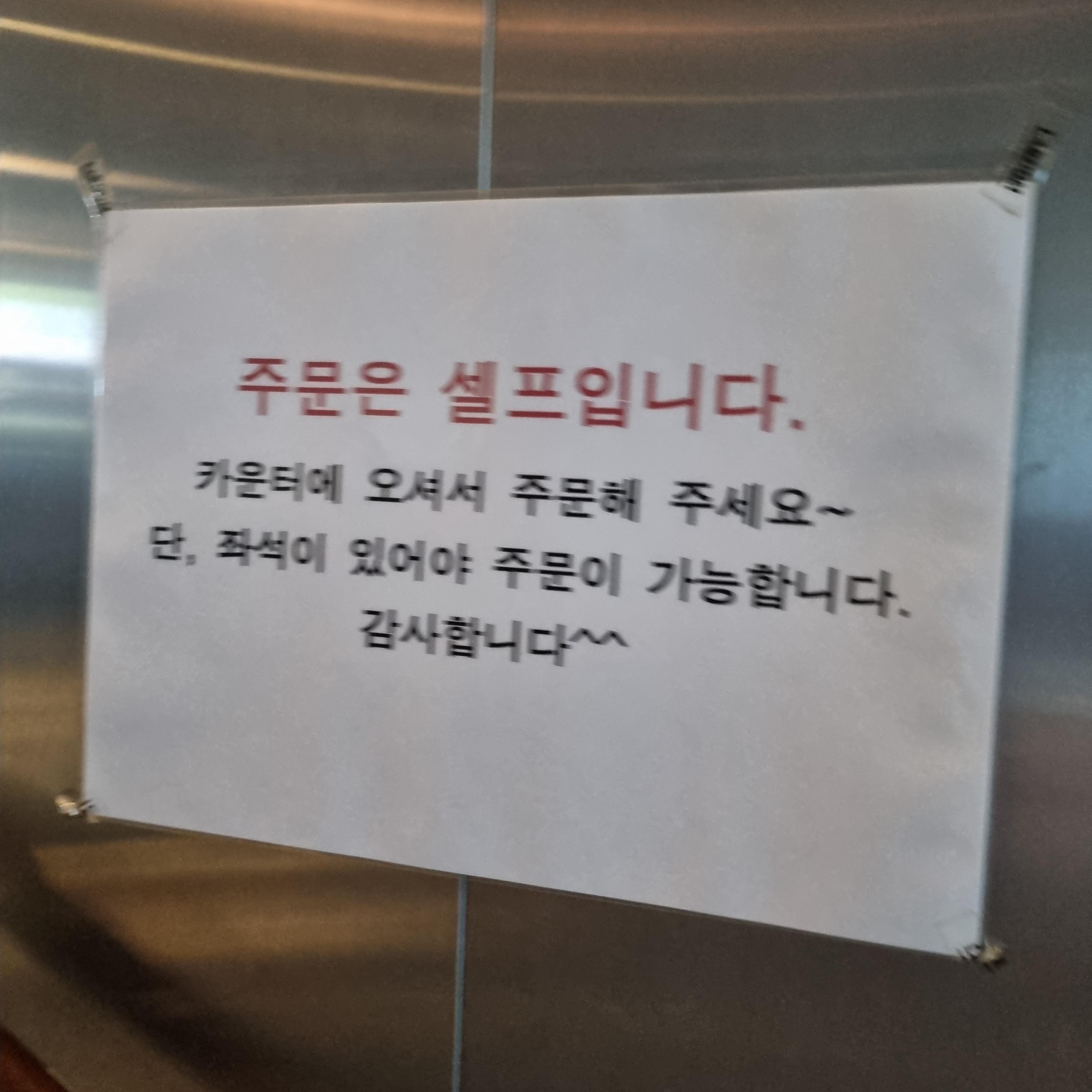 주문은 셀프이고 카운터에서 주문하면 선결제합니다. 좌석이 있을 때 주문이 가능하다고 기재되어 있네요.