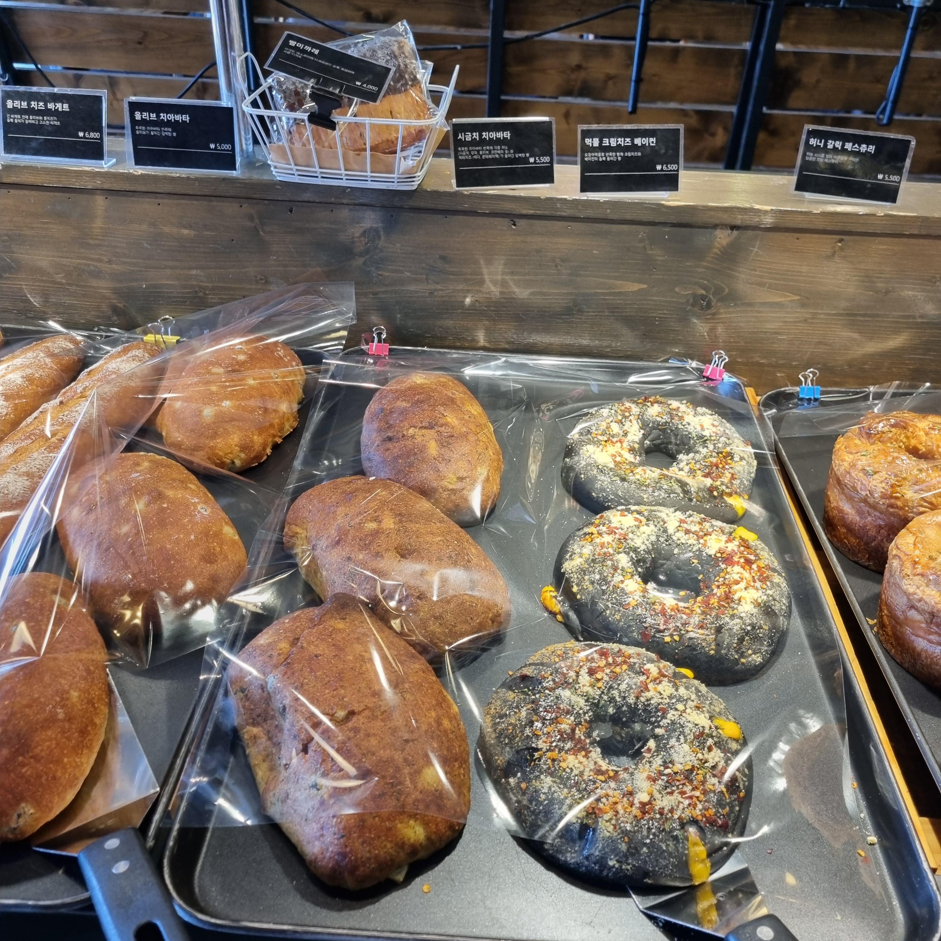 올리브 치아바타, 시금치 치아바타, 먹물 크림치즈 베이컨
