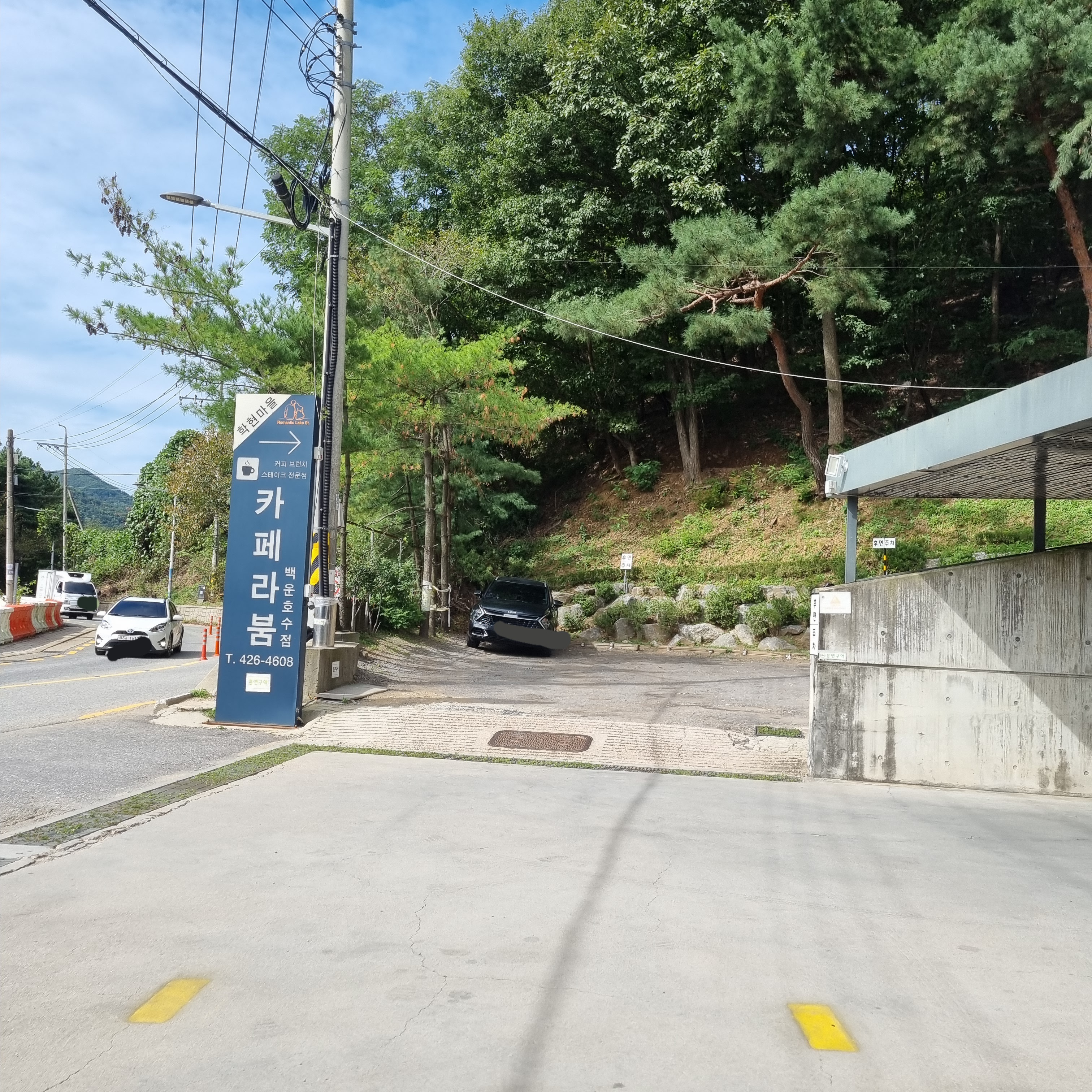 밖에서 보니 2층이 카페이고, 1층에 주차를 하더군요.