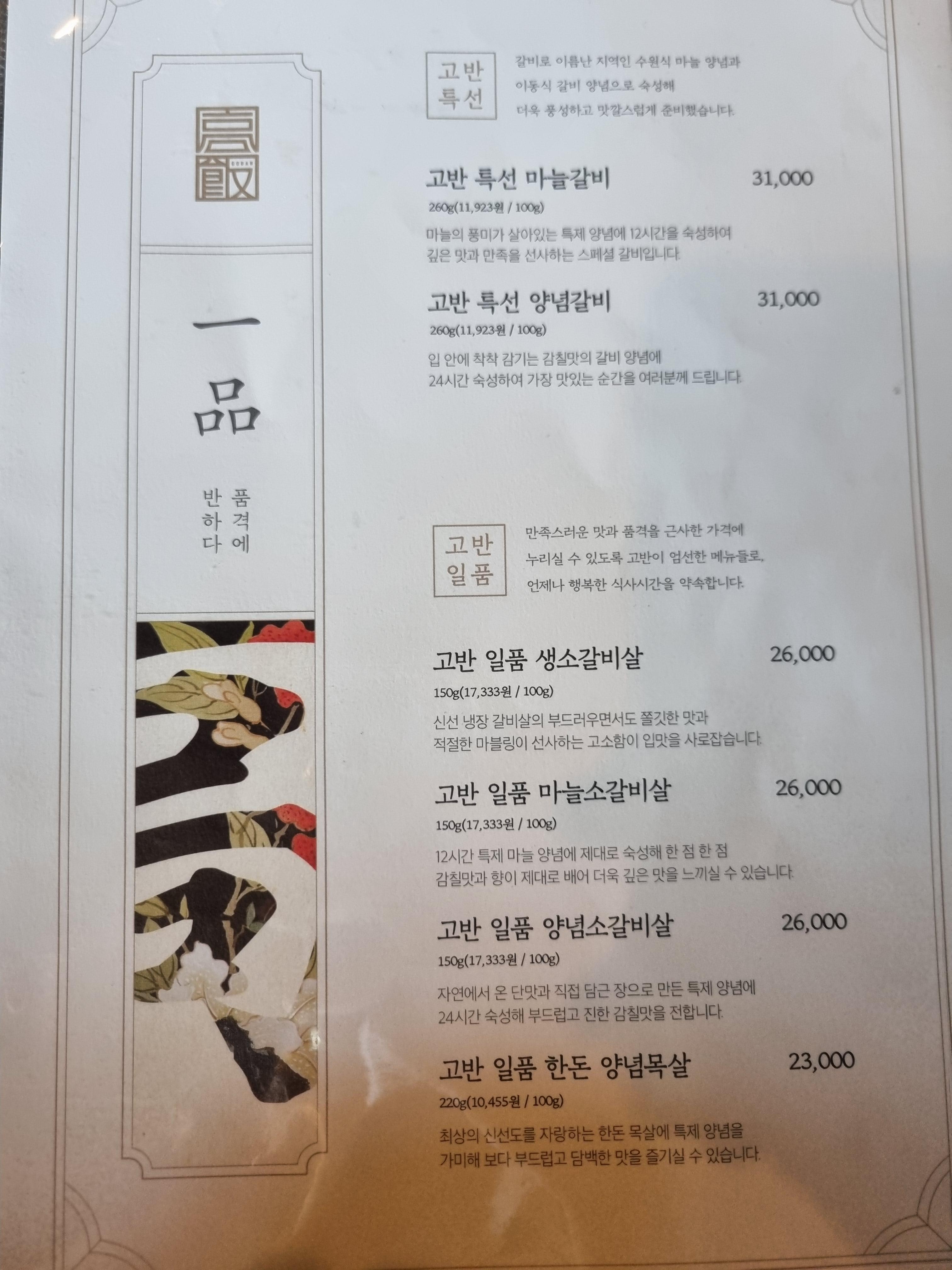 낮에도 숯불향과 고기향이 괜찮다면 고반가든 서수원점 점심 어떠세요? 구운동 고반가든 점심정식이 괜찮더라고요. 가격이 비싼 수원 소고기 맛집 가보정보다 부담이 적어 고반가든을 서수원 소고기 맛집으로 봐도 될 것 같아요. 식당이 전반적으로 정갈해서 더 좋았지요. 지인 따라갔는데 맛있게 먹다 보니 사진이 부실할 수 있지만 기록 남겨봅니다.