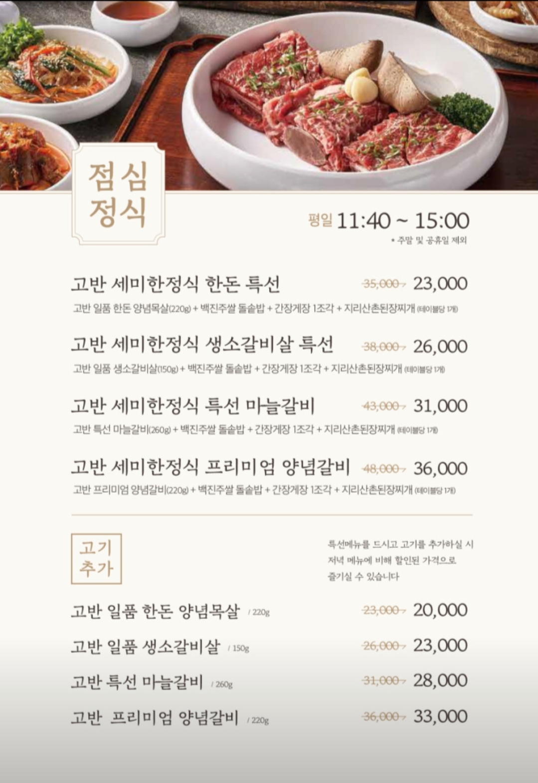 점심정식은 평일 11시 40분 ~ 15시에만 주문 가능!