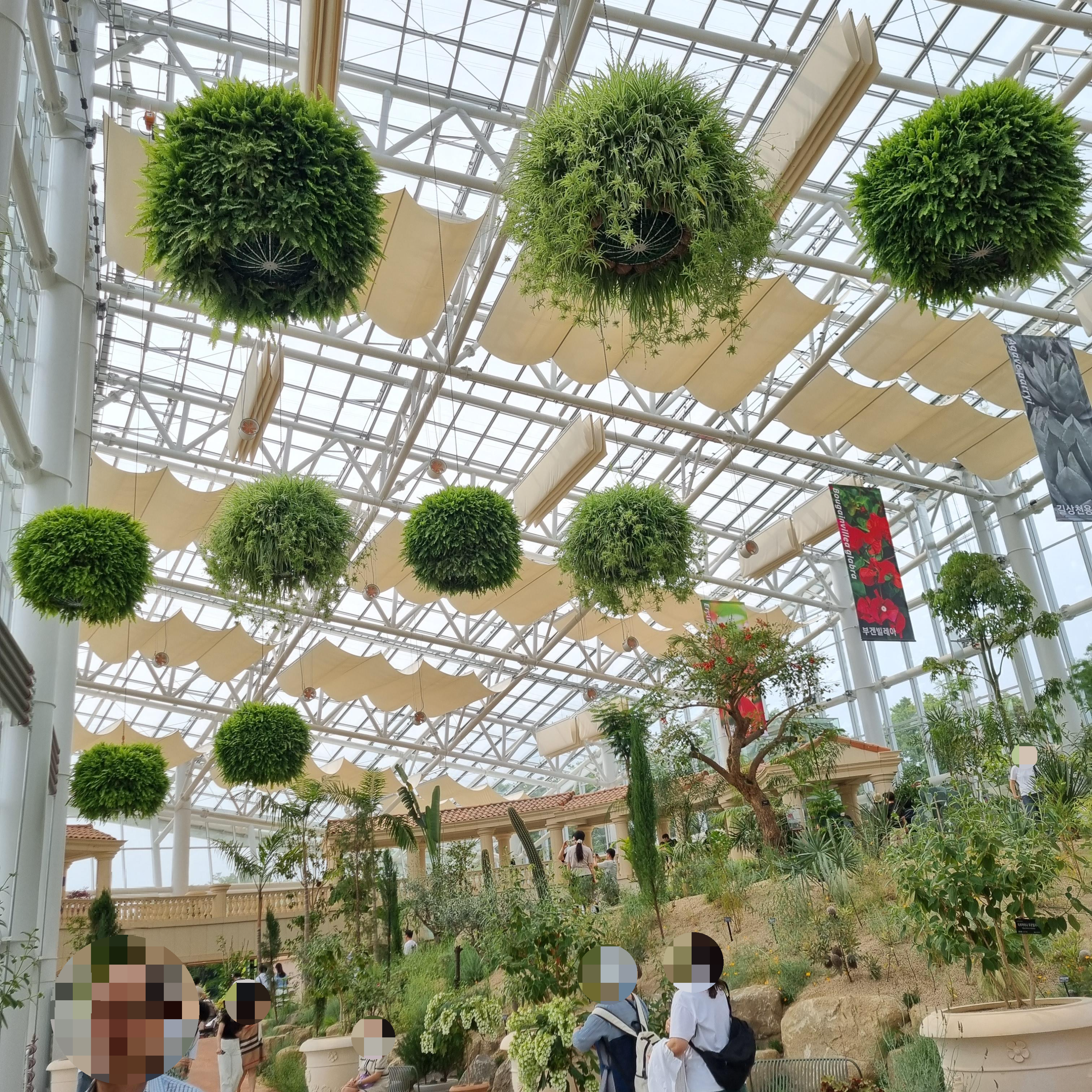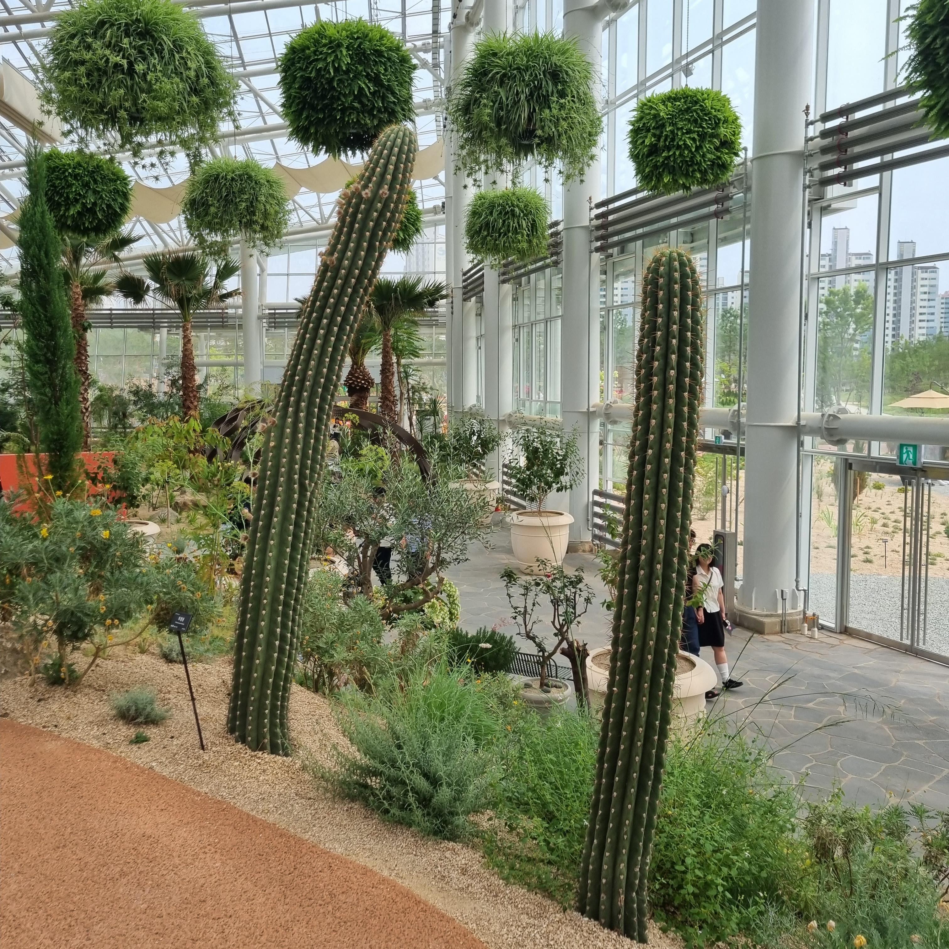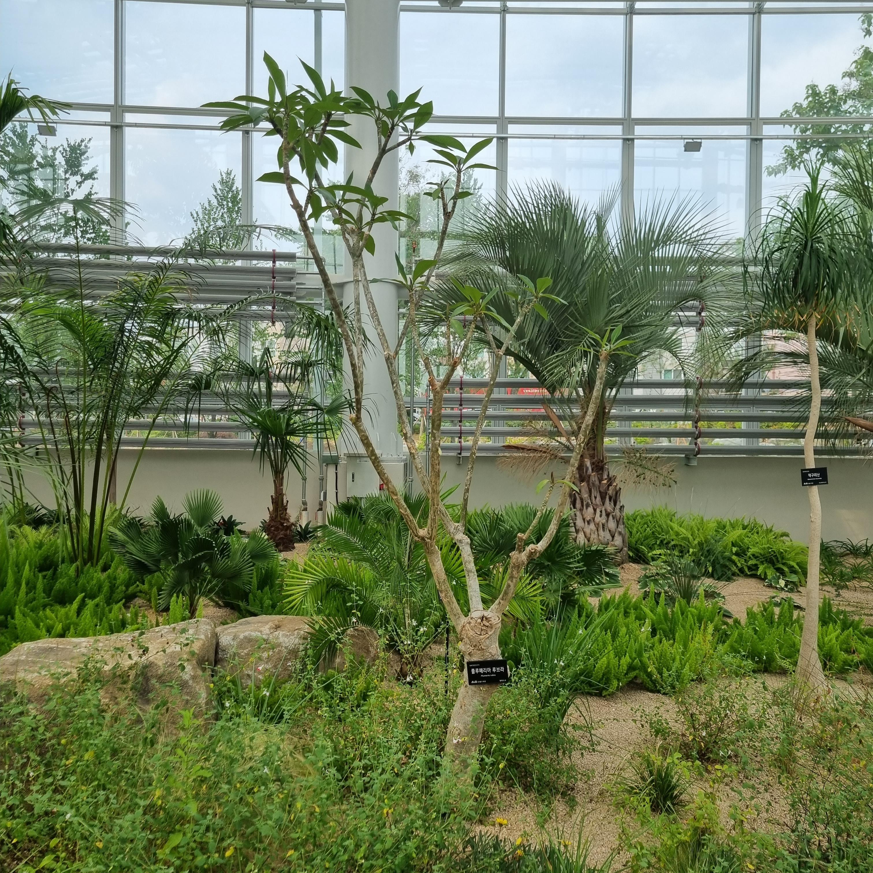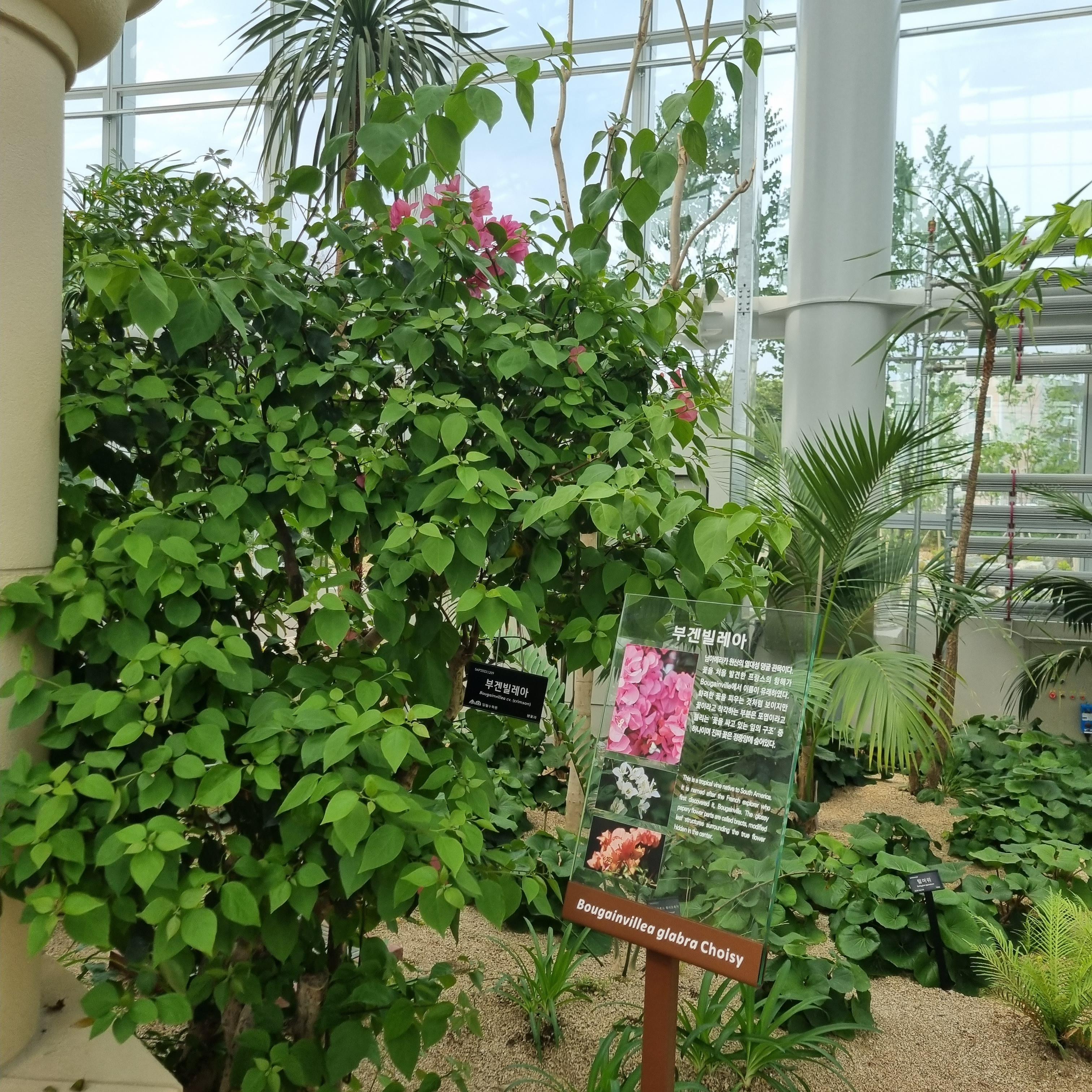 일월수목원을 찾아가다가 큰길에서 수목원을 바라보면 유리온실이 보입니다. 정말 궁금했던 곳이라 들어가 보았습니다. 정식 명칭은 전시온실이랍니다. 수목원에 방문한 날은 날씨가 맑고 햇볕이 뜨거워 땀을 흘리며 구경을 했습니다. 온실은 쾌적할 것이라는 기대로 입장했지만 온실이라는 이름처럼 시원하지는 않고 식물이 자라기 좋은 온도였습니다. 실외 땡볕보다는 나았지만요.