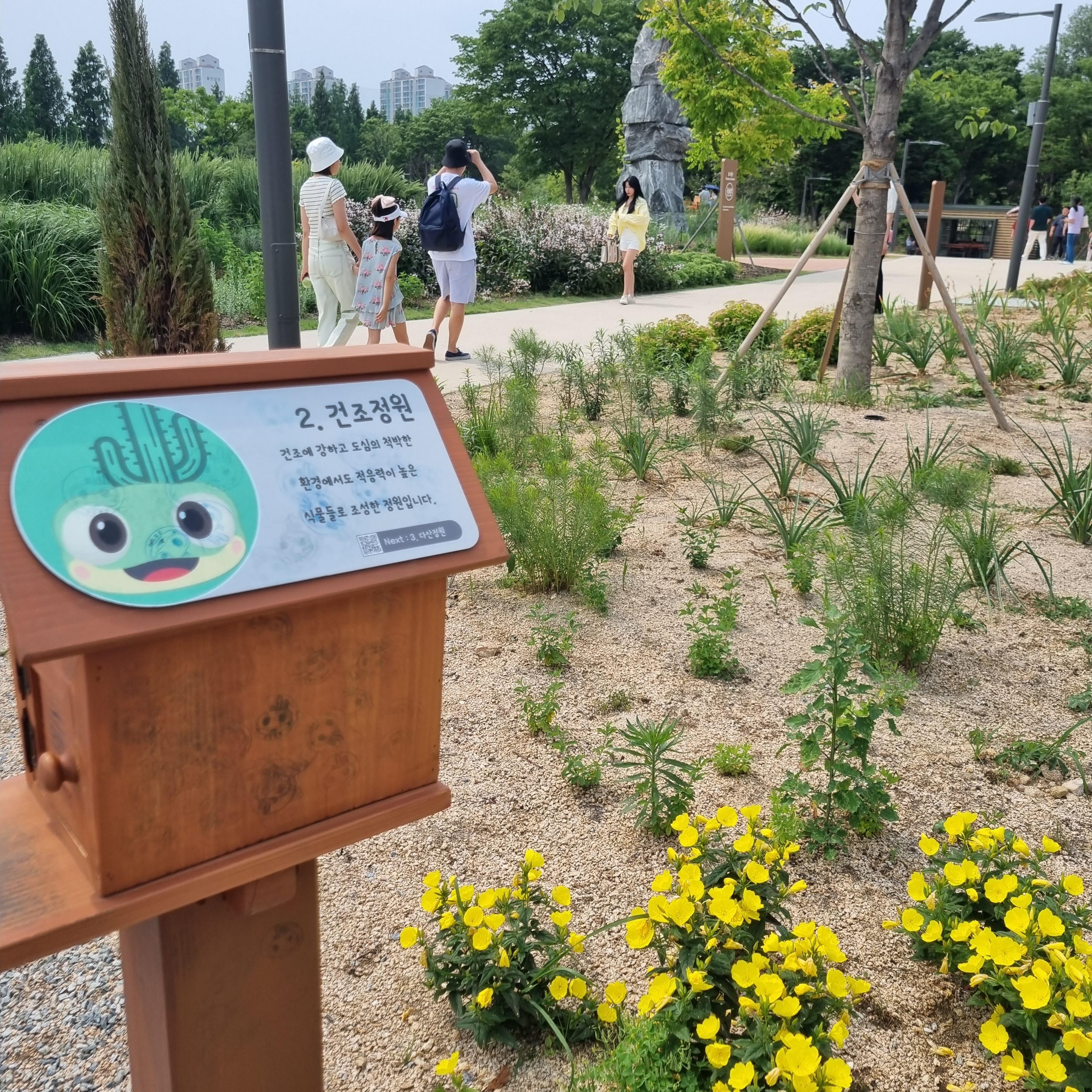 물가에도 가보고 싶었지만 문이 닫혀있어서 가볼 수가 없었습니다. 그 부분이 아쉬웠지만 오리가 헤엄치고 일렬로 걸어가는 모습도 보고 낯설거나 신기한 식물을 보며 산책할 수 있었습니다. 돌 모양으로 생긴 스피커에서는 노래가 흘러나와 식물원 구경하기 즐거웠답니다. 너른 잔디에서는 뙤약볕이지만 아이들이 뛰어다니며 마음껏 놀 수 있어서 좋았습니다. 날만 좀 선선하고 햇볕만 내리쬐지 않는다면 또 방문하고 싶습니다.