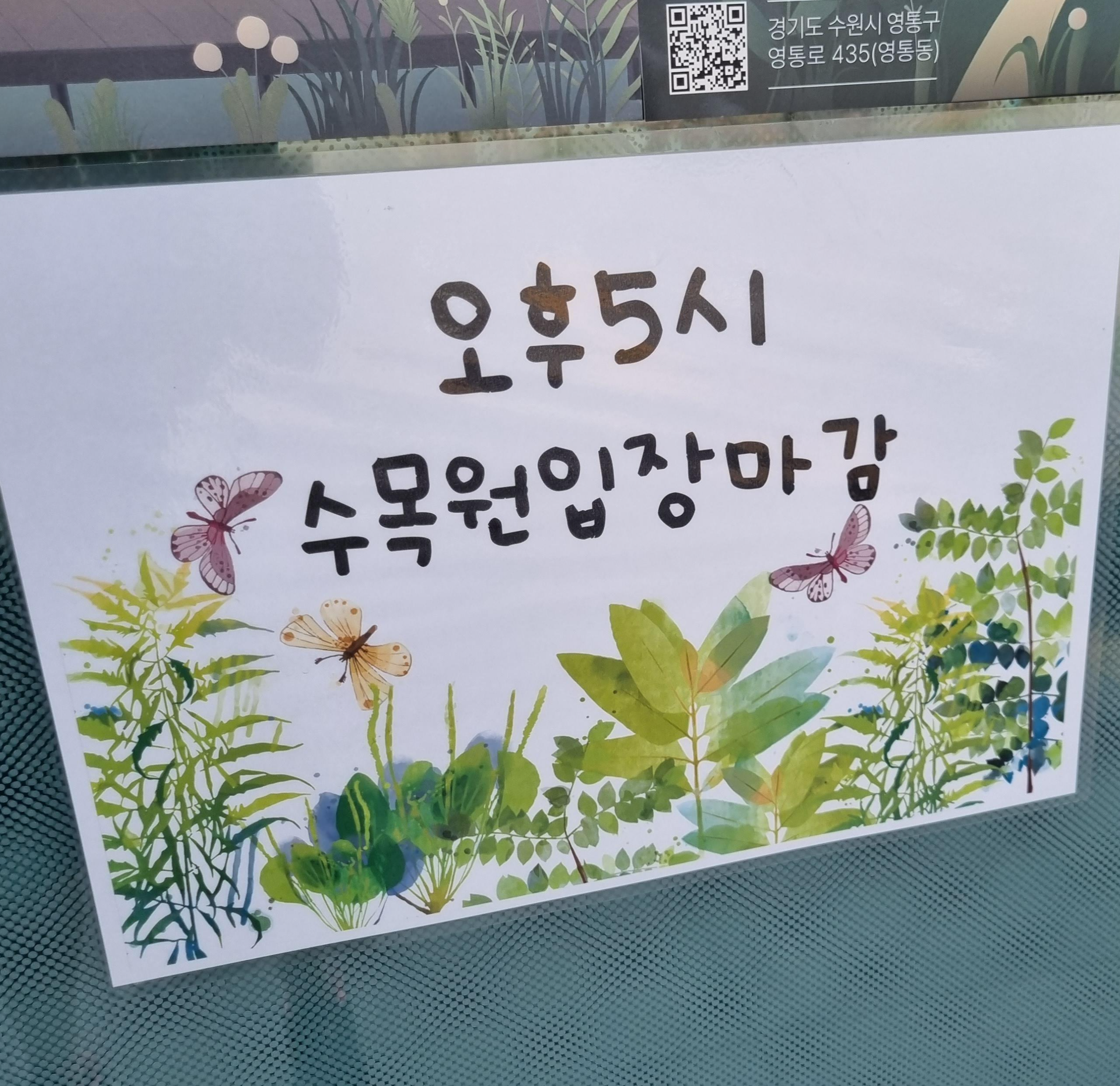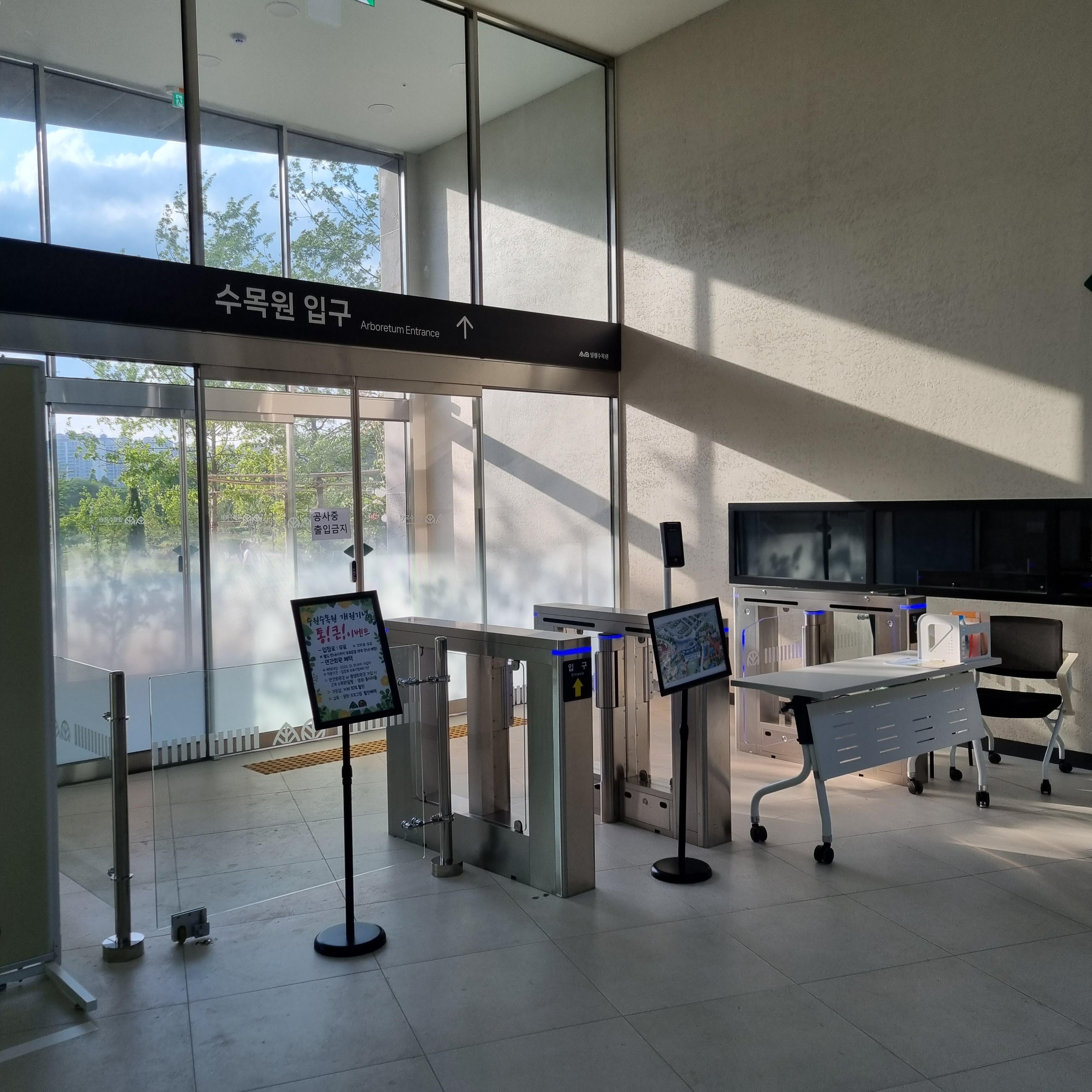 수목원은 방문자센터 1층을 통해 입장하게 되는데, 출구와 입구가 다릅니다. 수목원에 입장할 때, 방문자센터 1층에 위치한 카페 데이지원에서 산 음료는 제지를 당하지 않았지만 음식물을 들고 들어가지 못하는 것 같습니다. 그리고 수목원 안에 있는 온실에 입장할 때는 음료수도 반입이 금지됩니다.