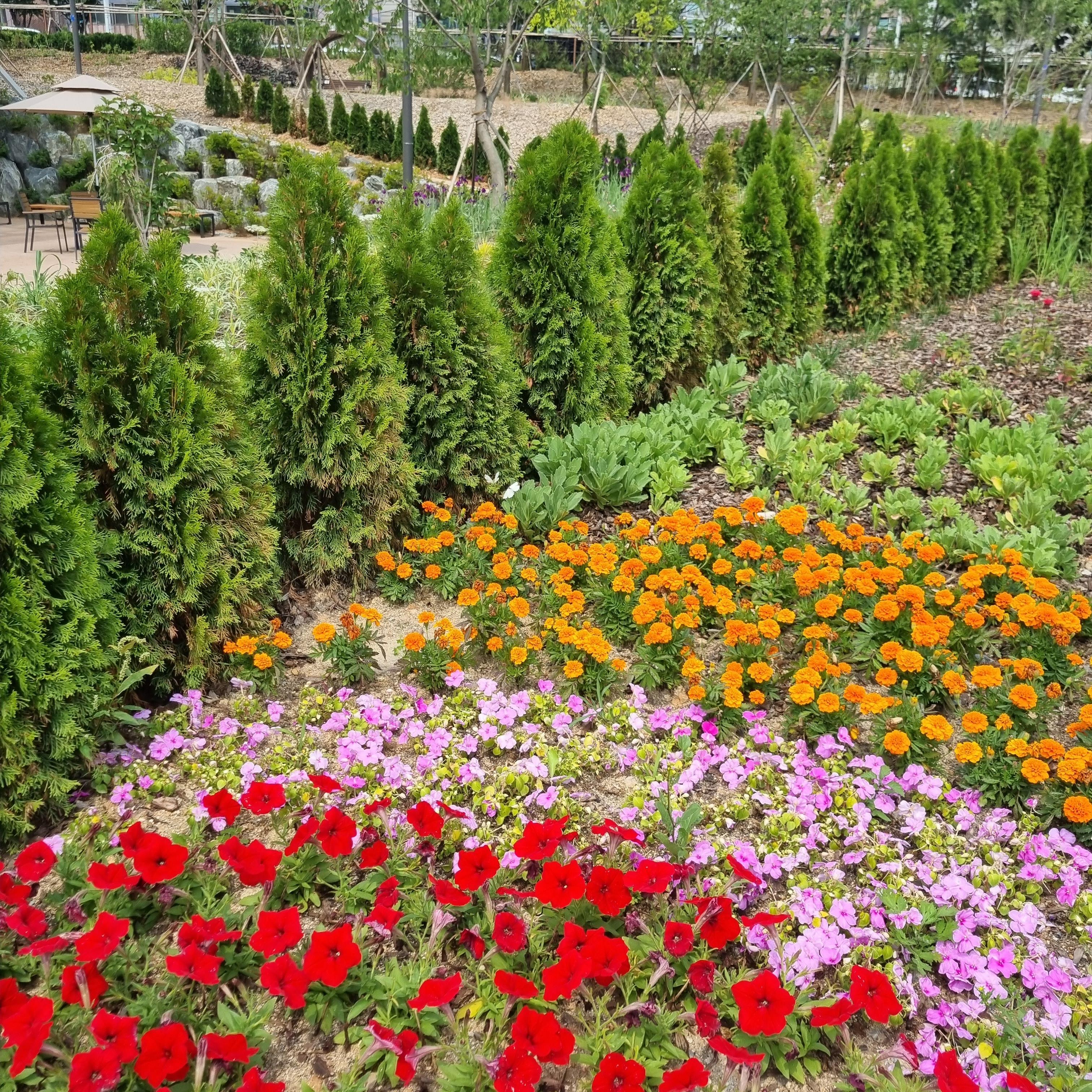 전시온실로 가는 장식정원입니다. 알록달록 꽃이 피어 있으니 곳곳에서 사진 찍을 수 있습니다.