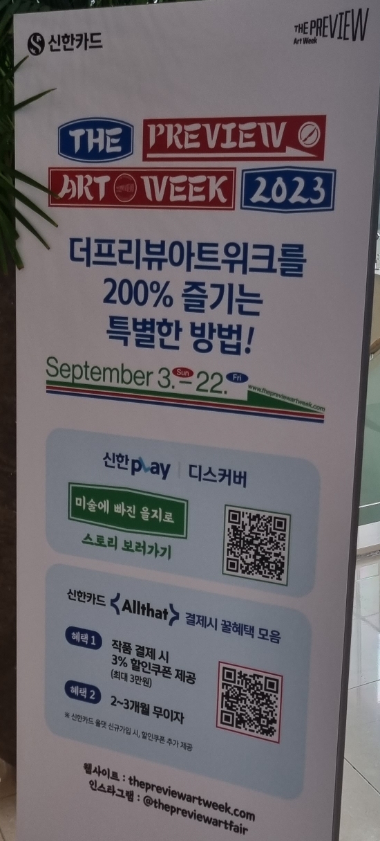 서울 가볼만한곳 2023 더프리뷰 아트위크 파인애비뉴 신한카드 로비 무료 전시회