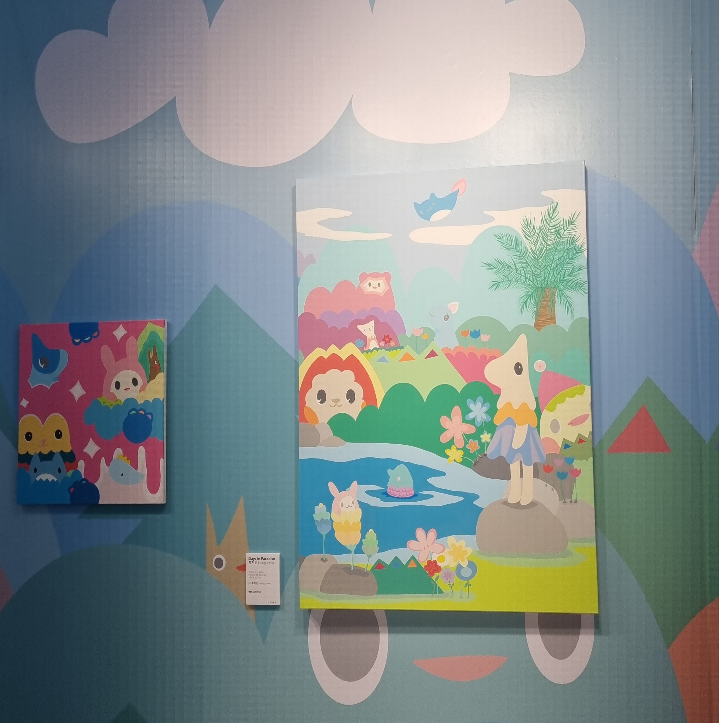 로비에서 전시회가 열리는데 입장료는 무료이고 작품 판매시간은 11시부터 19시입니다.