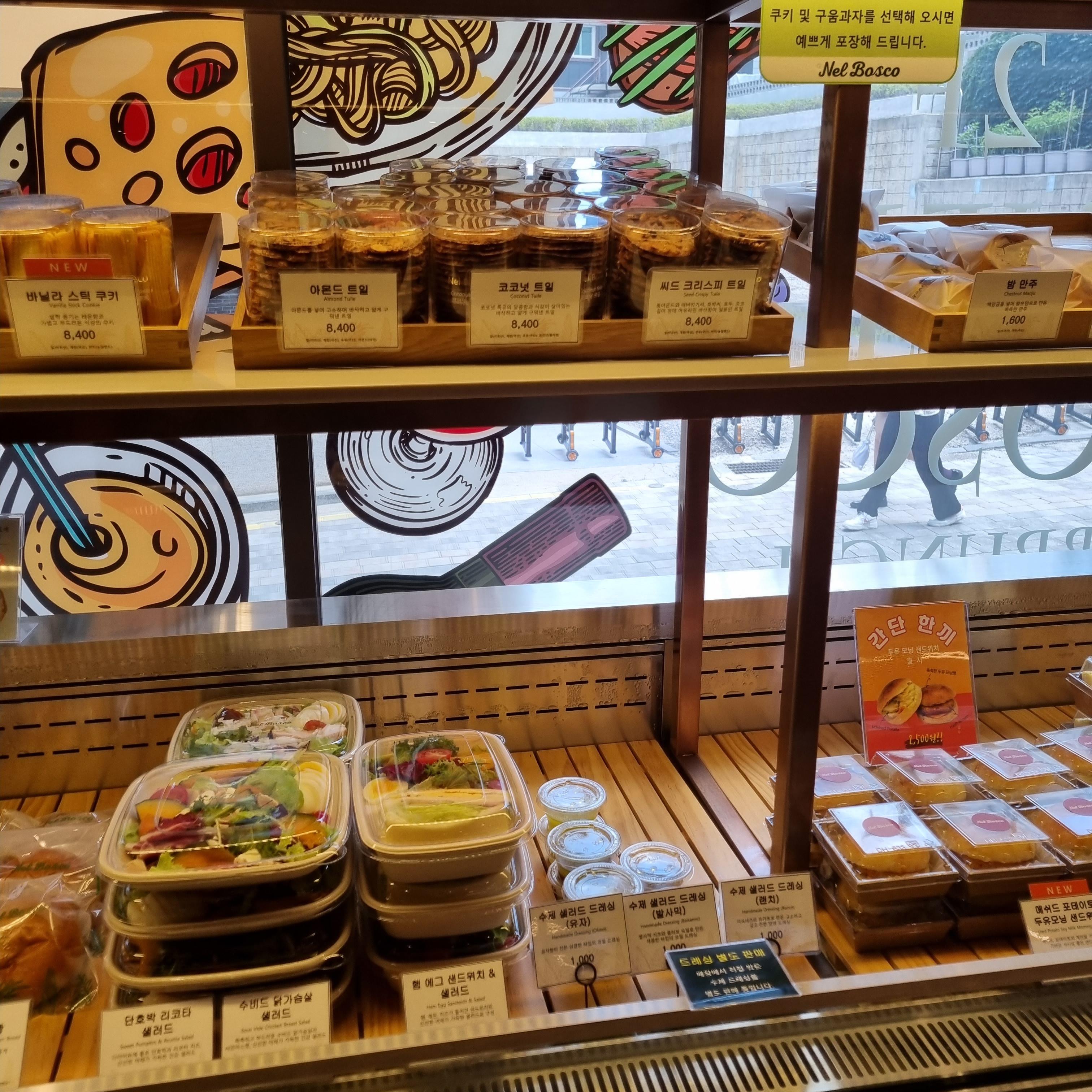 쿠키, 샐러드, 샌드위치를 판매하네요.