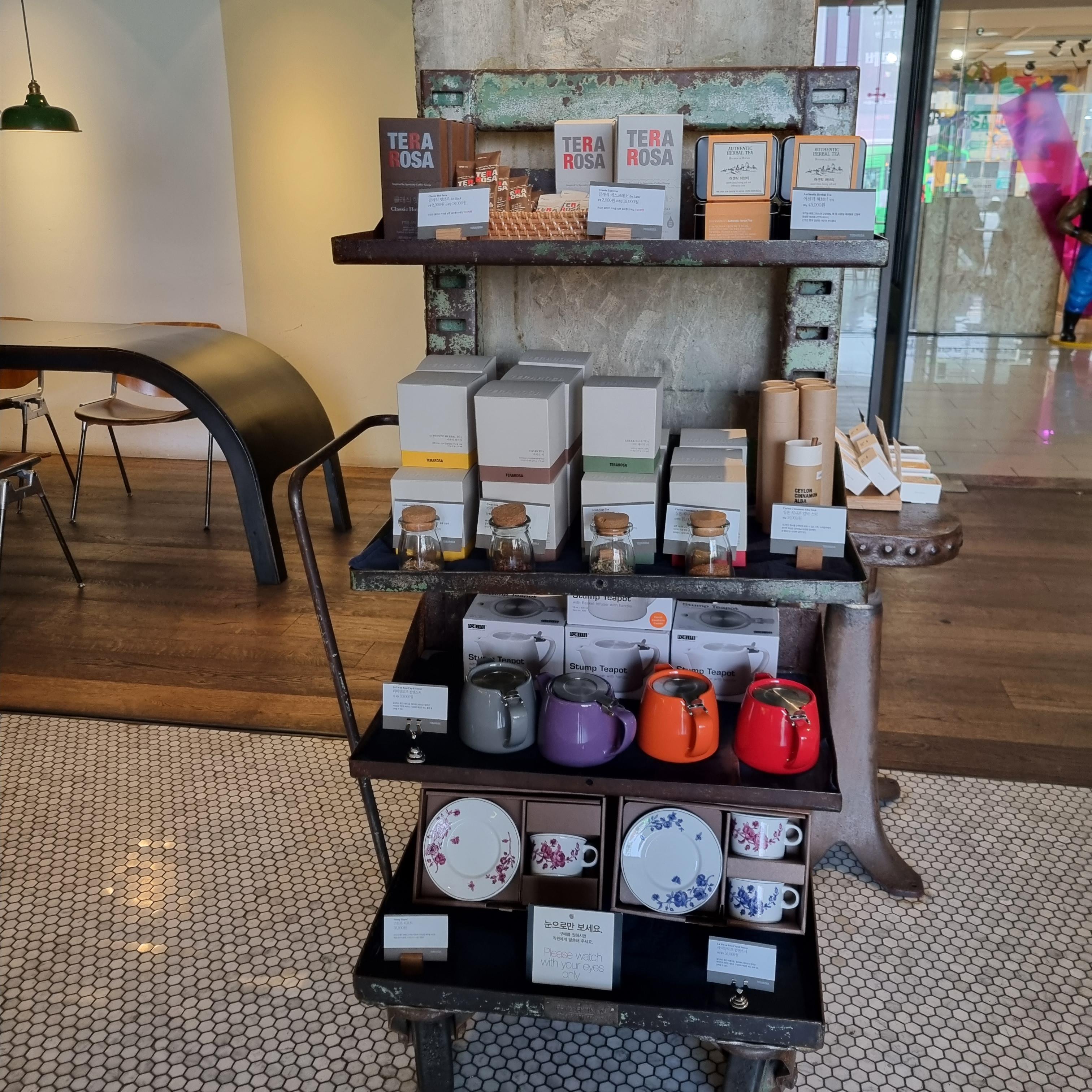들어오는 입구에 판매하고 있는 물품입니다. 인테리어랑 소품자체가 주는 분위기가 좋습니다.