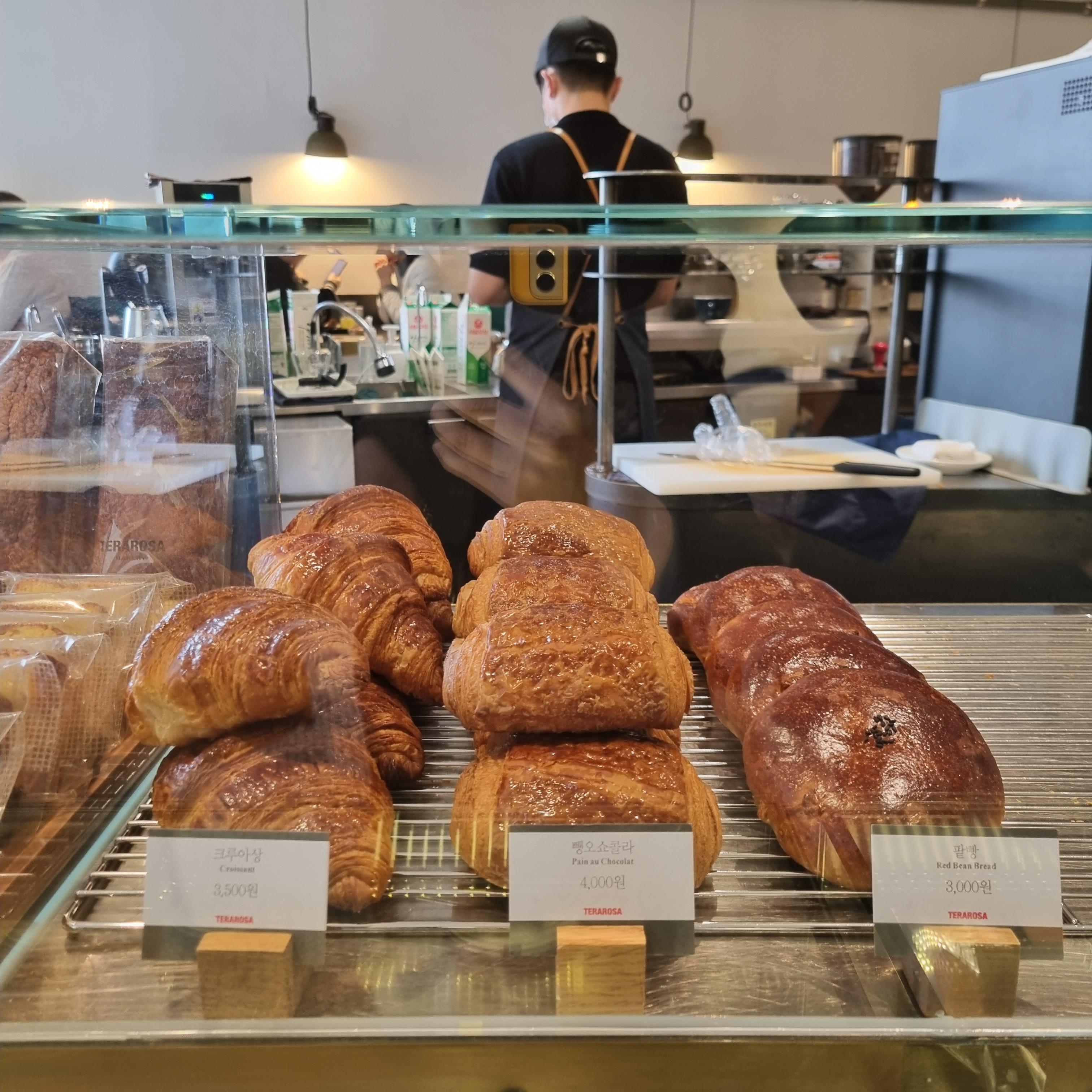 아메리칸 피칸 파이도 보이고, 레몬 치즈 케이크도 보입니다. 크루아상, 뱅오쇼콜라, 팥빵도 판매하고 있습니다. 여기 오면 디저트를 고르지 않을 수가 없네요.