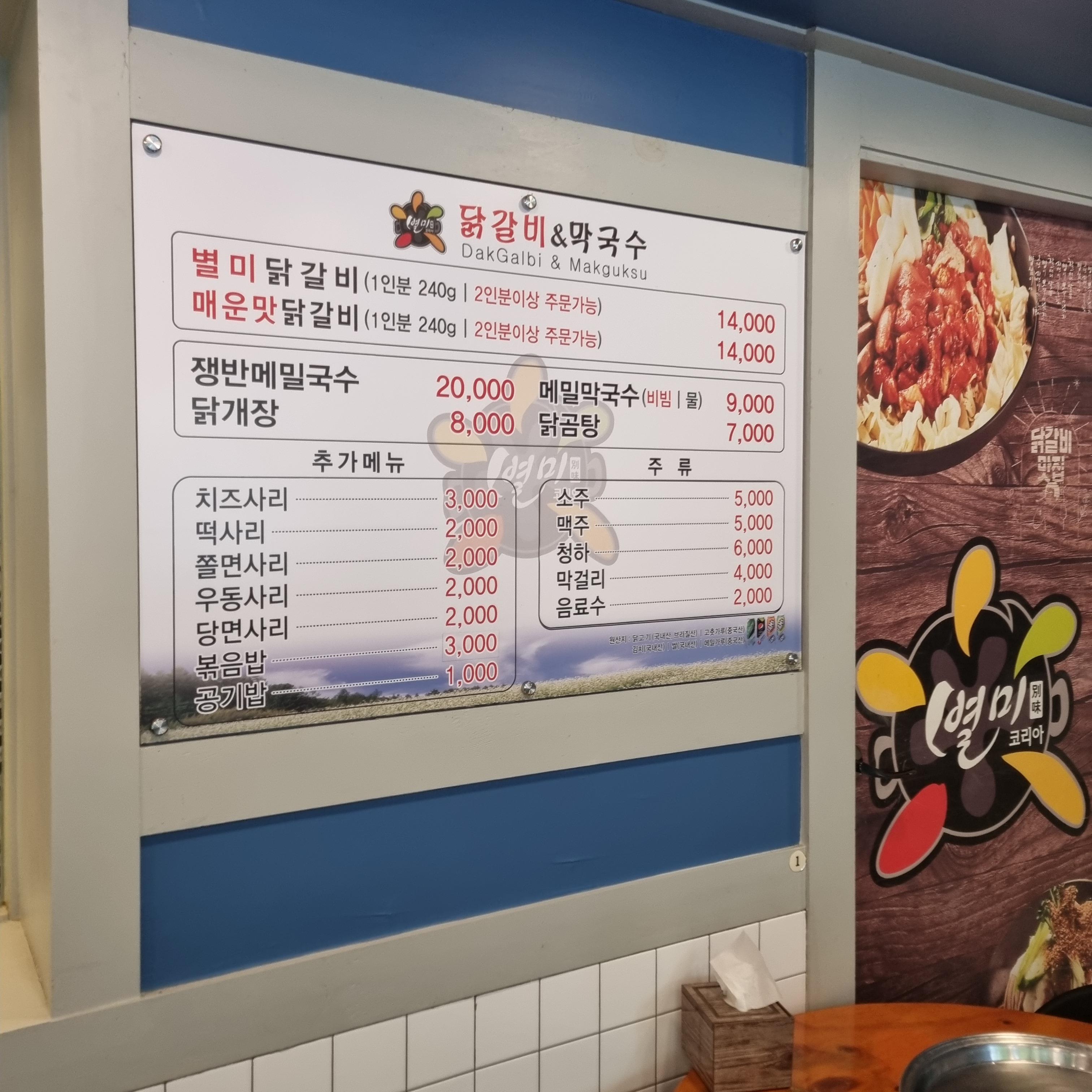 그 외에 쟁반메밀막국수 20,000원, 메밀막국수(비빔/물) 9,000원, 닭개장 8,000원, 닭곰탕 7,000원이었답니다.